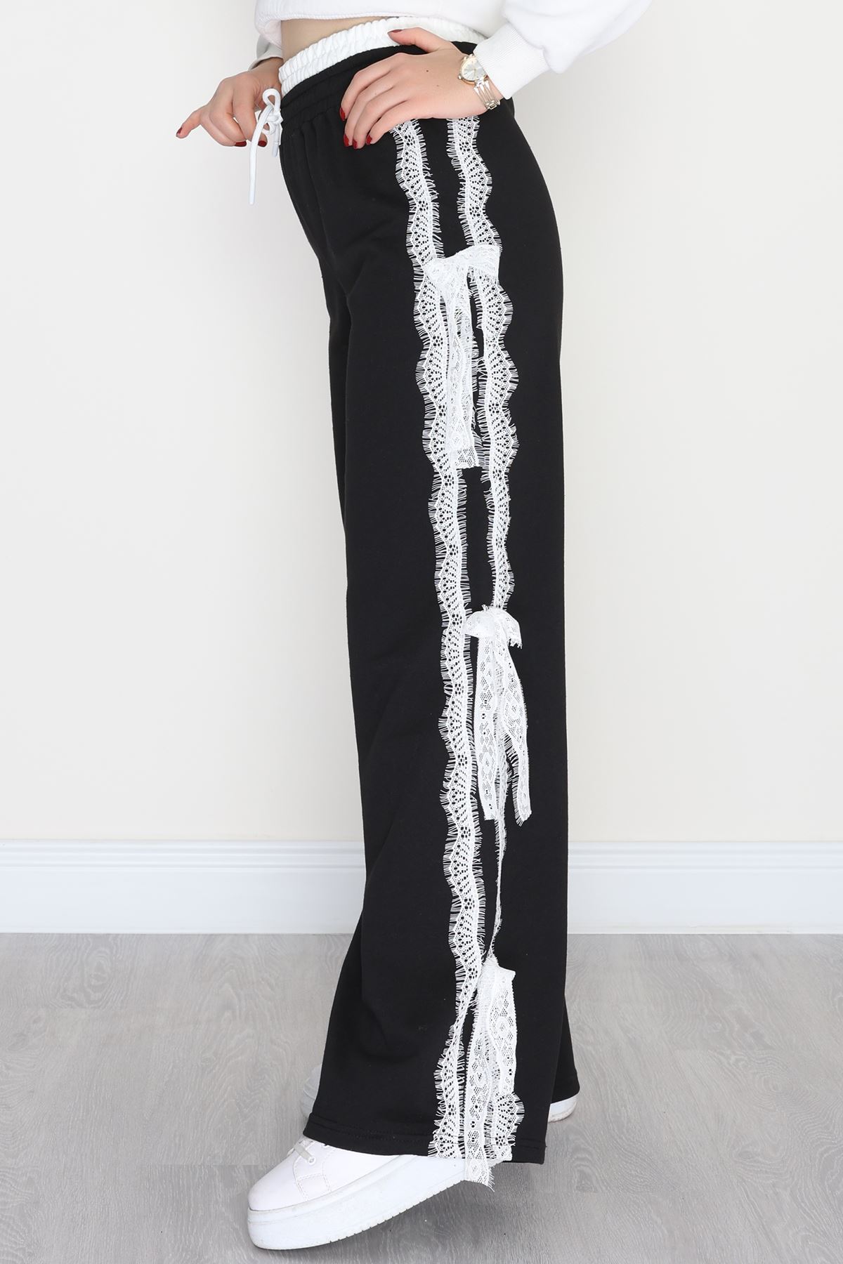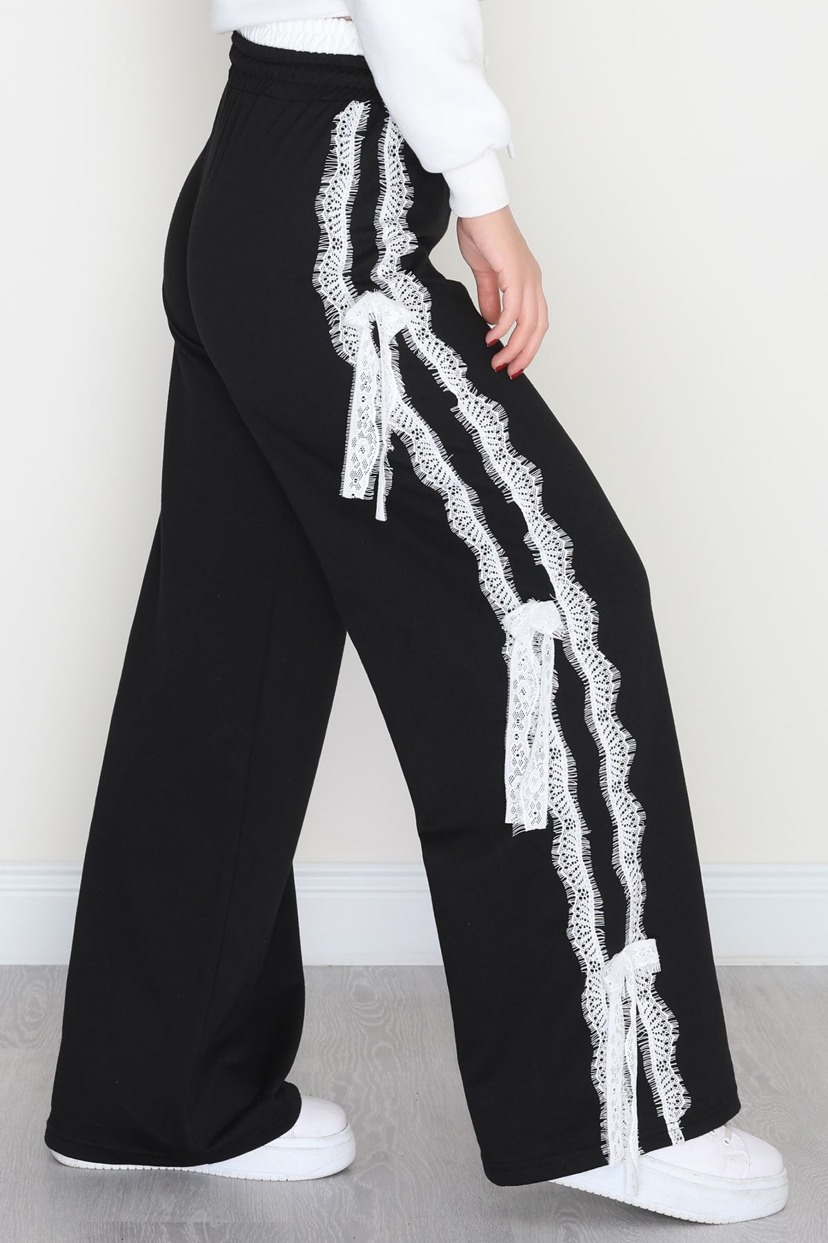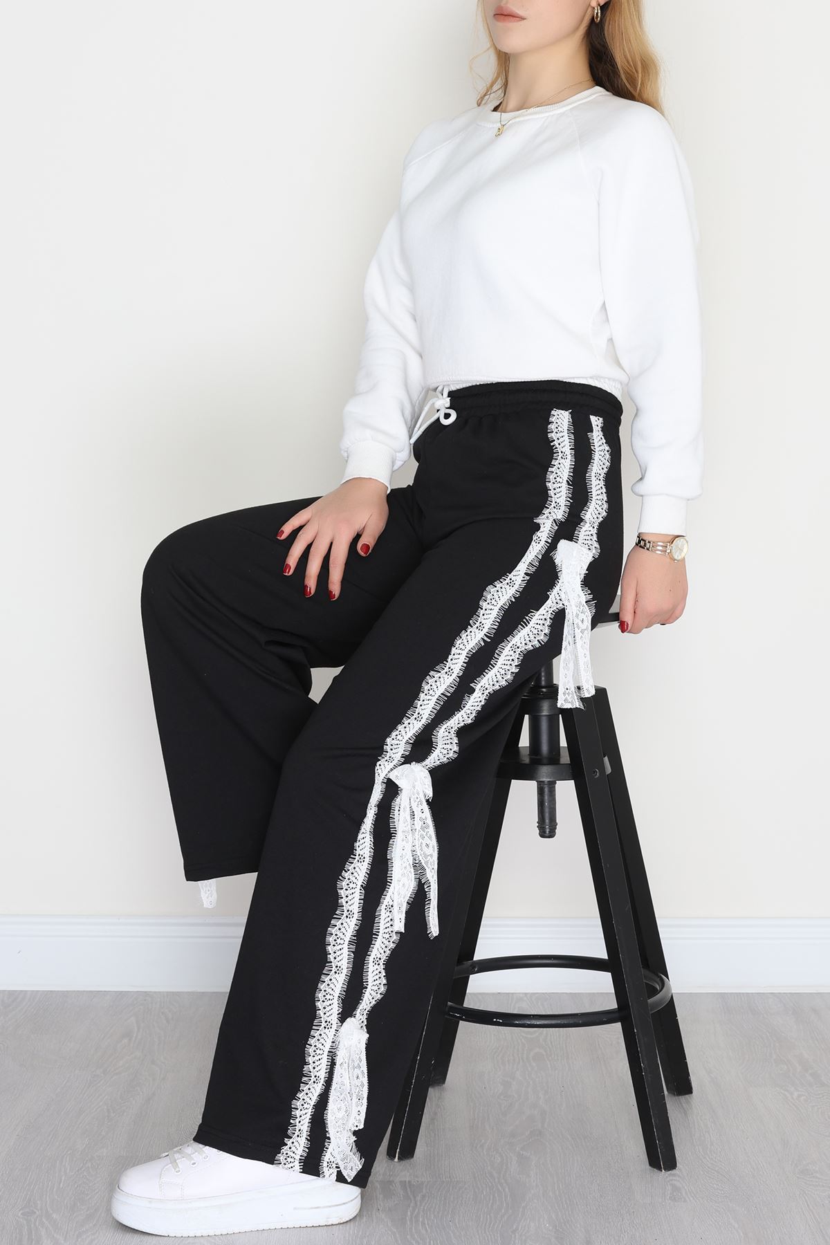 Dantel Şeritli 2 İplik Eşofman Altı Siyah - 50798.1857.
