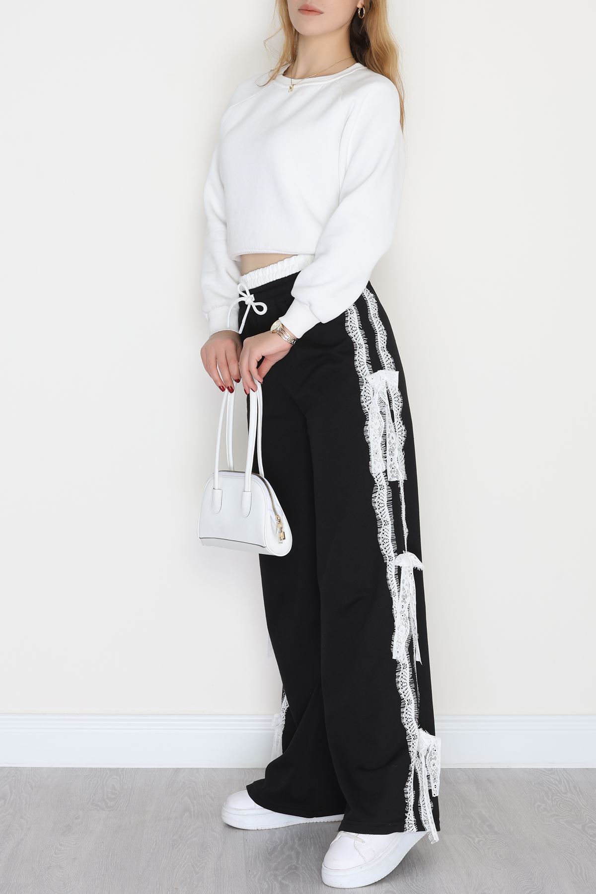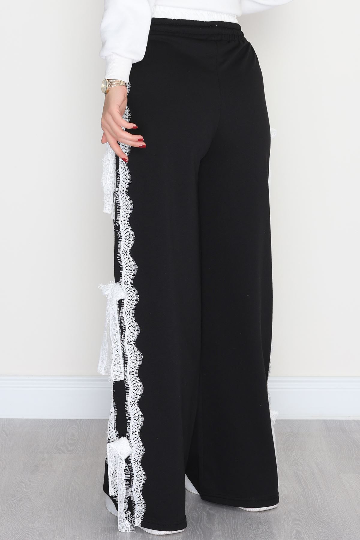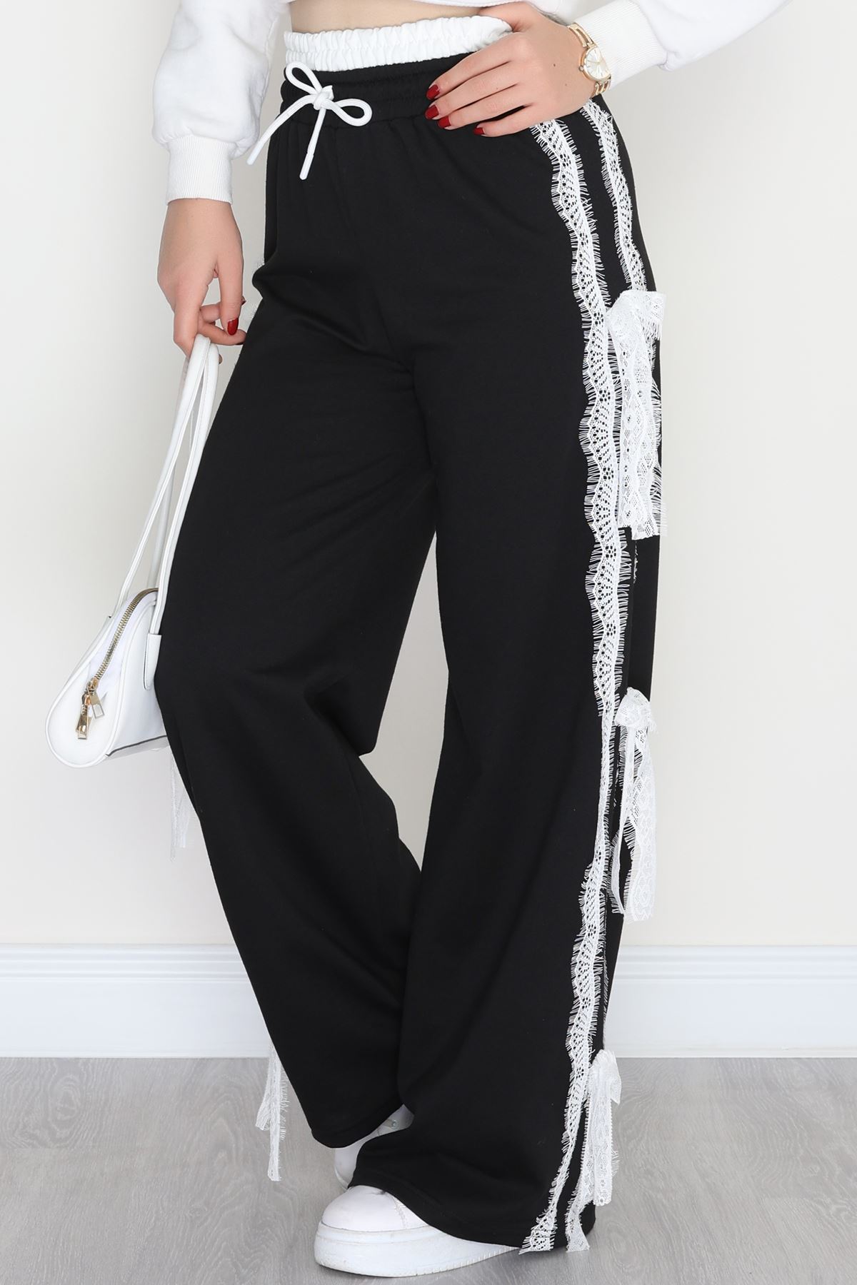 Dantel Şeritli 2 İplik Eşofman Altı Siyah - 50798.1857.
