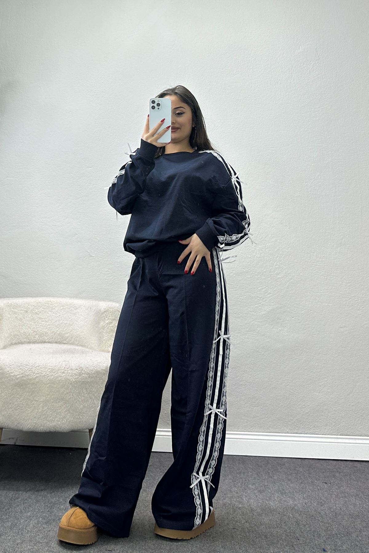 Dantel Şeritli 2 İplik Eşofman Takımı Lacivert - 50801.1857.