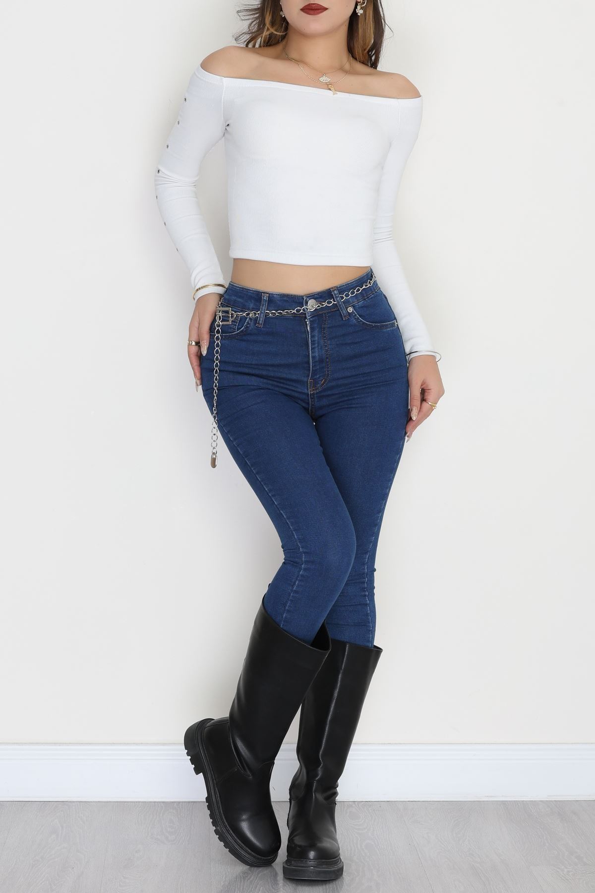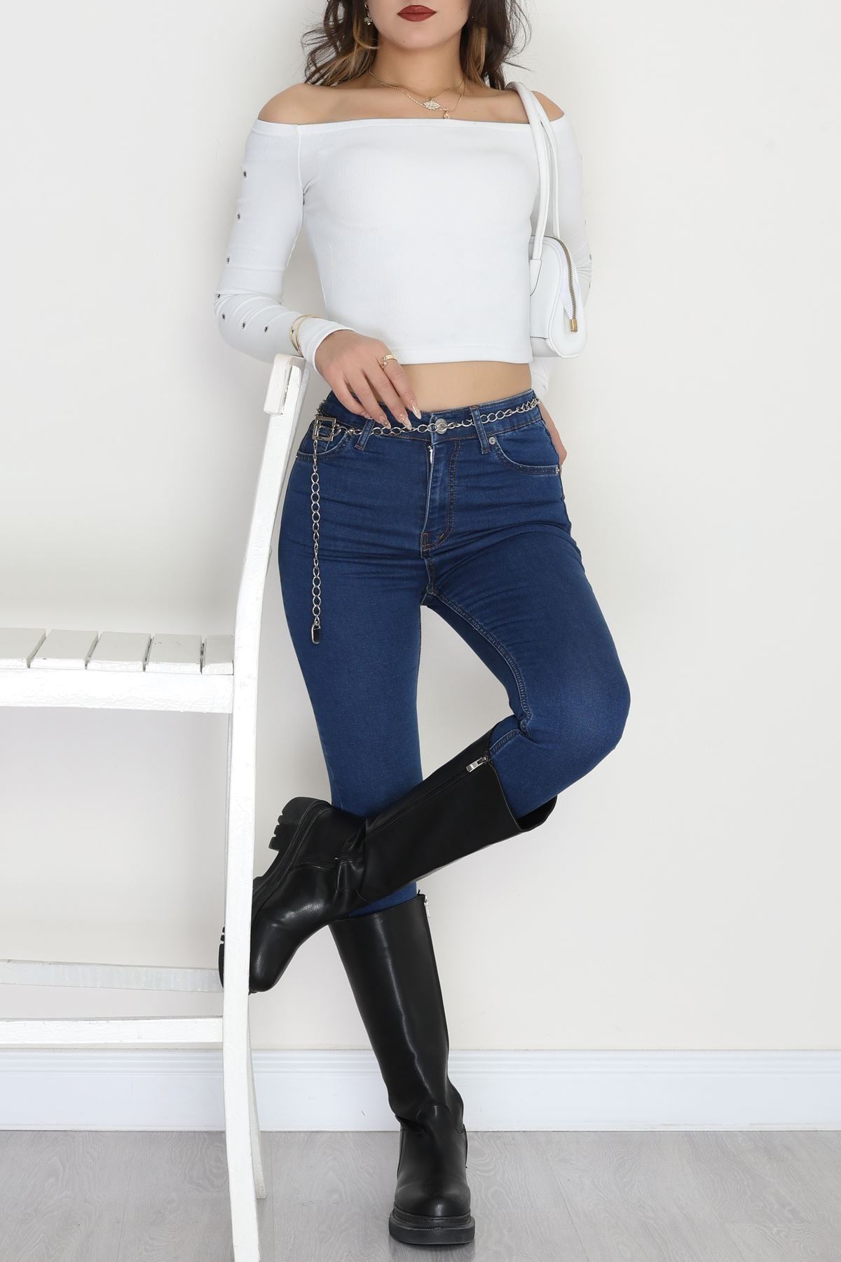 Tokalı Baggy Kot Pantolon Lacivert - 31159.2059.