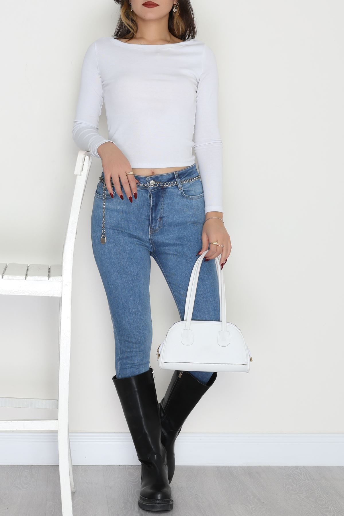 Bel Tokalı Baggy Kot Pantolon Mavi - 42472.1606.