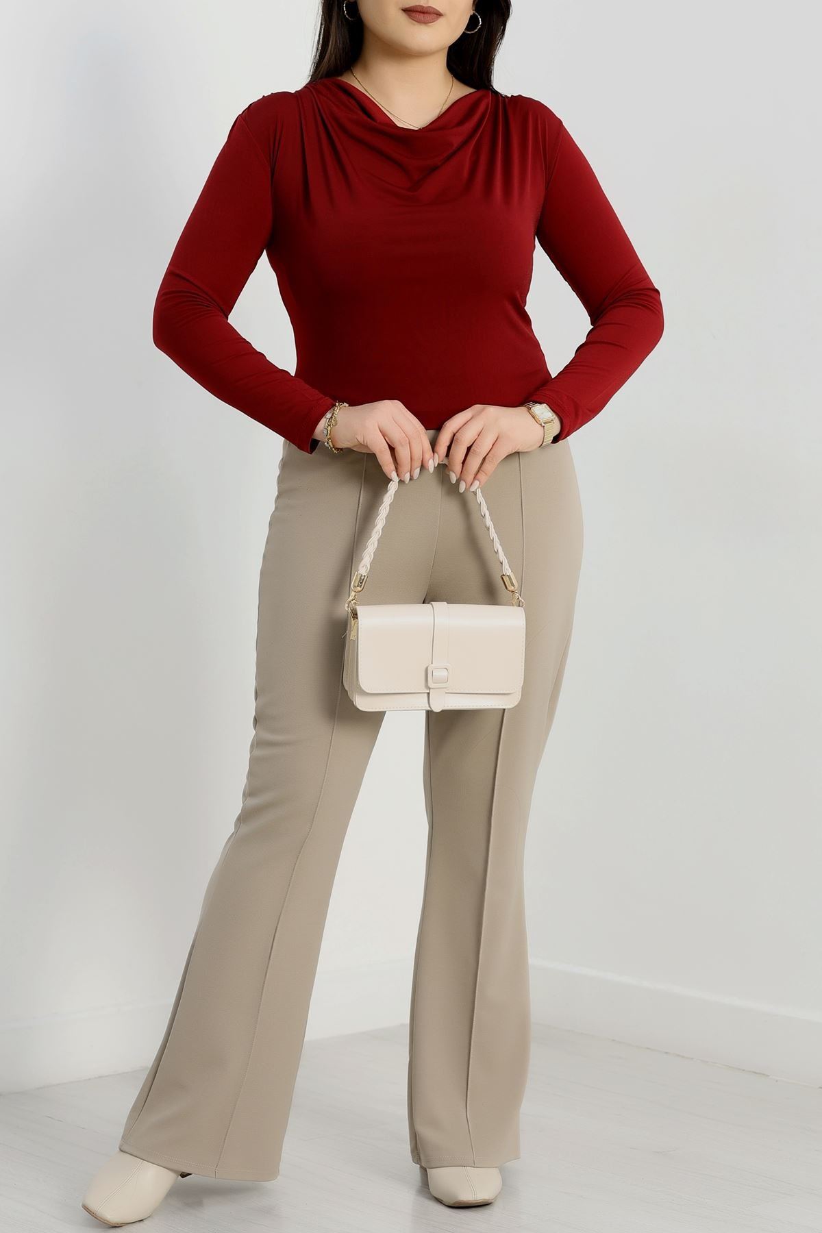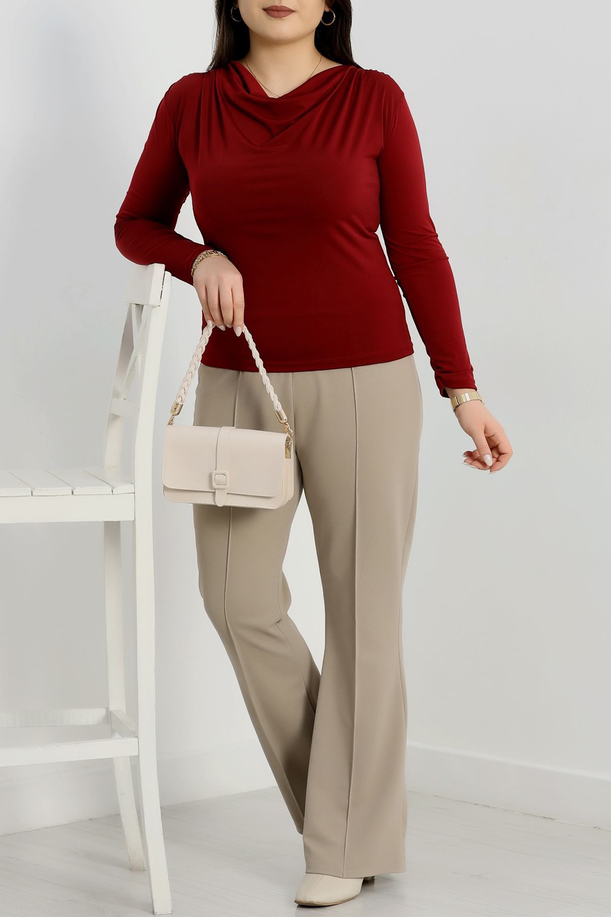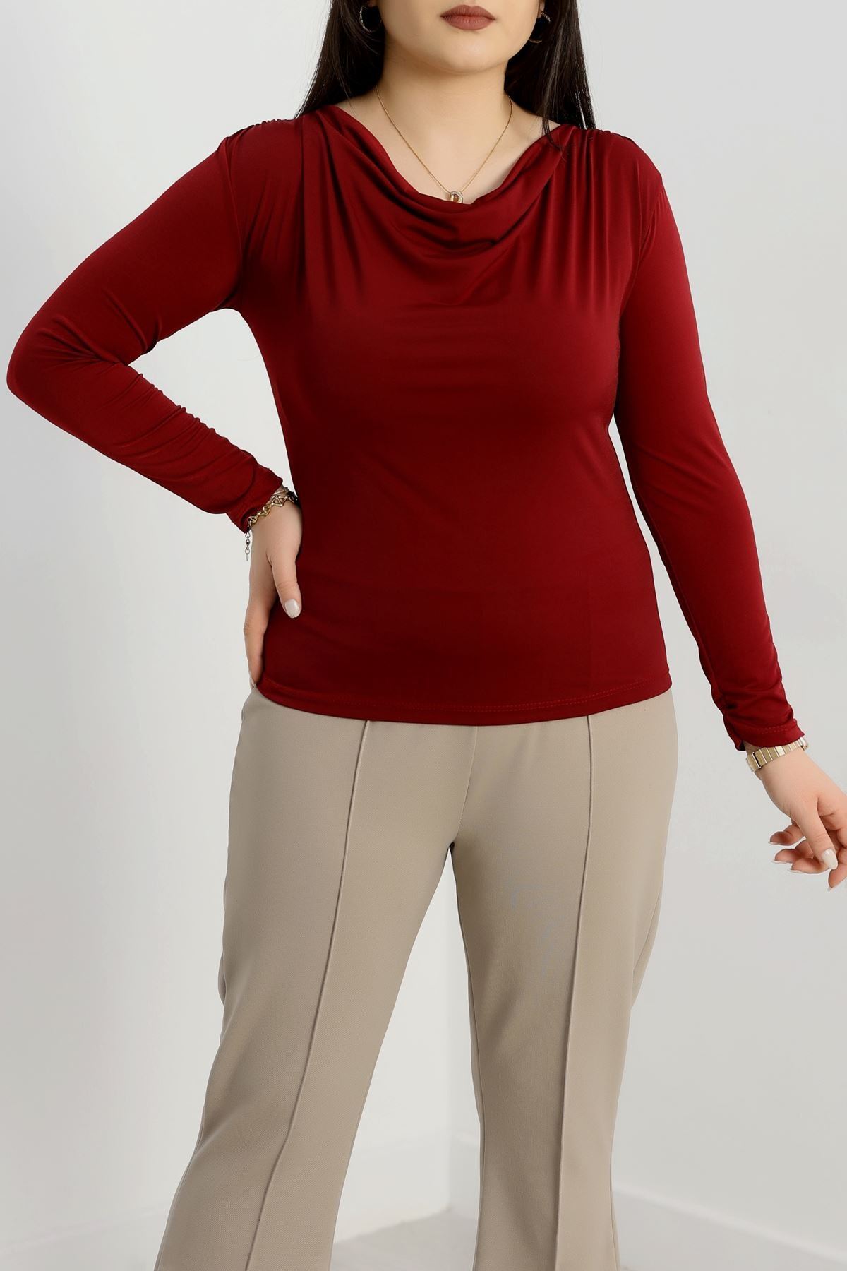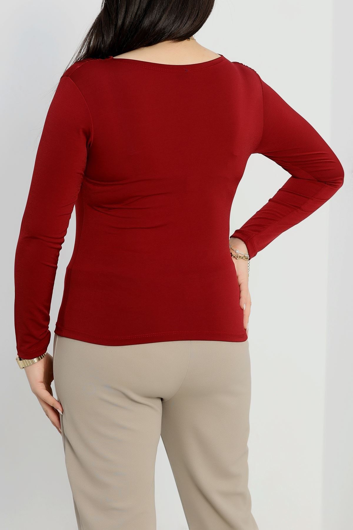 Degaje Yaka Büyük Beden Sandy Bluz Bordo - 70770.1949.