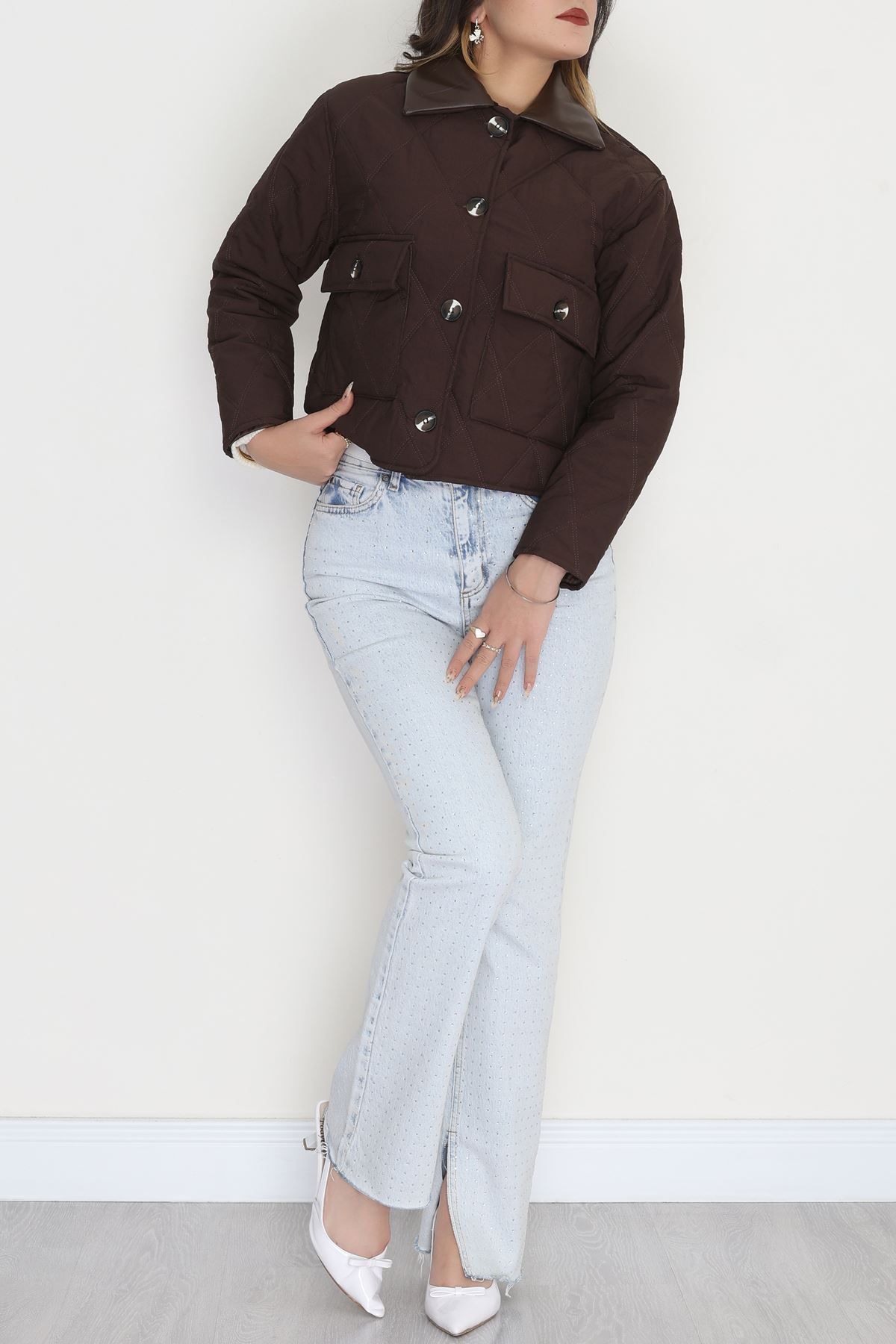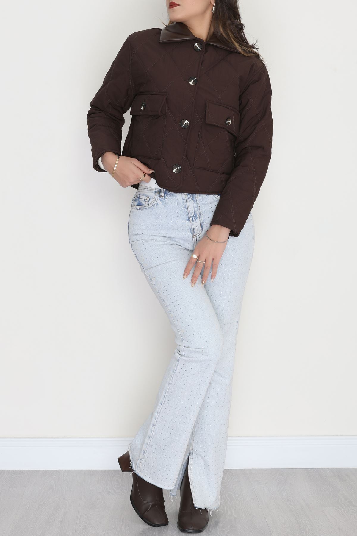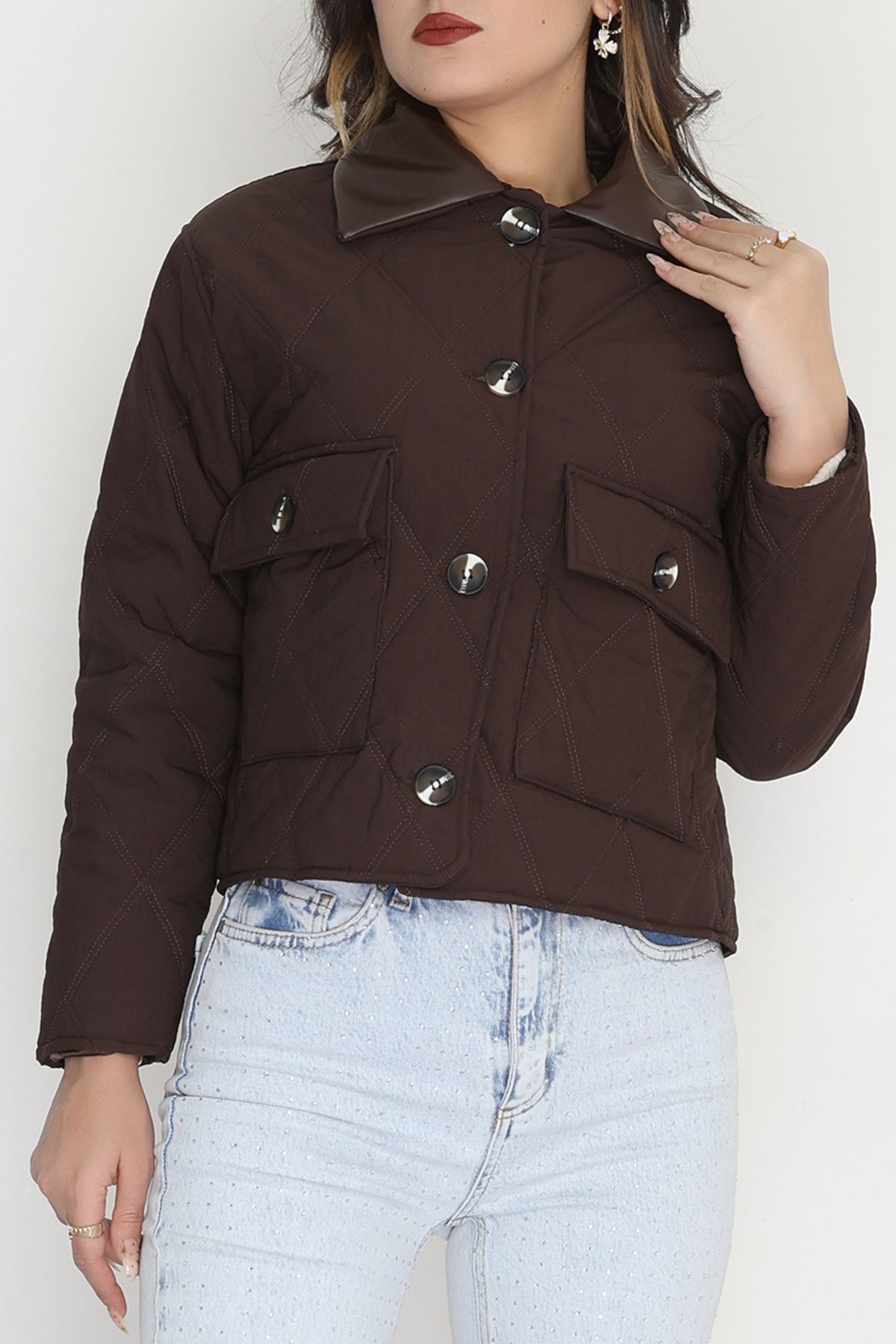 Deri Yaka Astarlı Kapitone Mont Acıkahve - 31632.439.