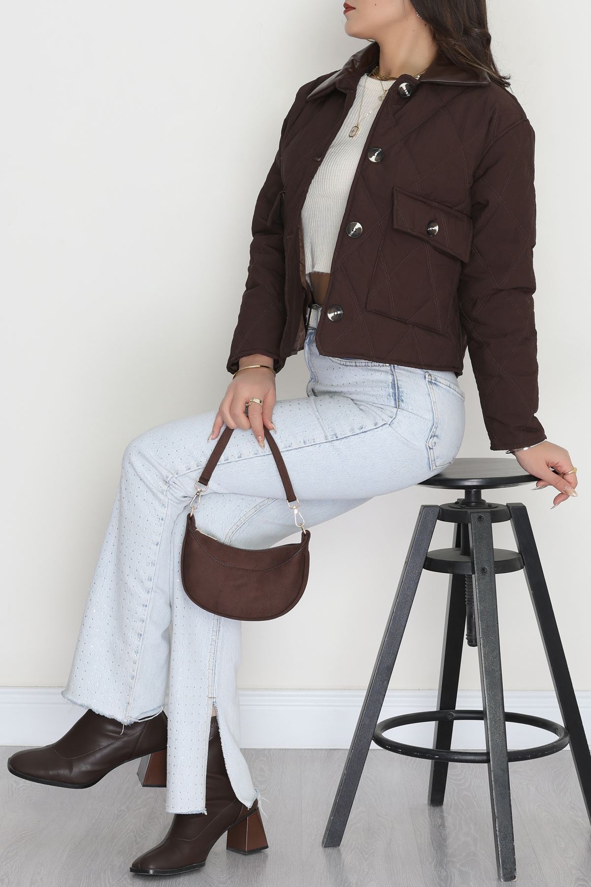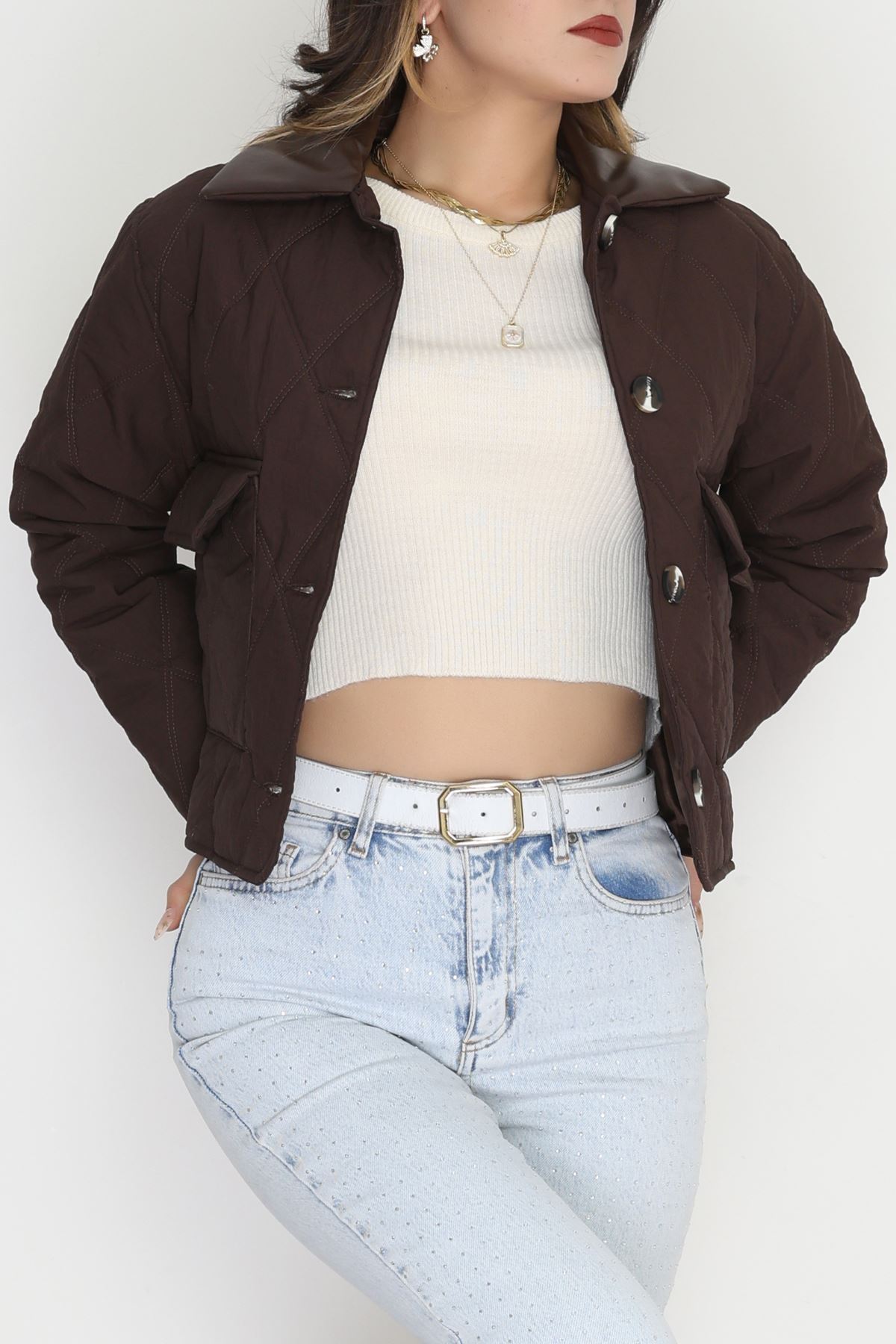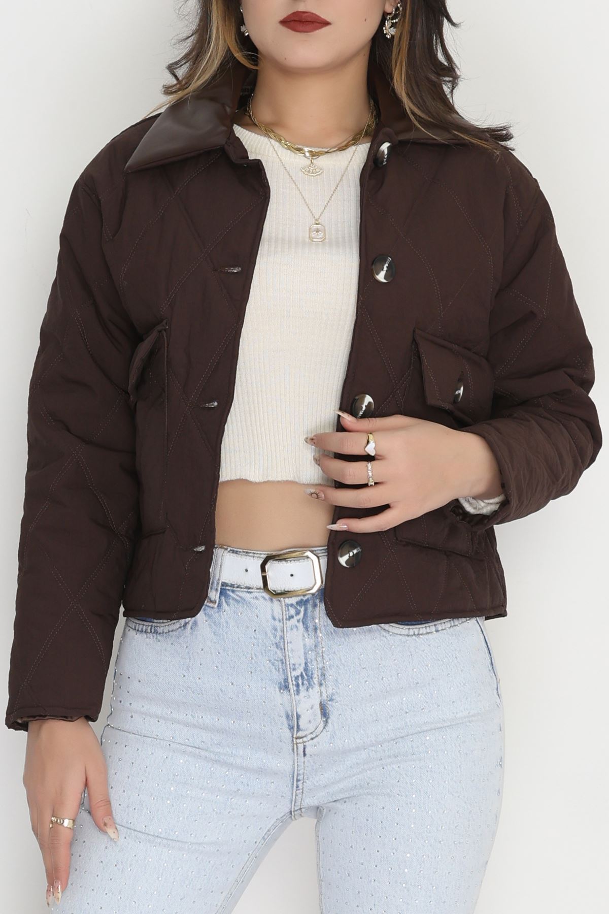 Deri Yaka Astarlı Kapitone Mont Acıkahve - 31632.439.