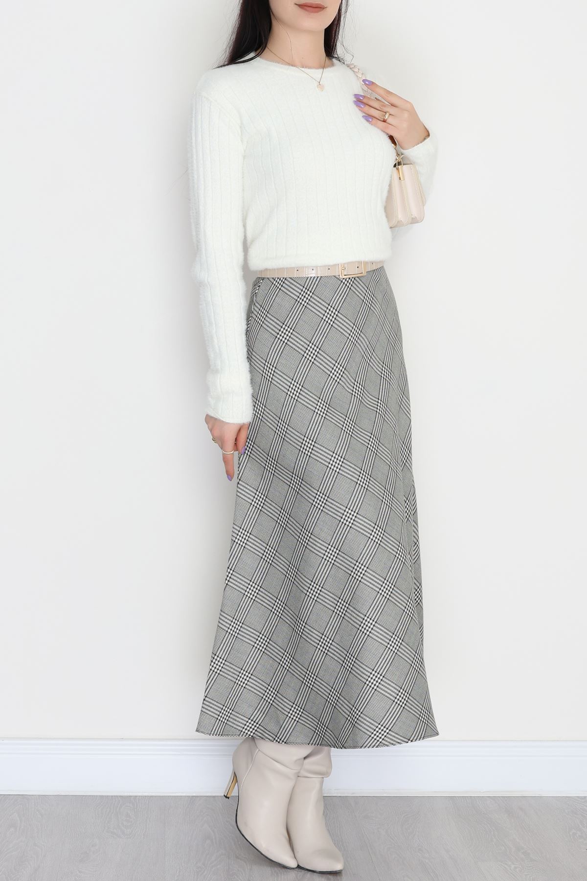 Yırtmaçlı Fitilli Kadife Etek Vizon - 51015.155.
