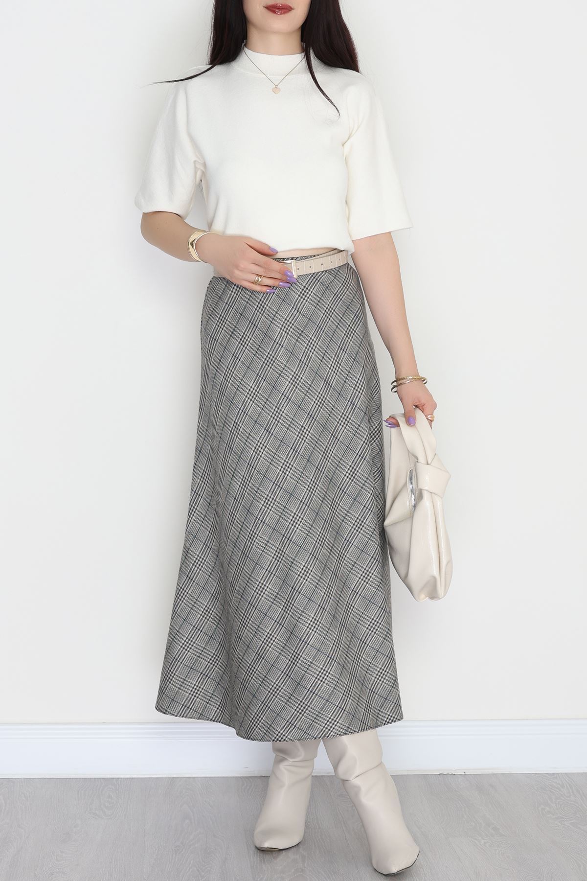 İncili Pileli Etek Kahve - 50947.2036.