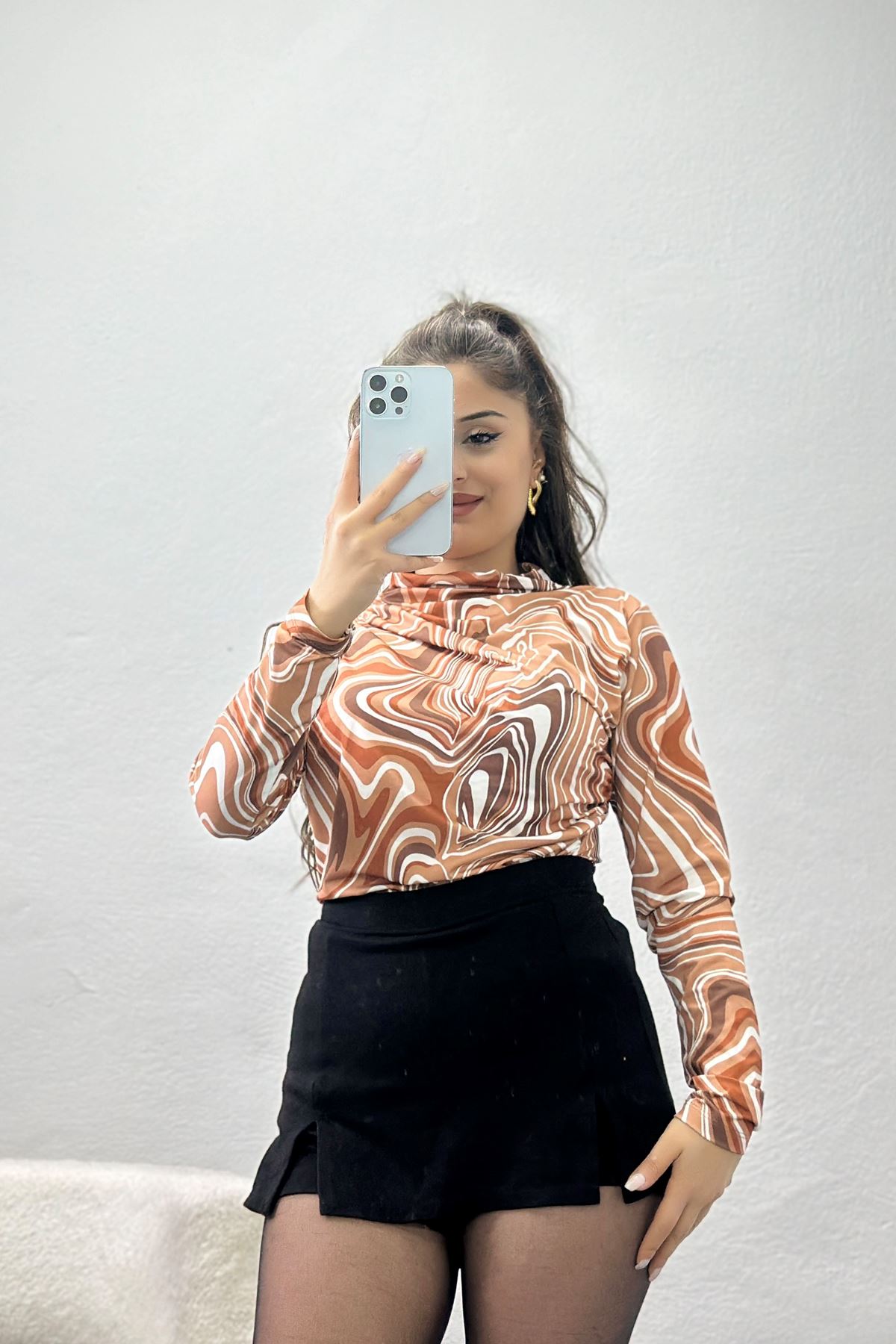 Desenli Dik Yaka Sandy Bluz Kahve - 70689.1949.
