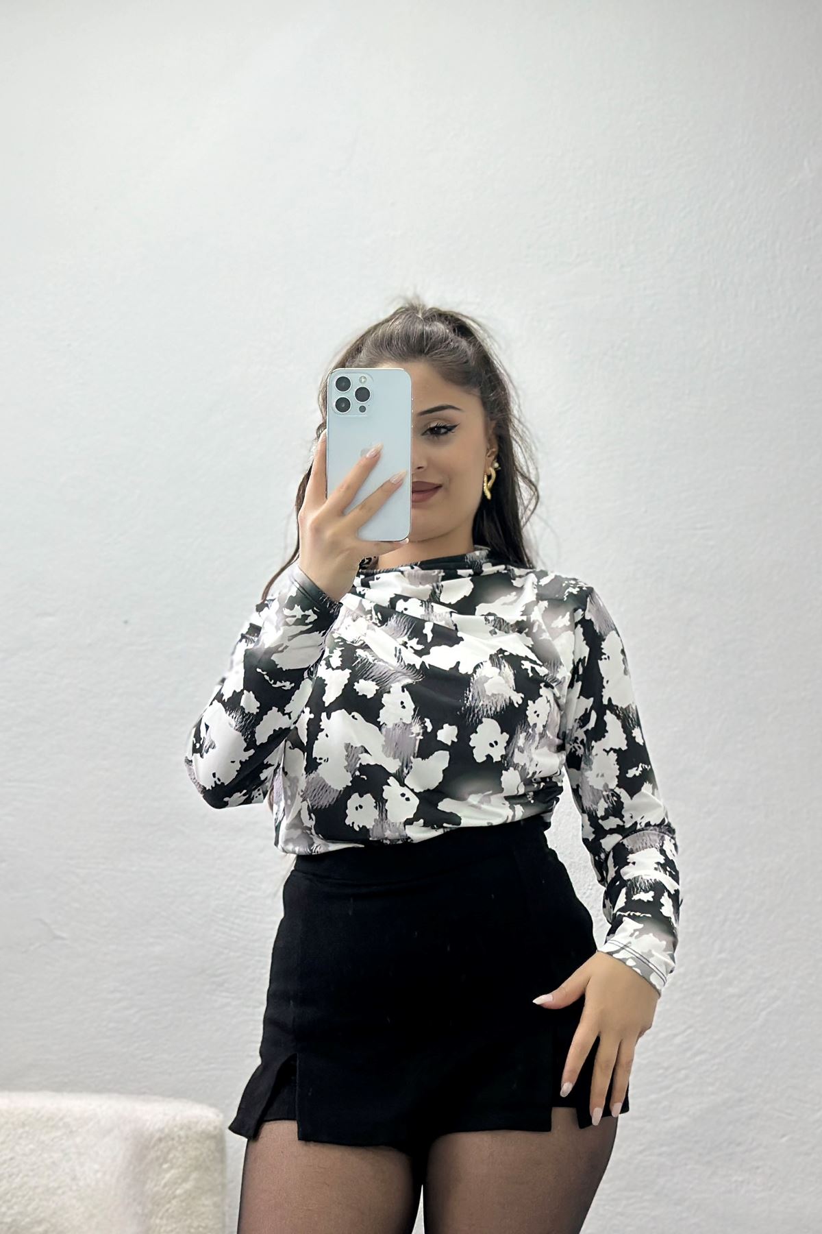 Desenli Dik Yaka Sandy Bluz Siyahgri - 70689.1949.