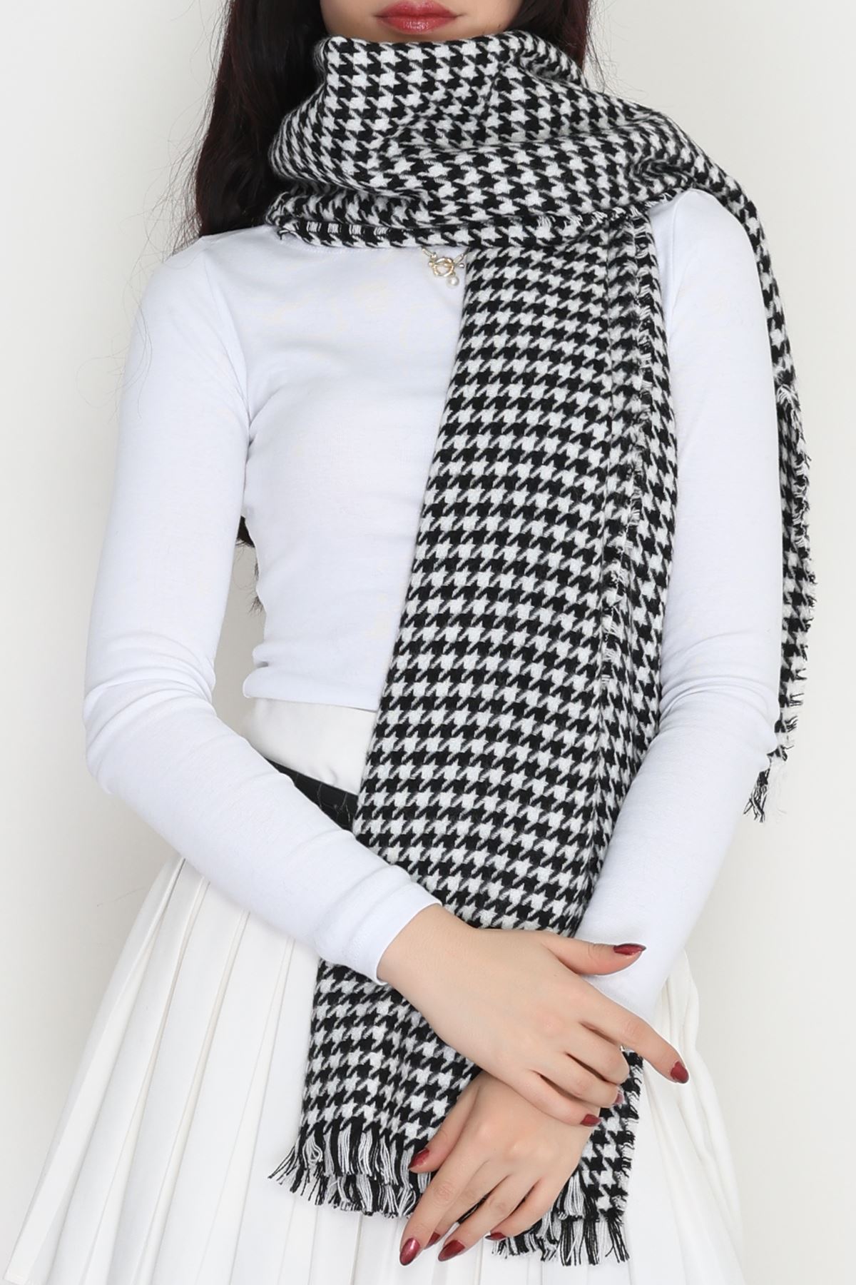 Desenli Kaşe Şal Beyazsiyah - 70811.750.