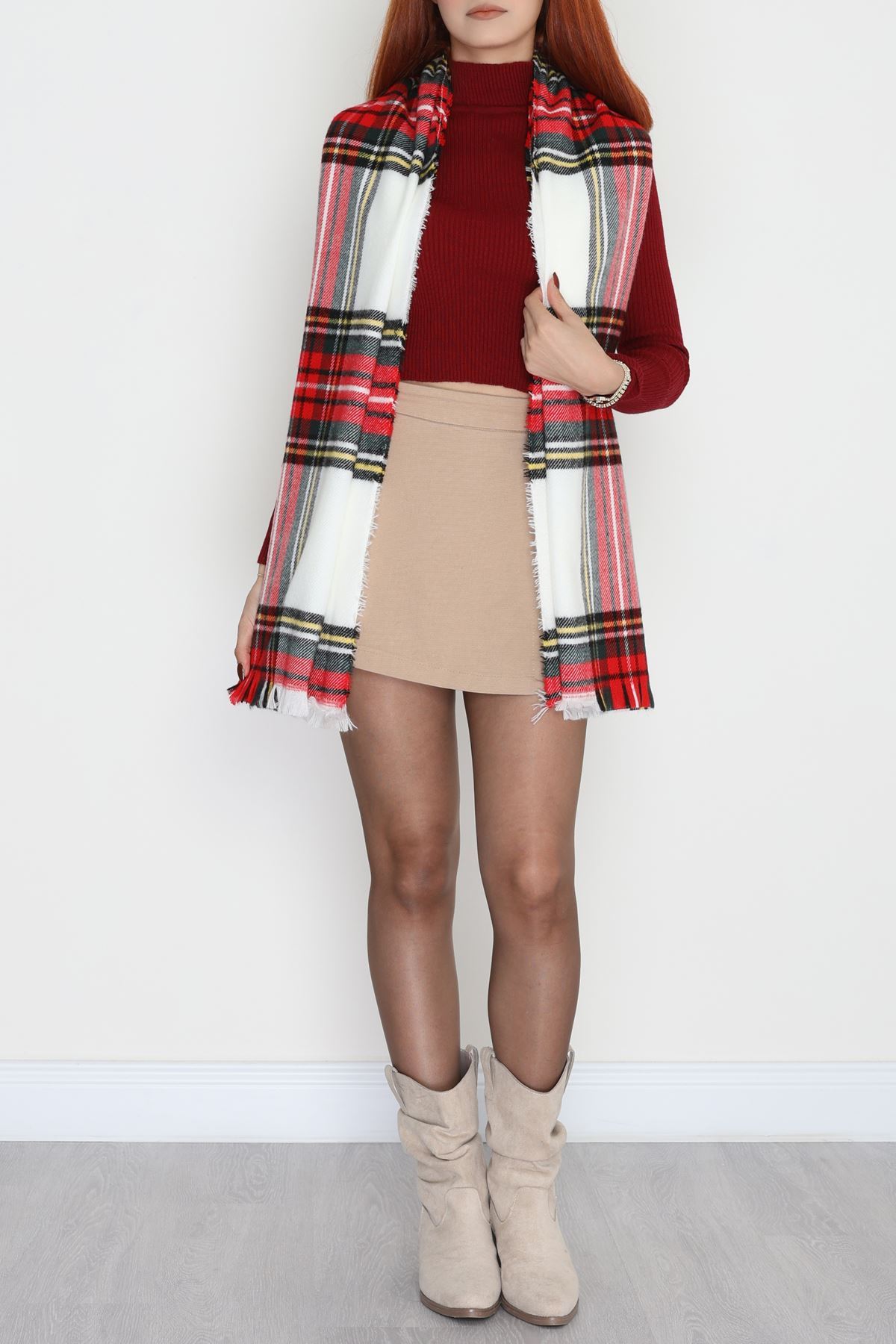 Desenli Kaşe Şal Ekrukırmızı - 70811.750.