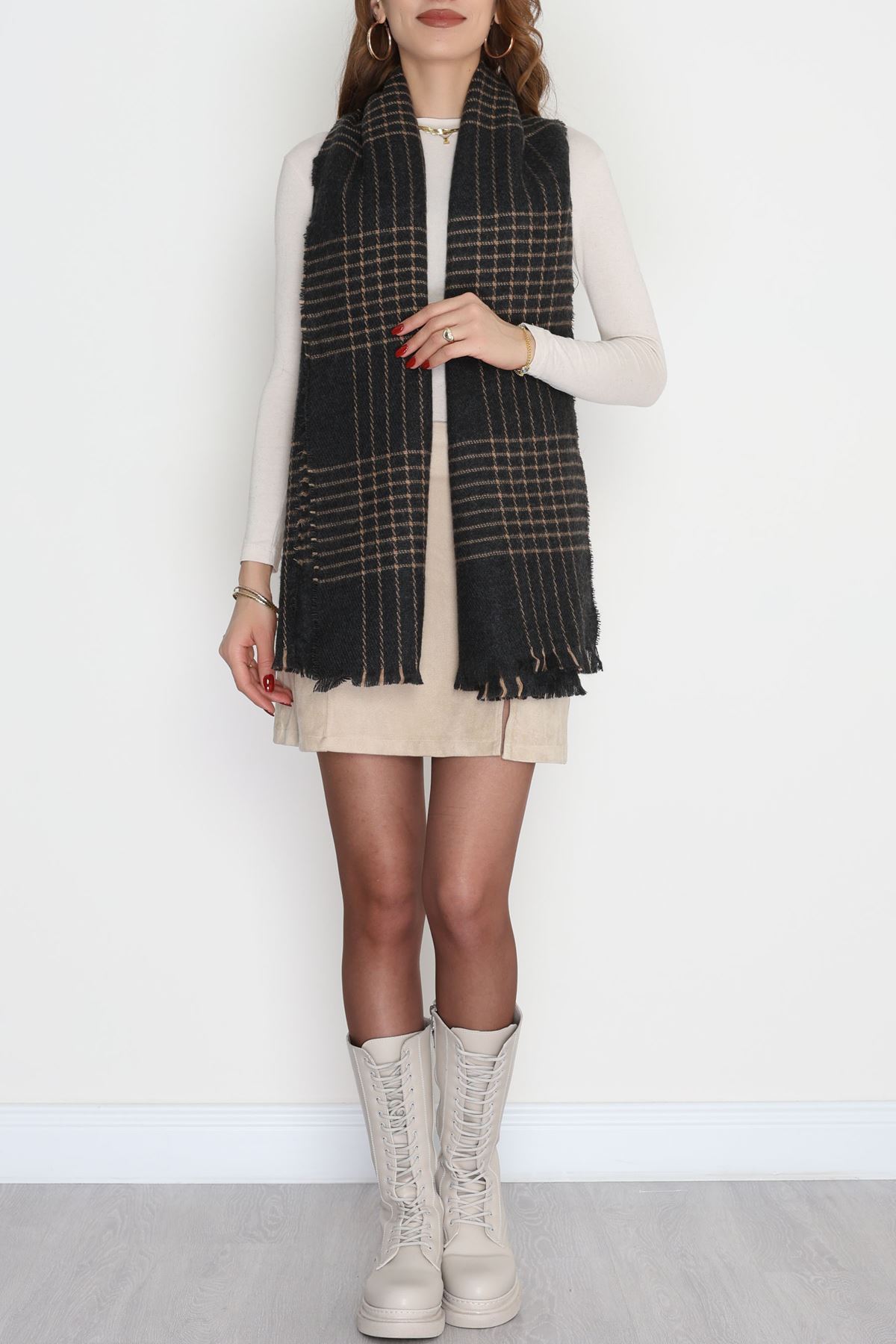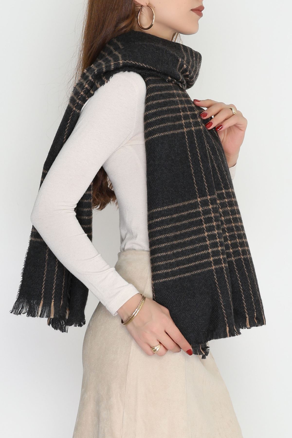 Desenli Kaşe Şal Haki - 70811.750.