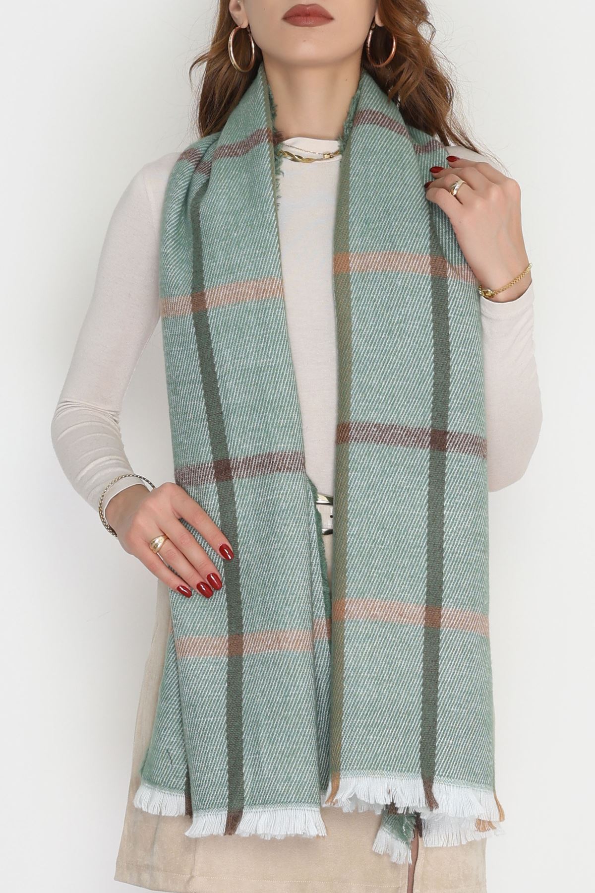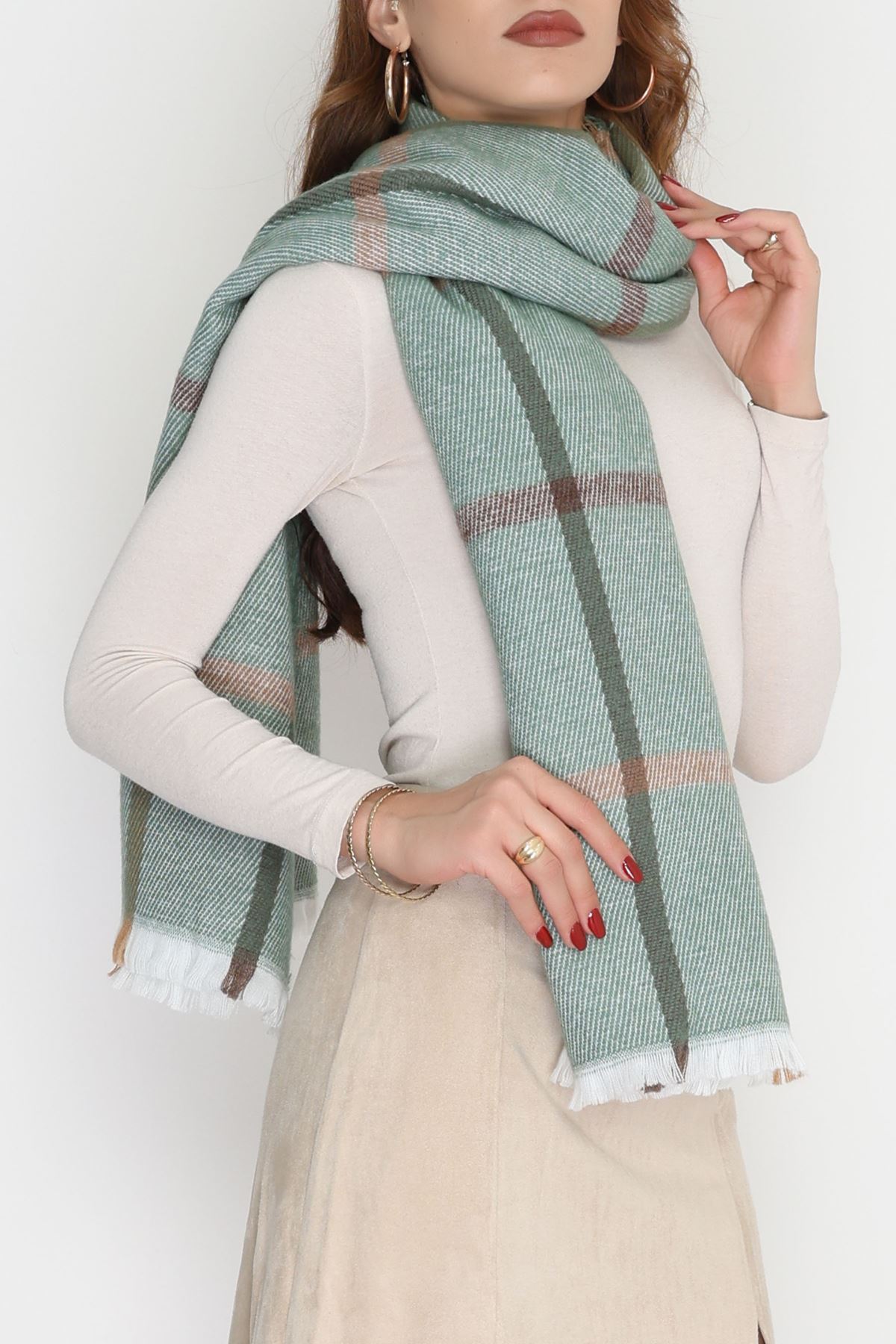 Desenli Kaşe Şal Haki - 70811.750.