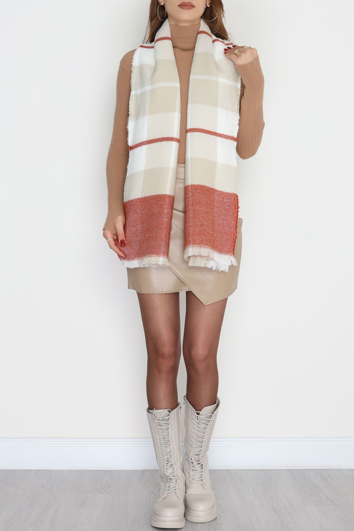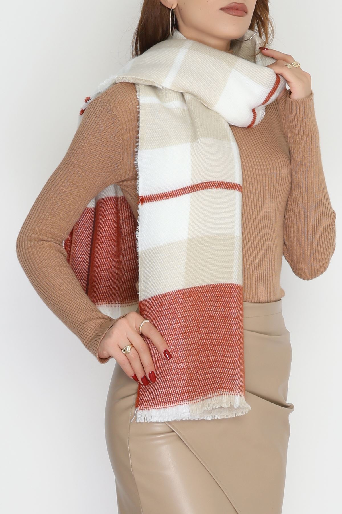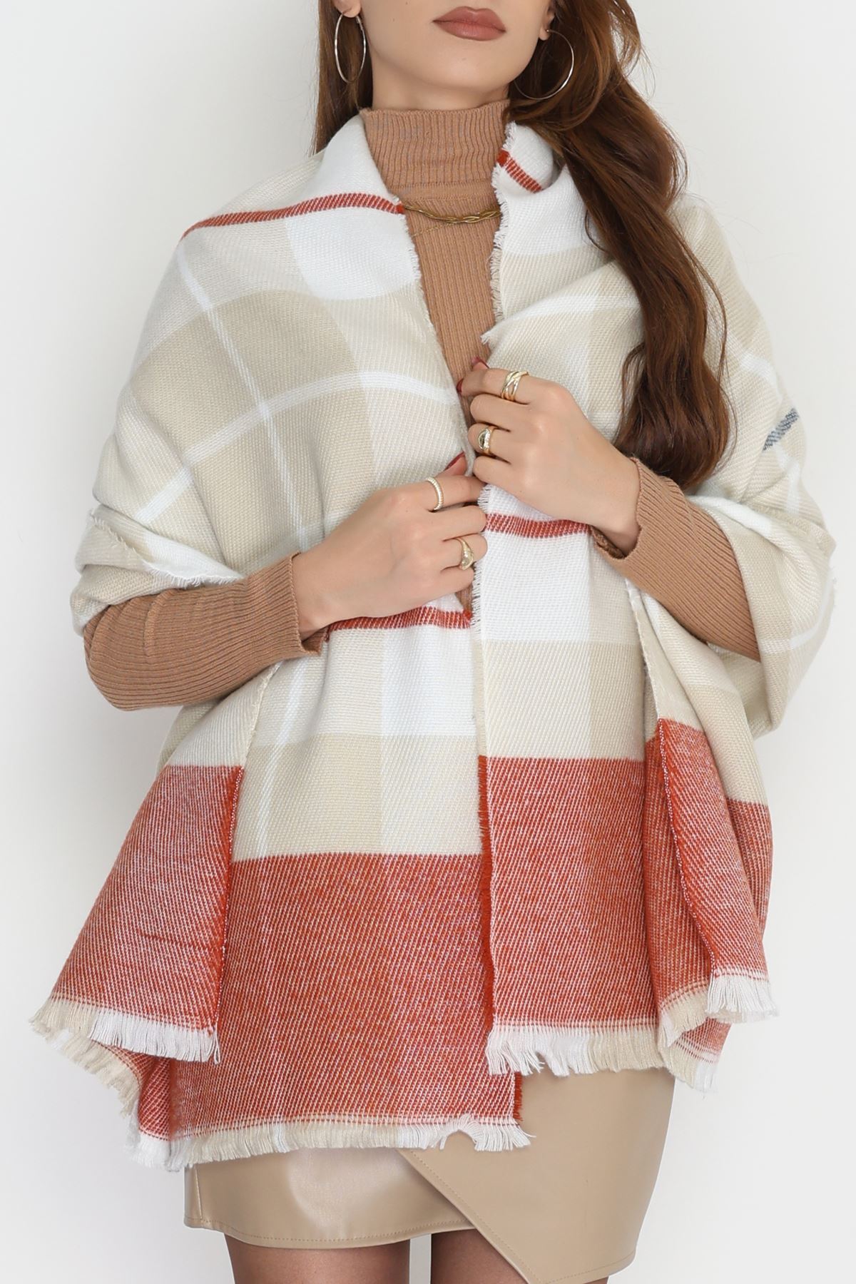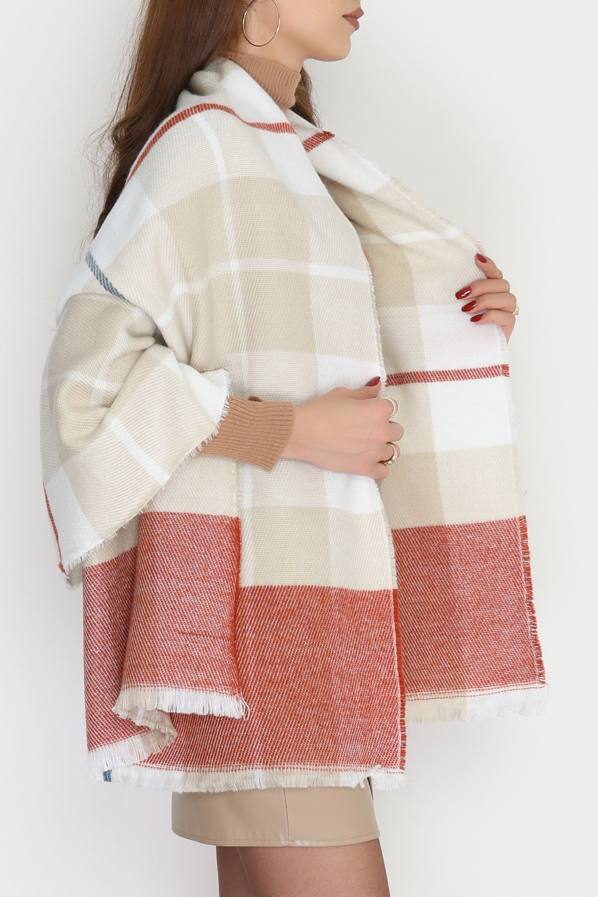Desenli Kaşe Şal Kiremitvizon - 70811.750.