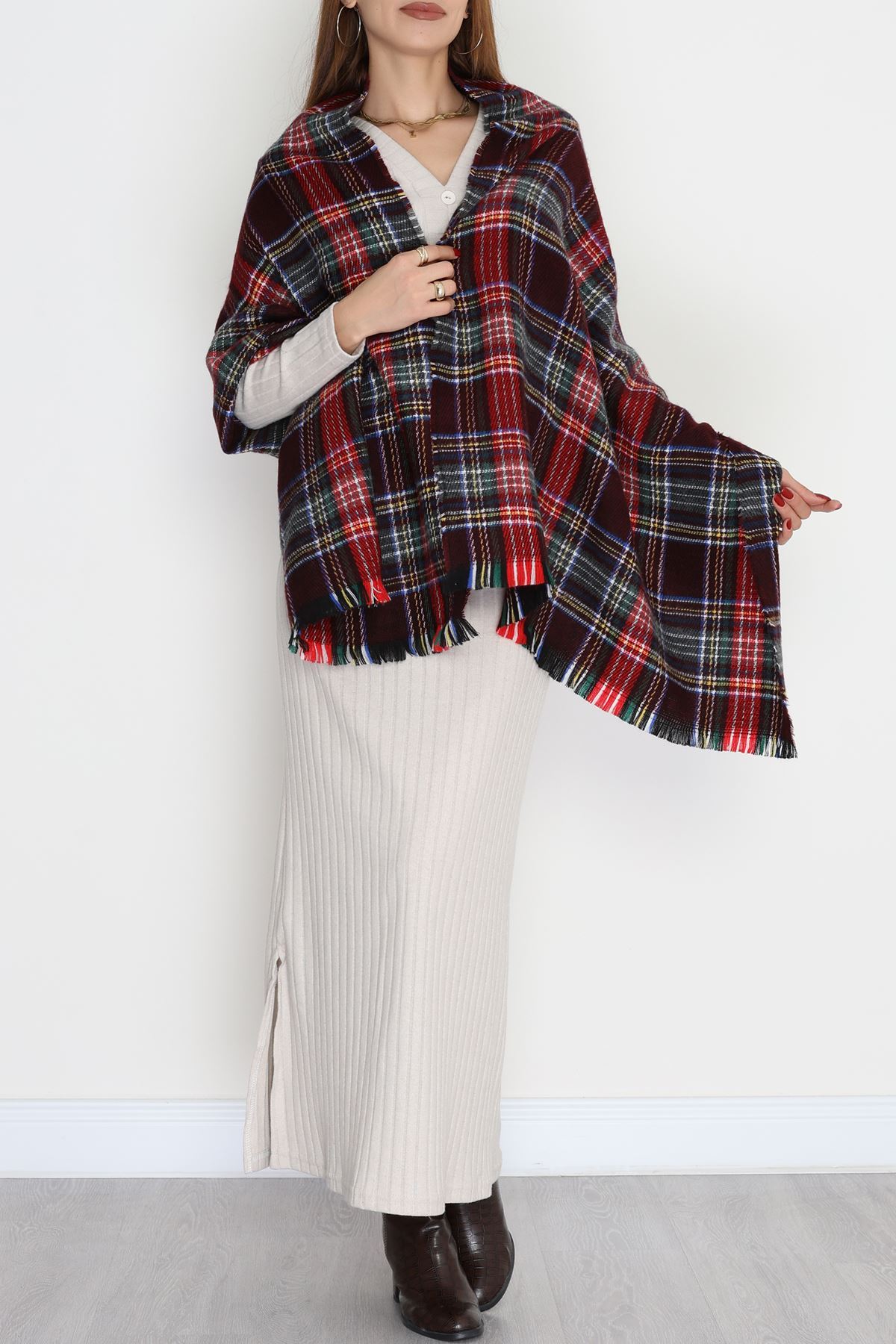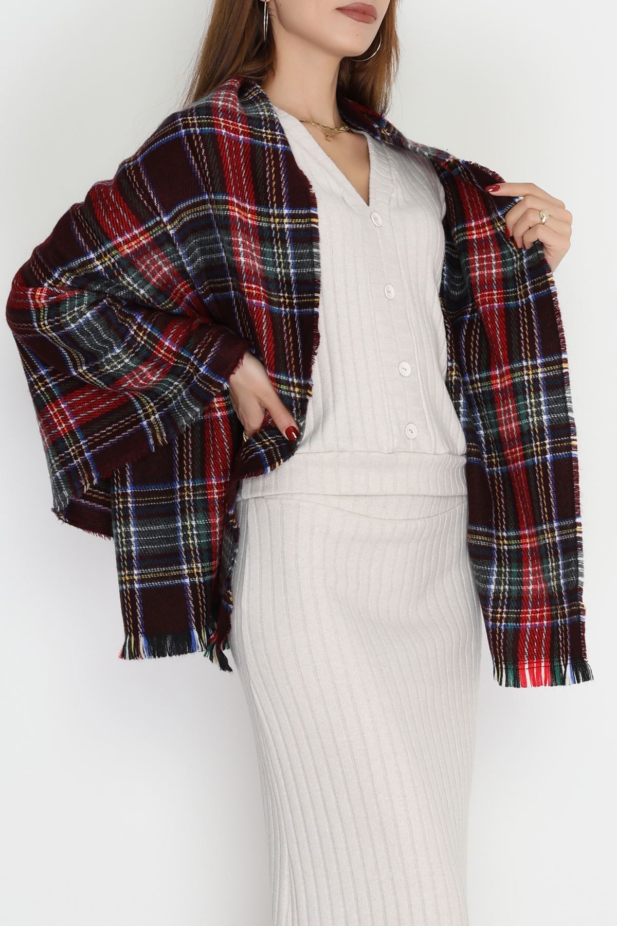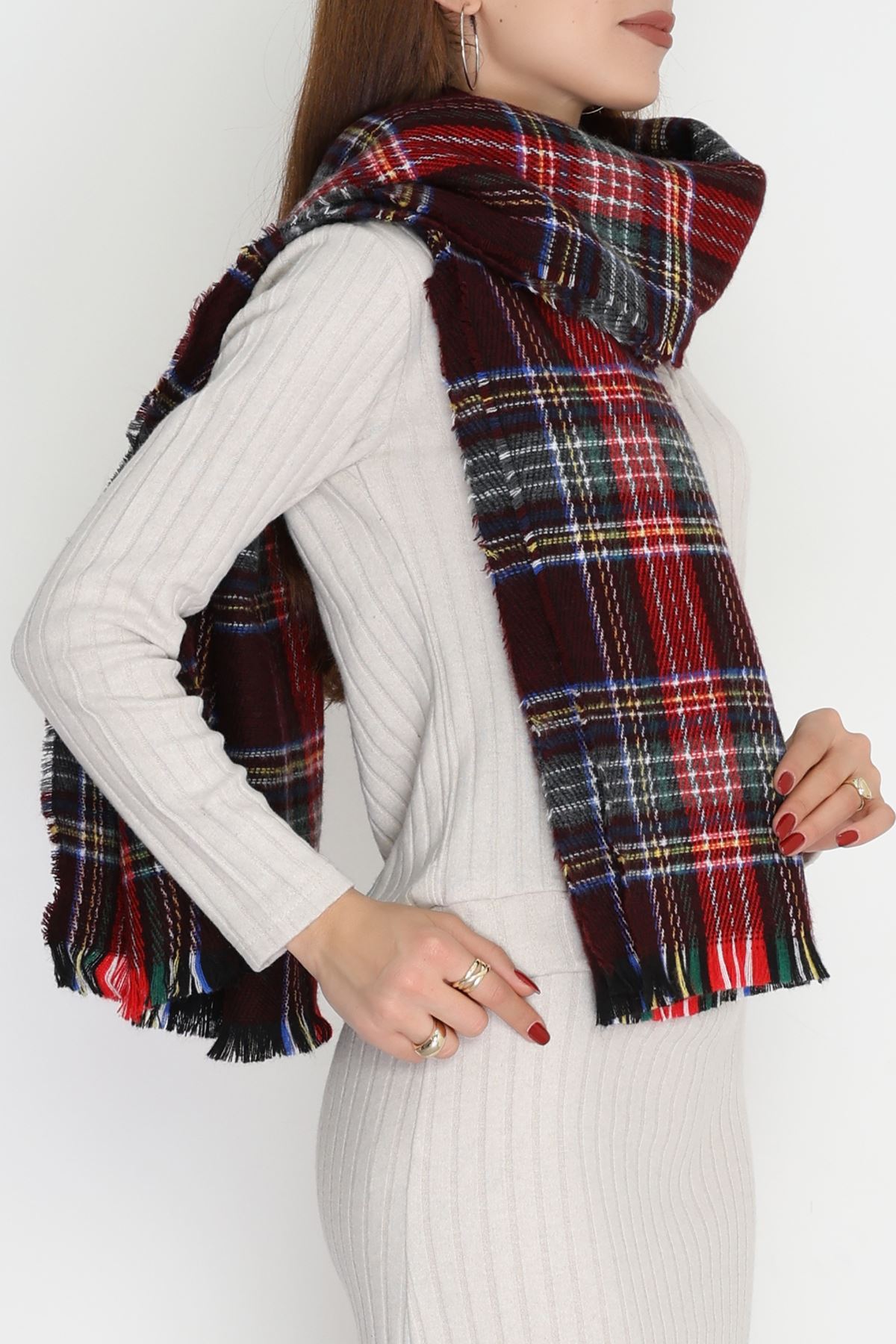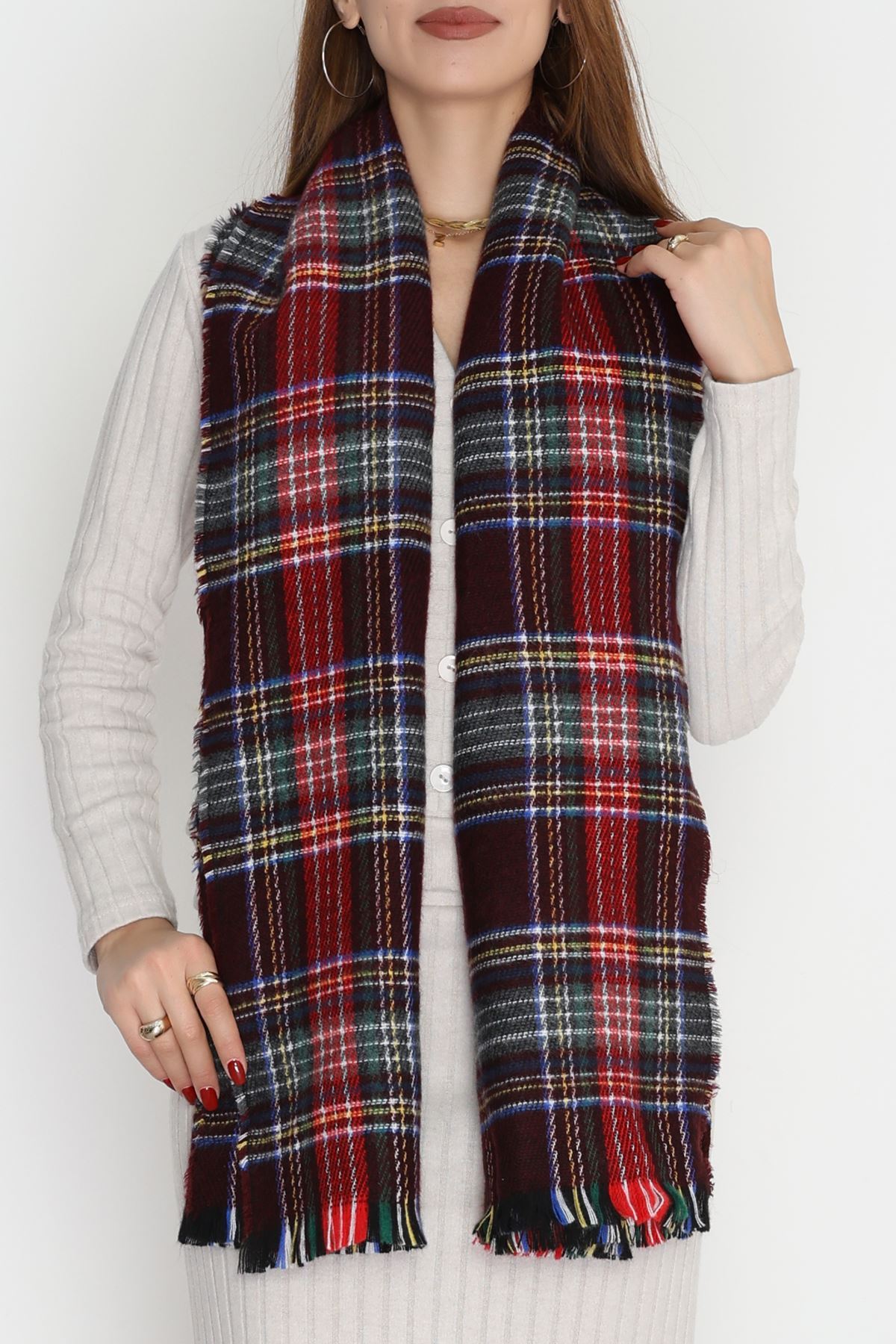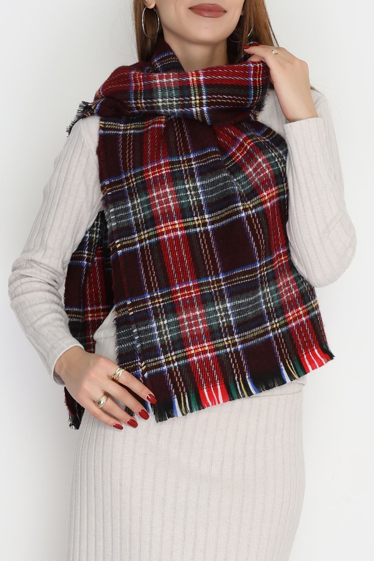 Desenli Kaşe Şal Kırmızıbordo - 70811.750.