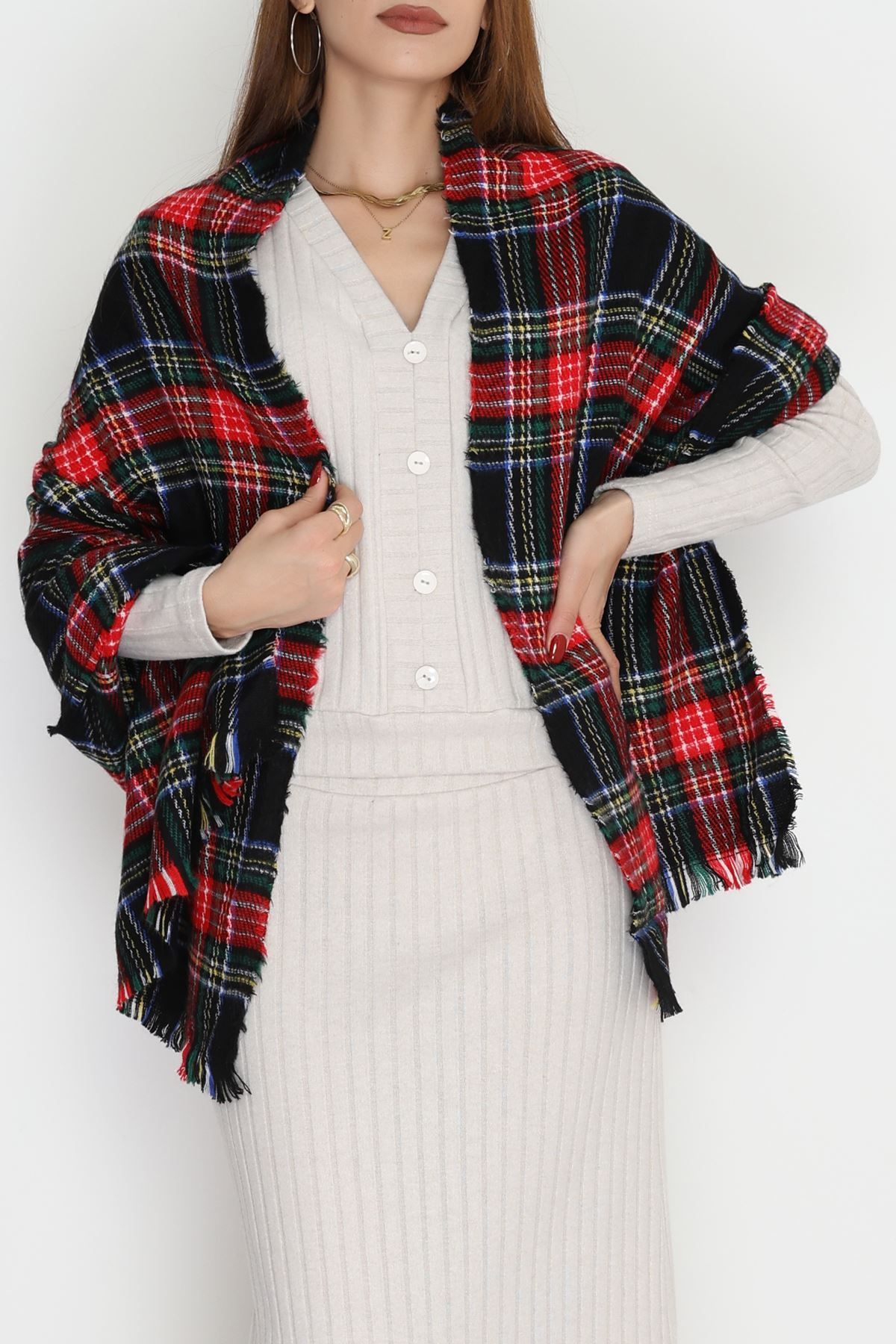 Desenli Kaşe Şal Kırmızıekose - 70811.750.