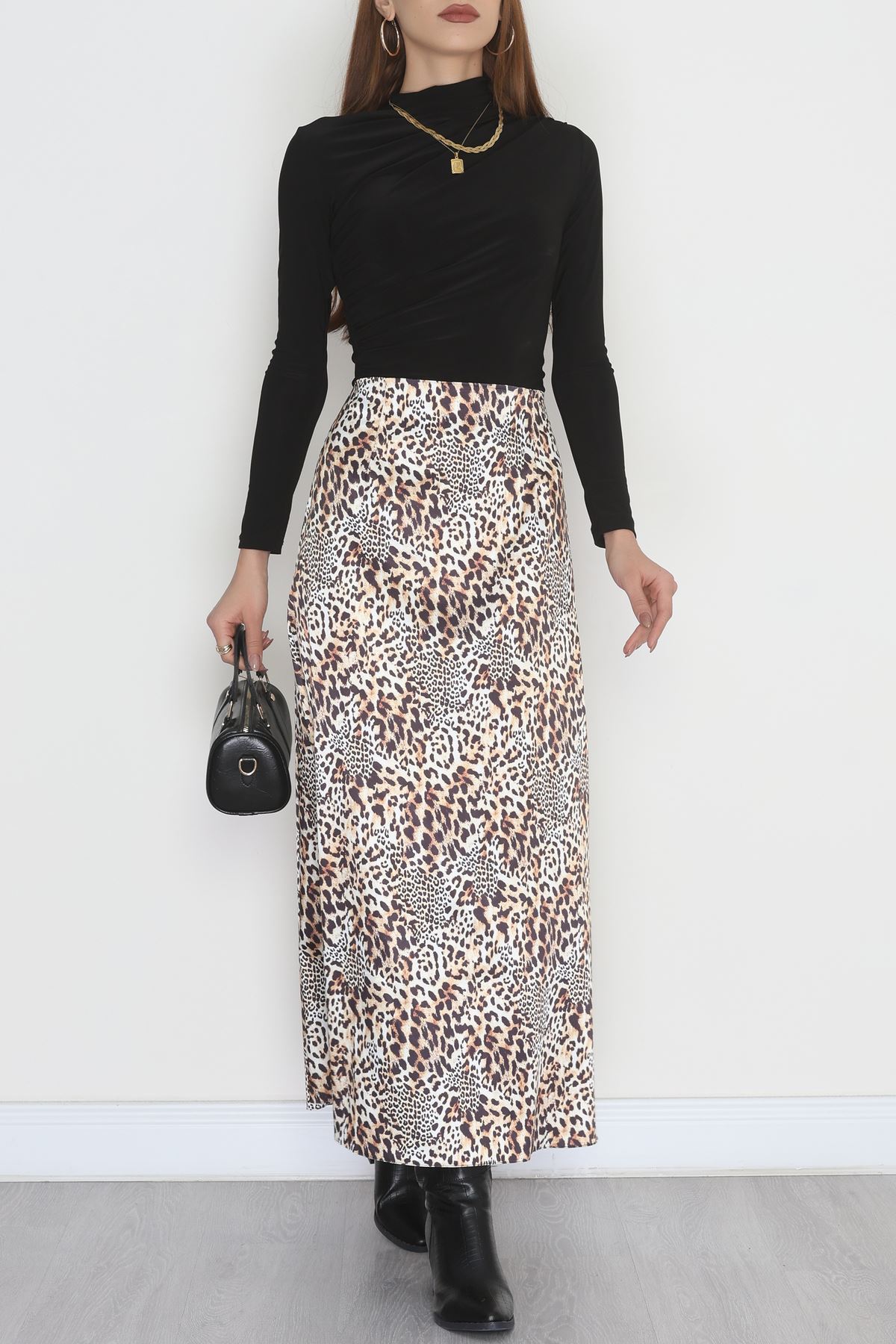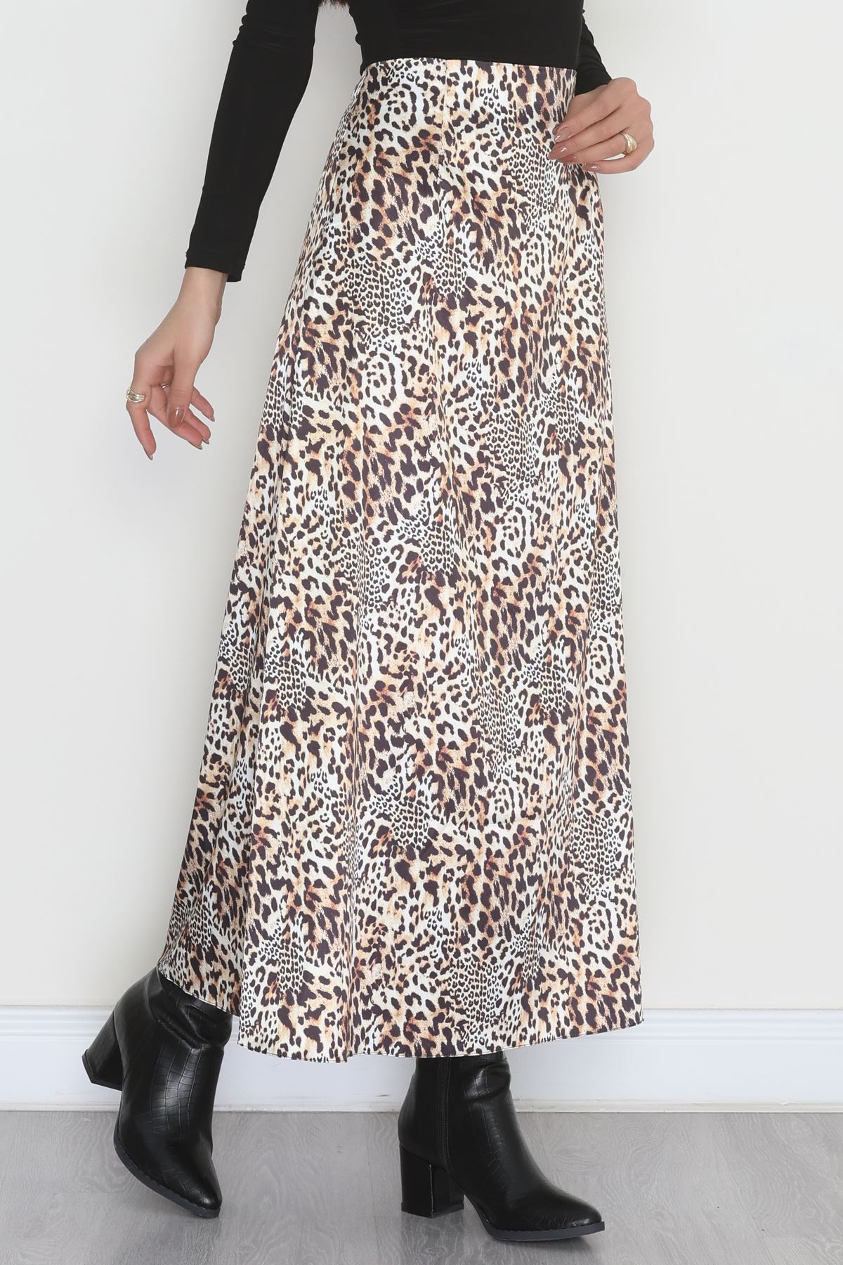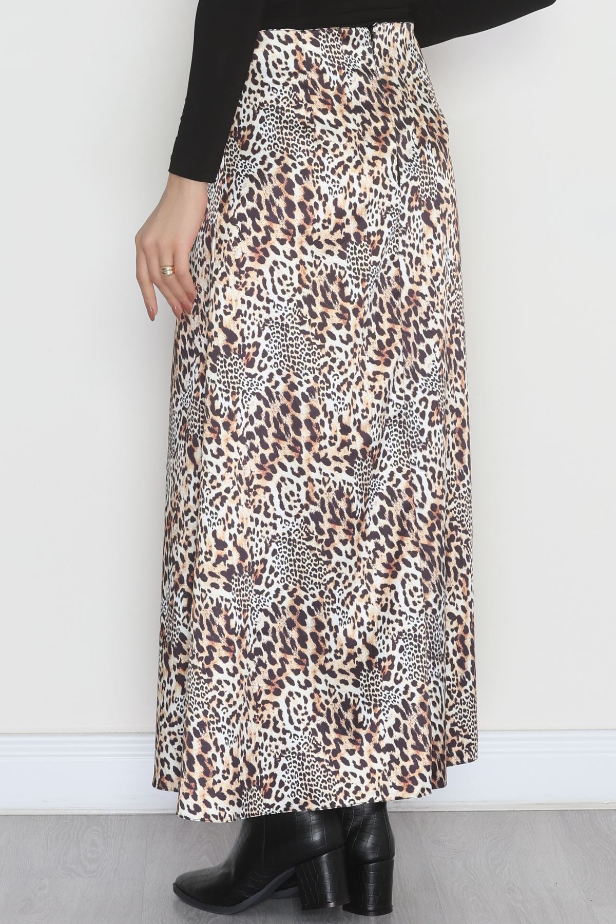 Desenli Yırtmaçlı Saten Etek Leopar - 4315.1595.