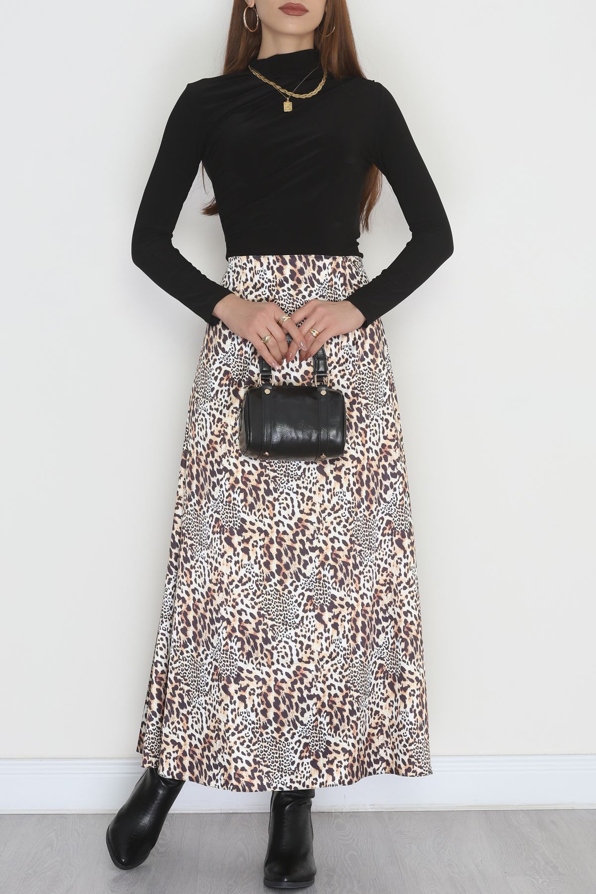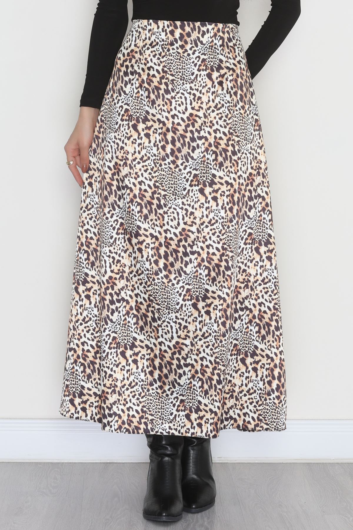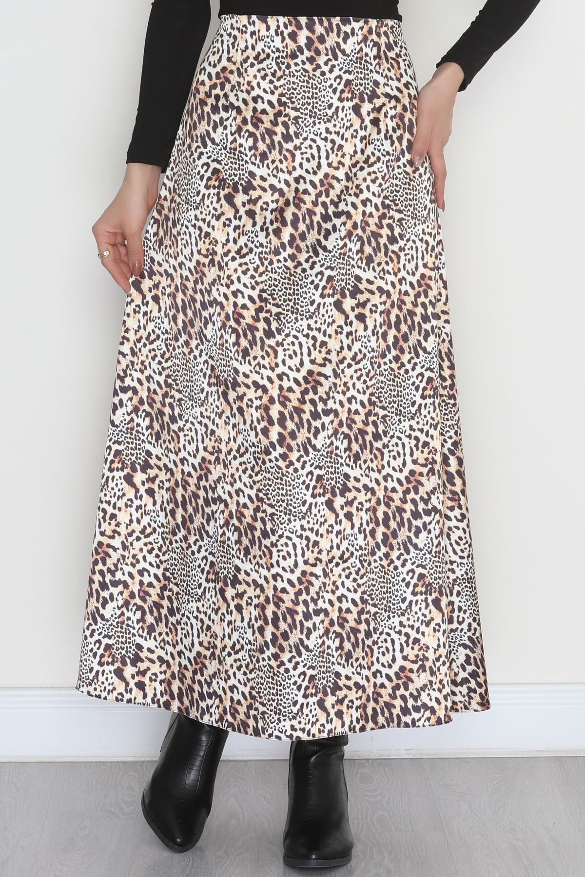 Desenli Yırtmaçlı Saten Etek Leopar - 4315.1595.
