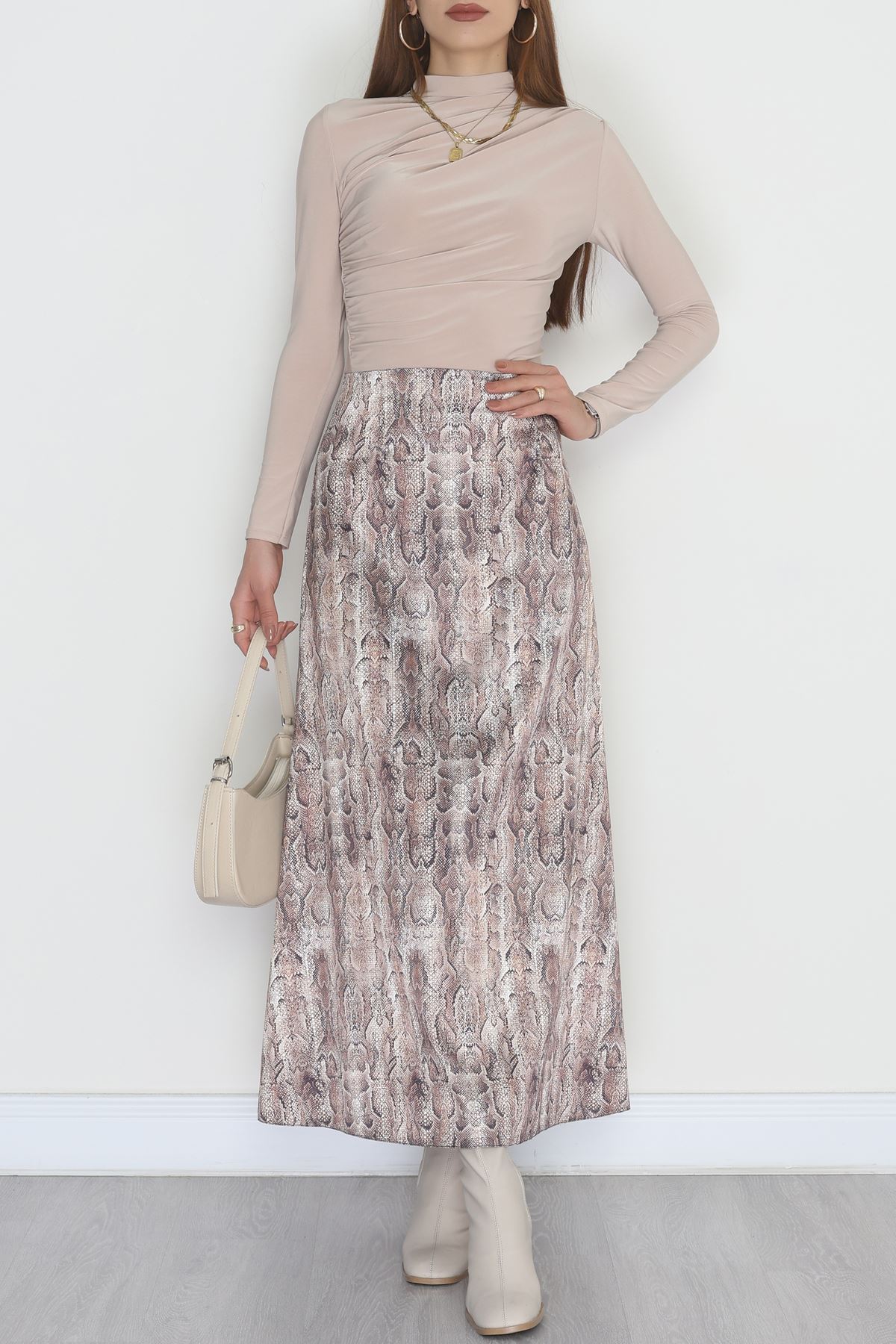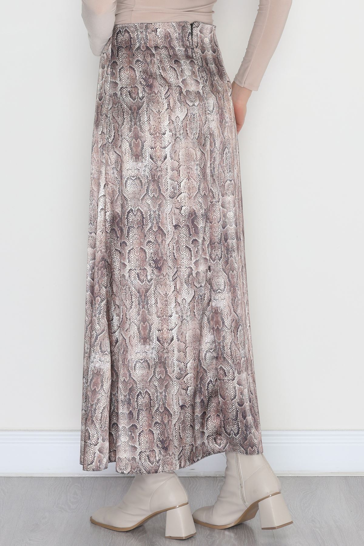 Desenli Yırtmaçlı Saten Etek Leopar - 4315.1595.