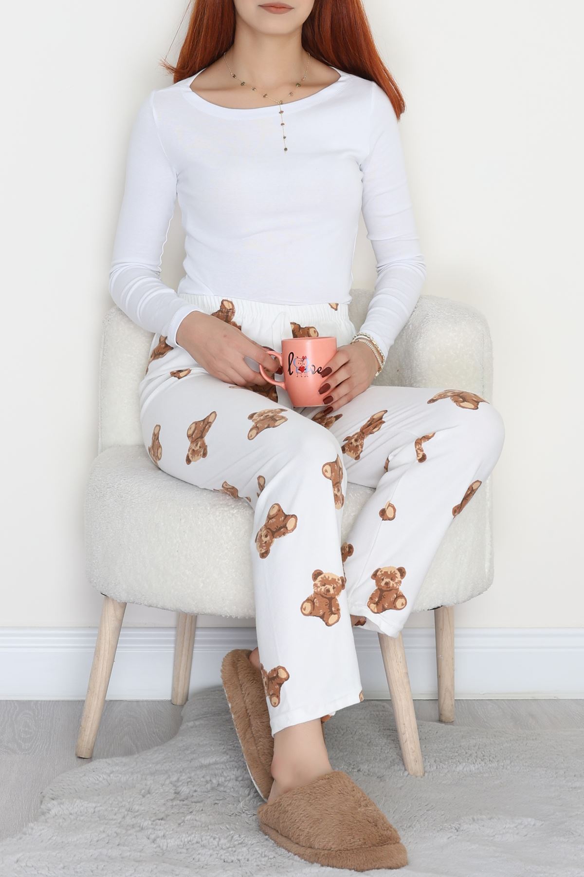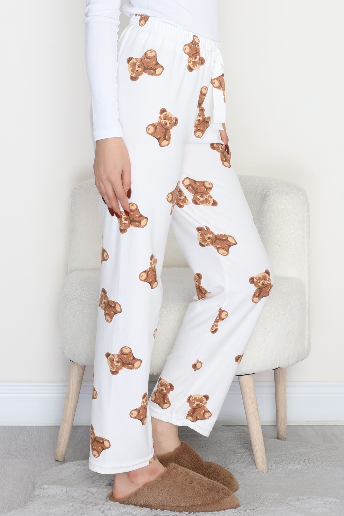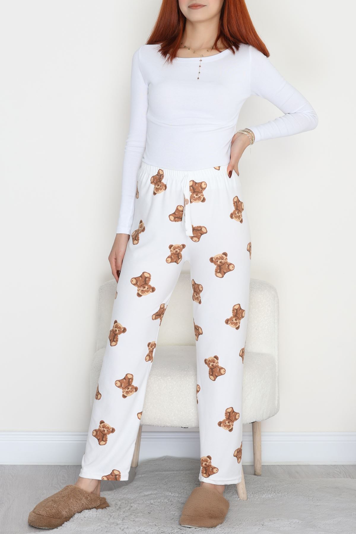 Desenli Süet Pijama Altı Beyazayı - 103.1287.