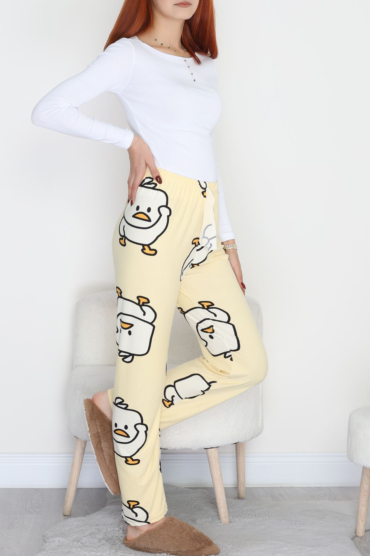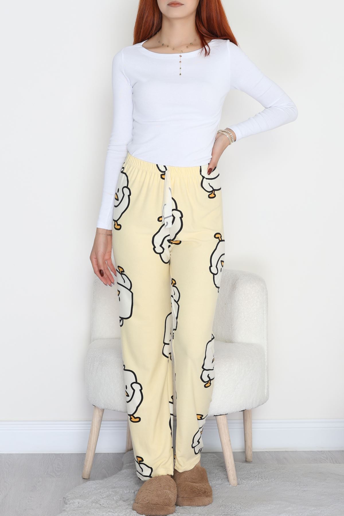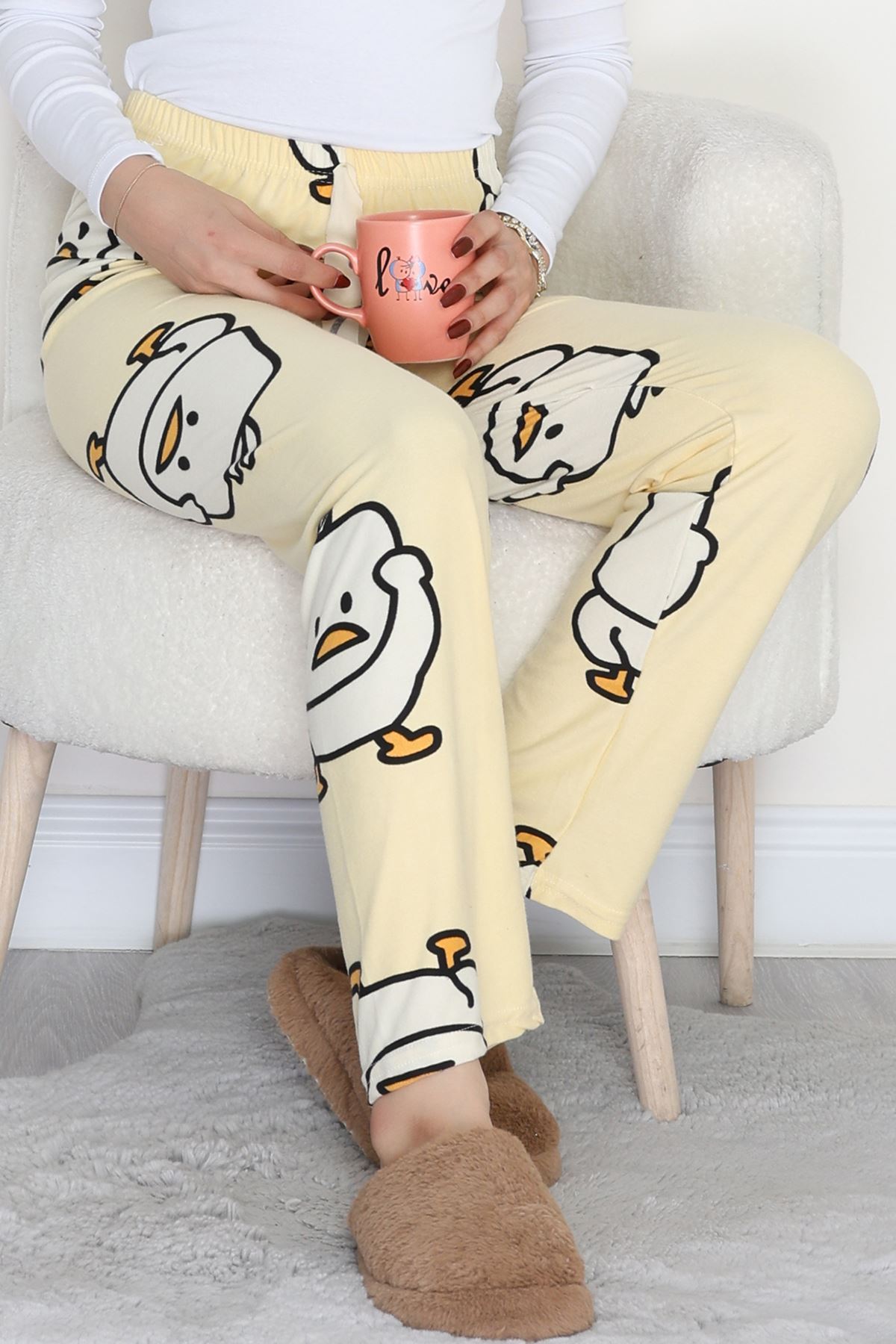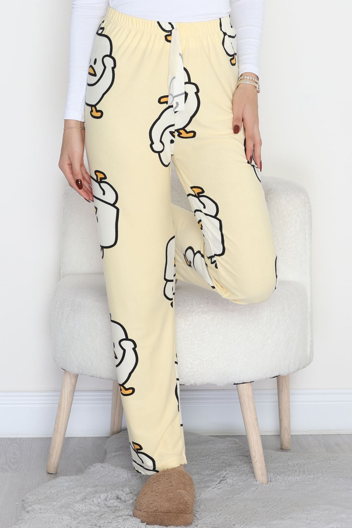 Desenli Süet Pijama Altı Sarı - 103.1287.