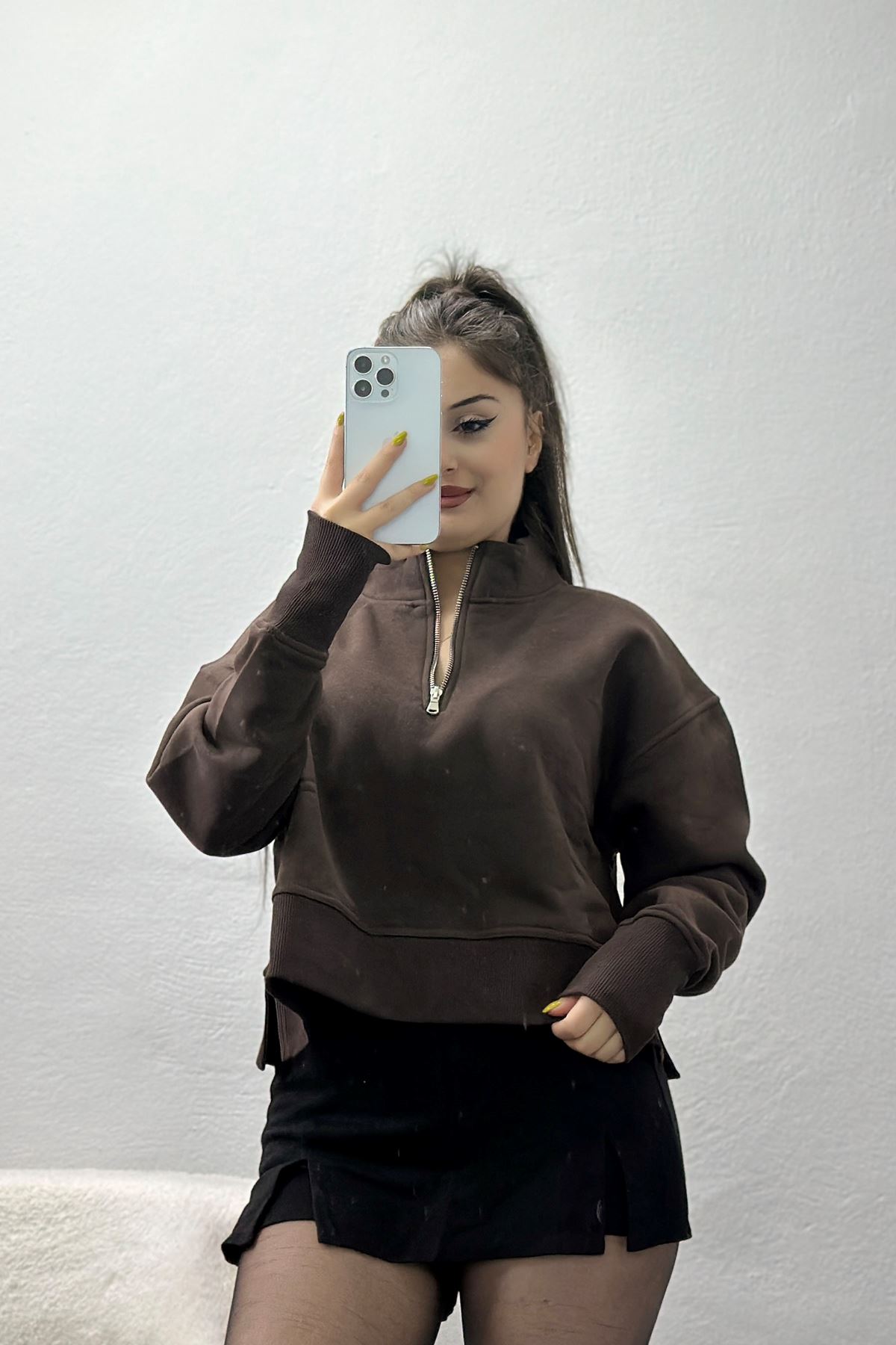 Dik Yaka 3 İplik Sweat Kahve - 21967.200.