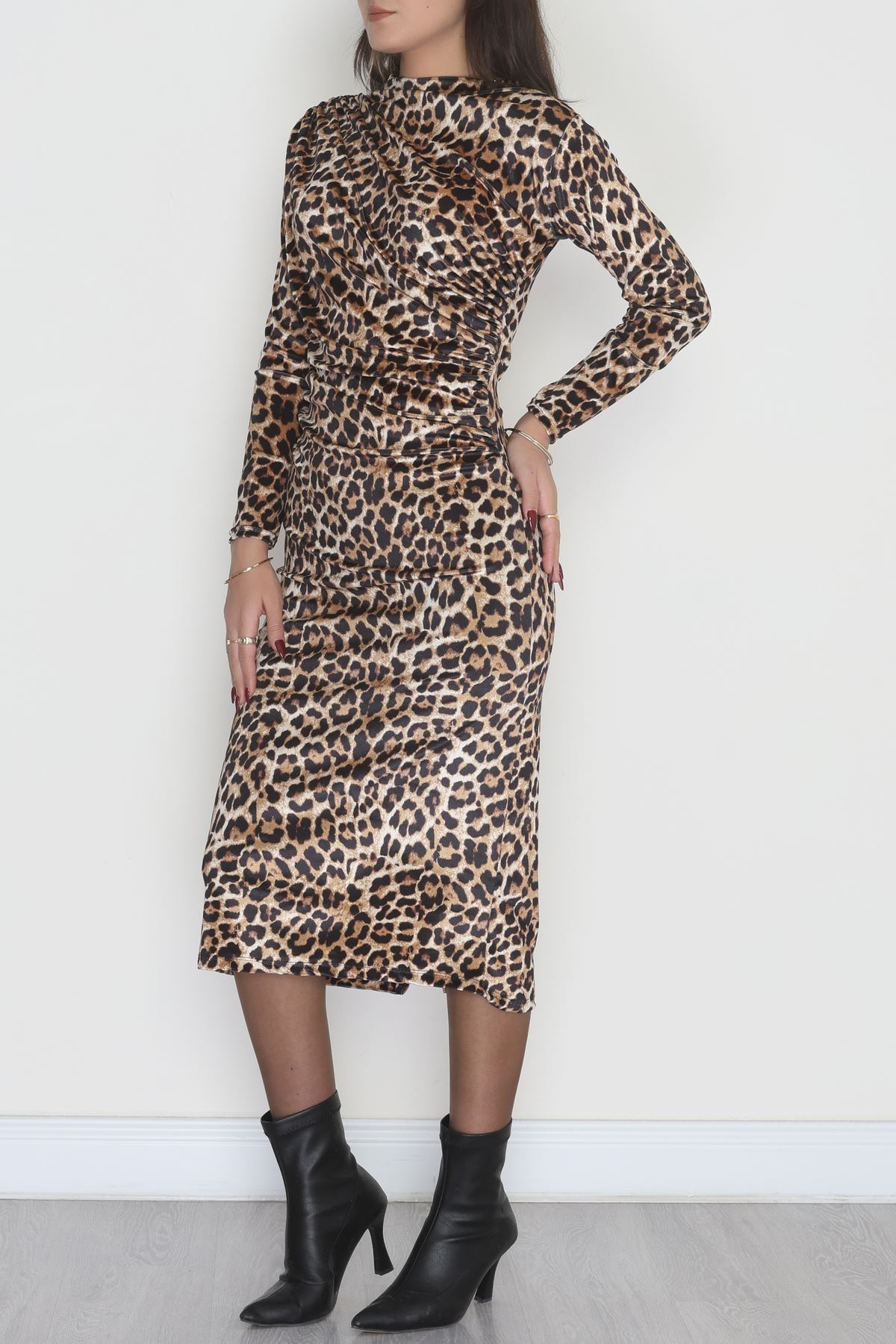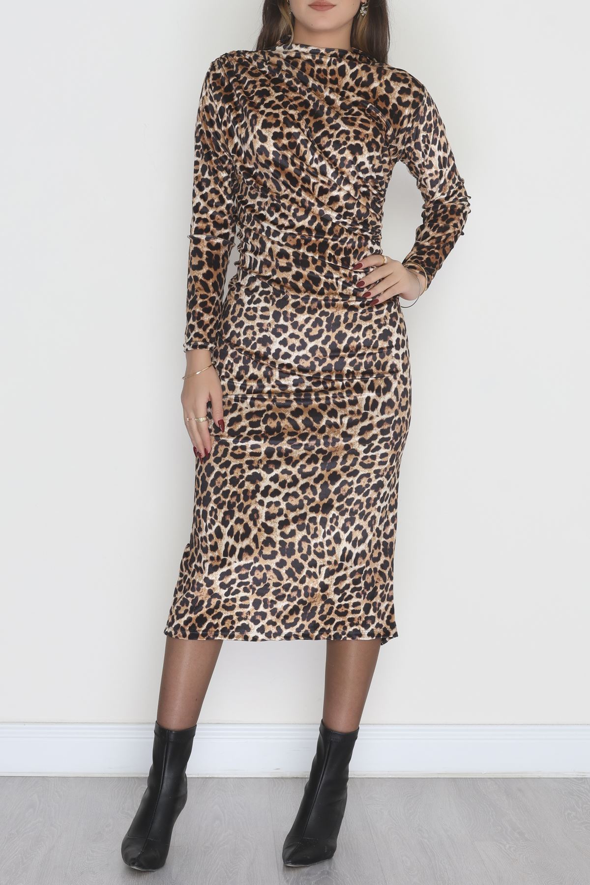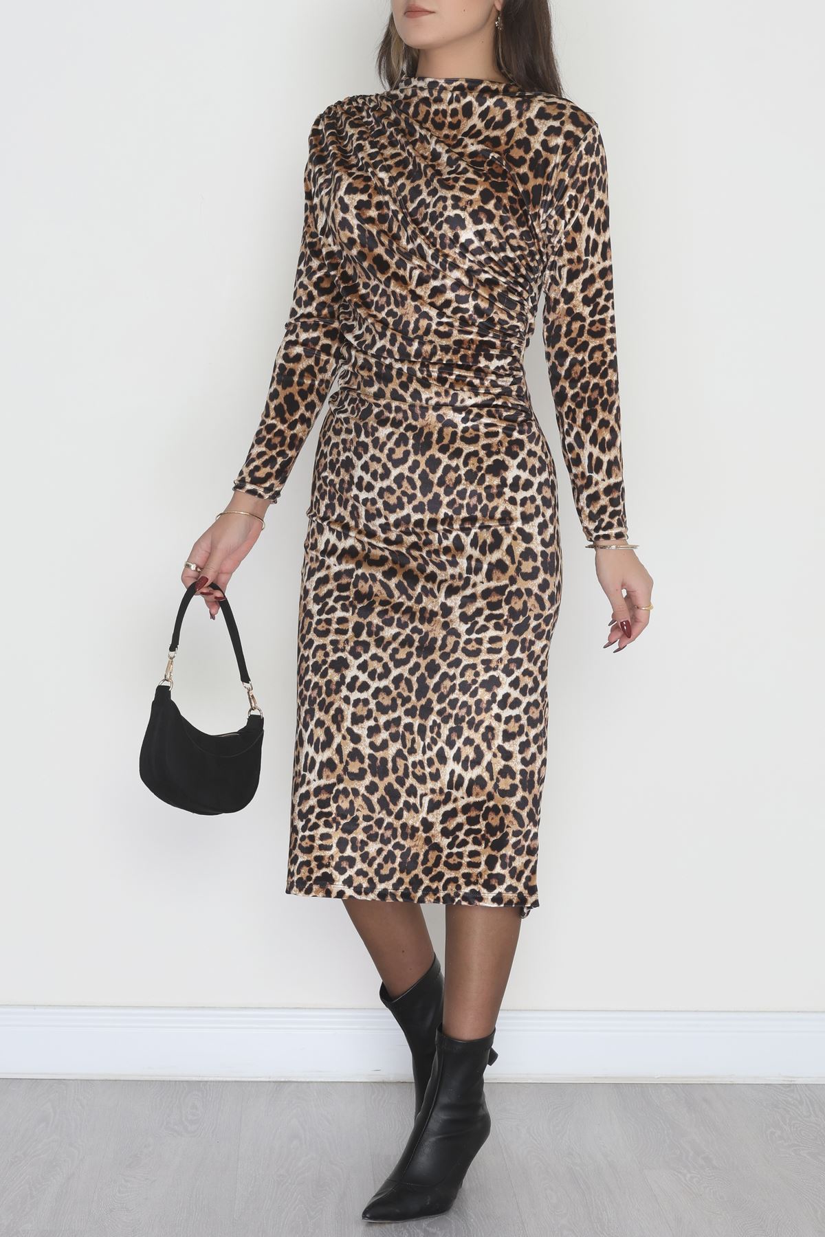 Dik Yaka Desenli Kadife Elbise Leopar1 - 42668.1949.