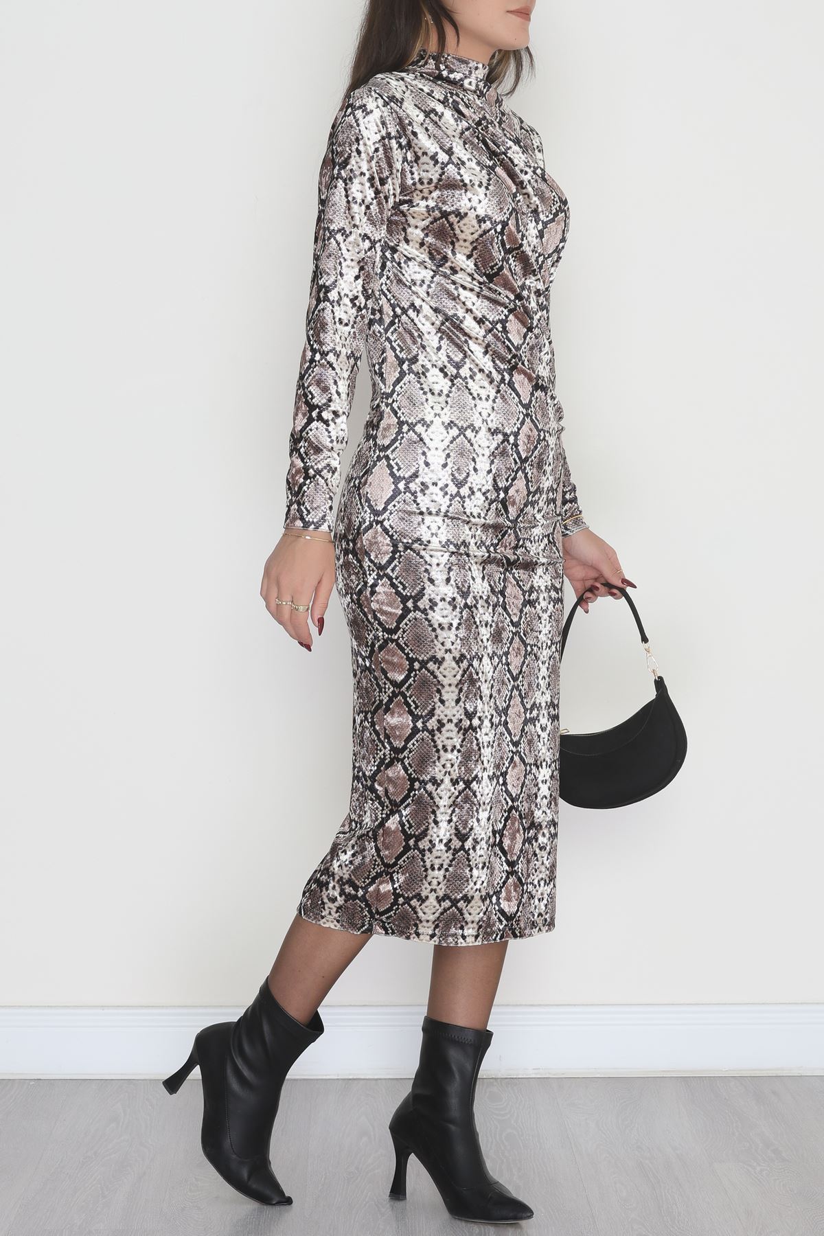 Dik Yaka Desenli Kadife Elbise Yılanderisi - 42668.1949.