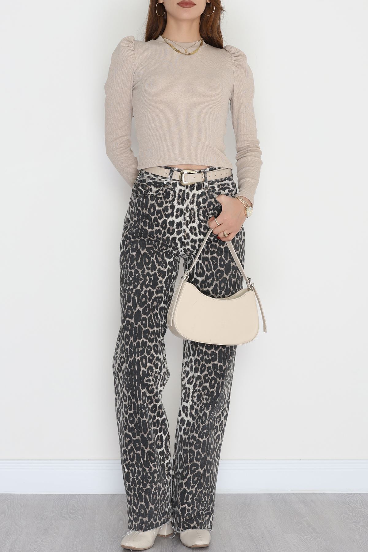 Desenli Dik Yaka Sandy Bluz Leopar - 70689.1949.