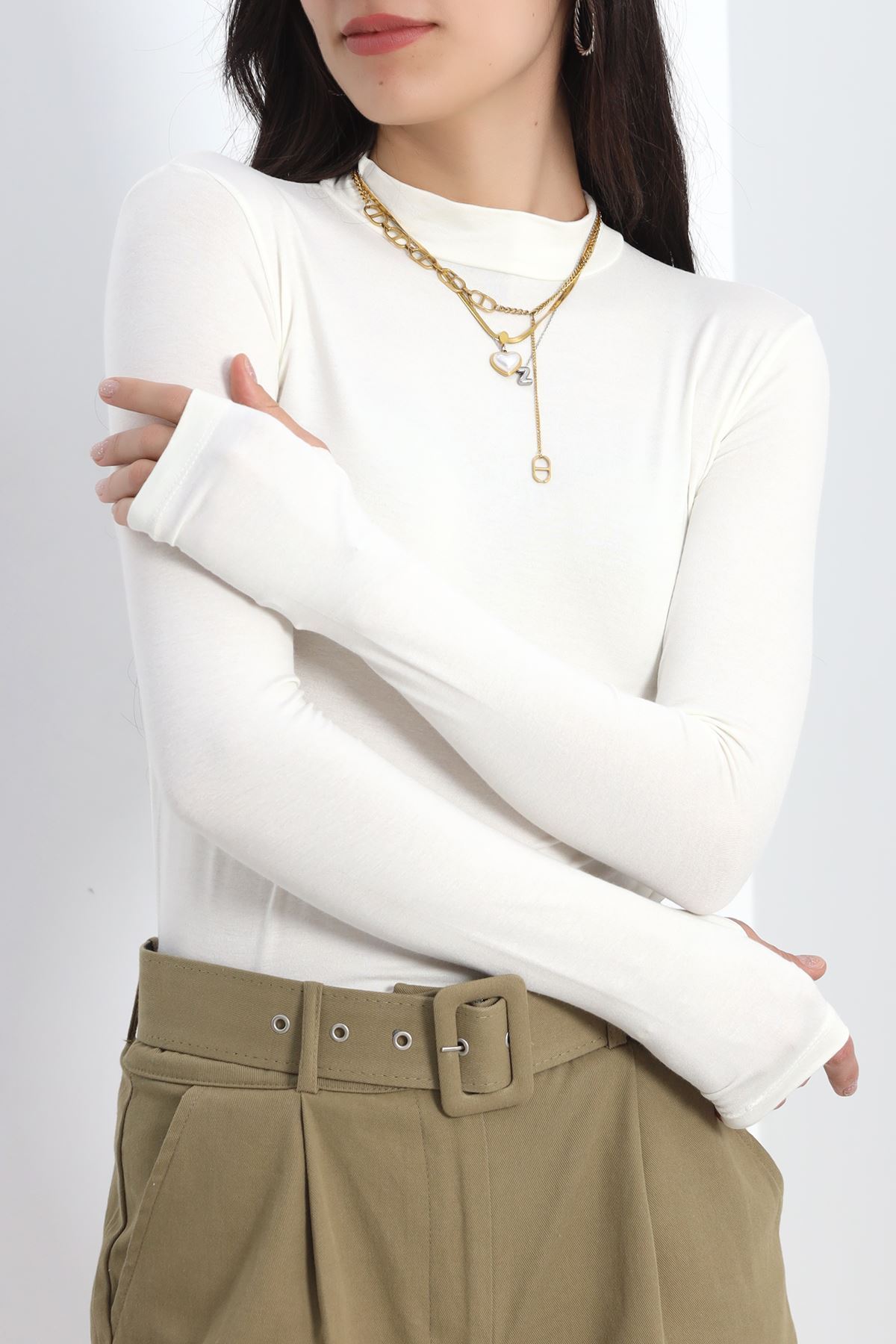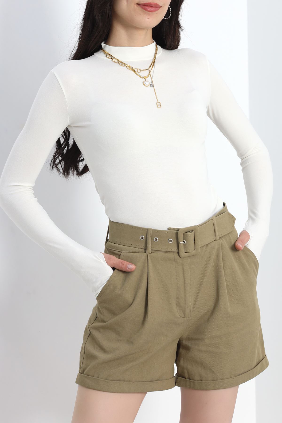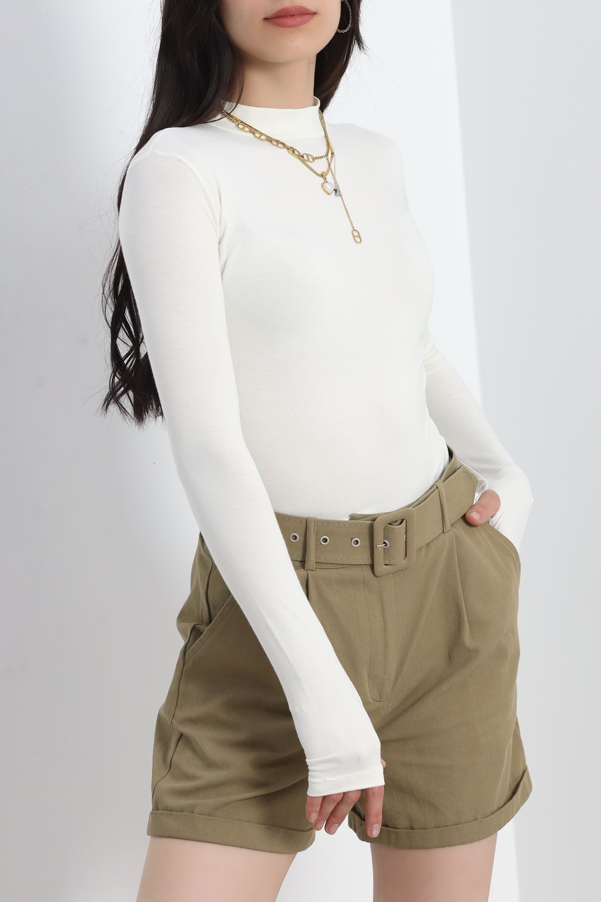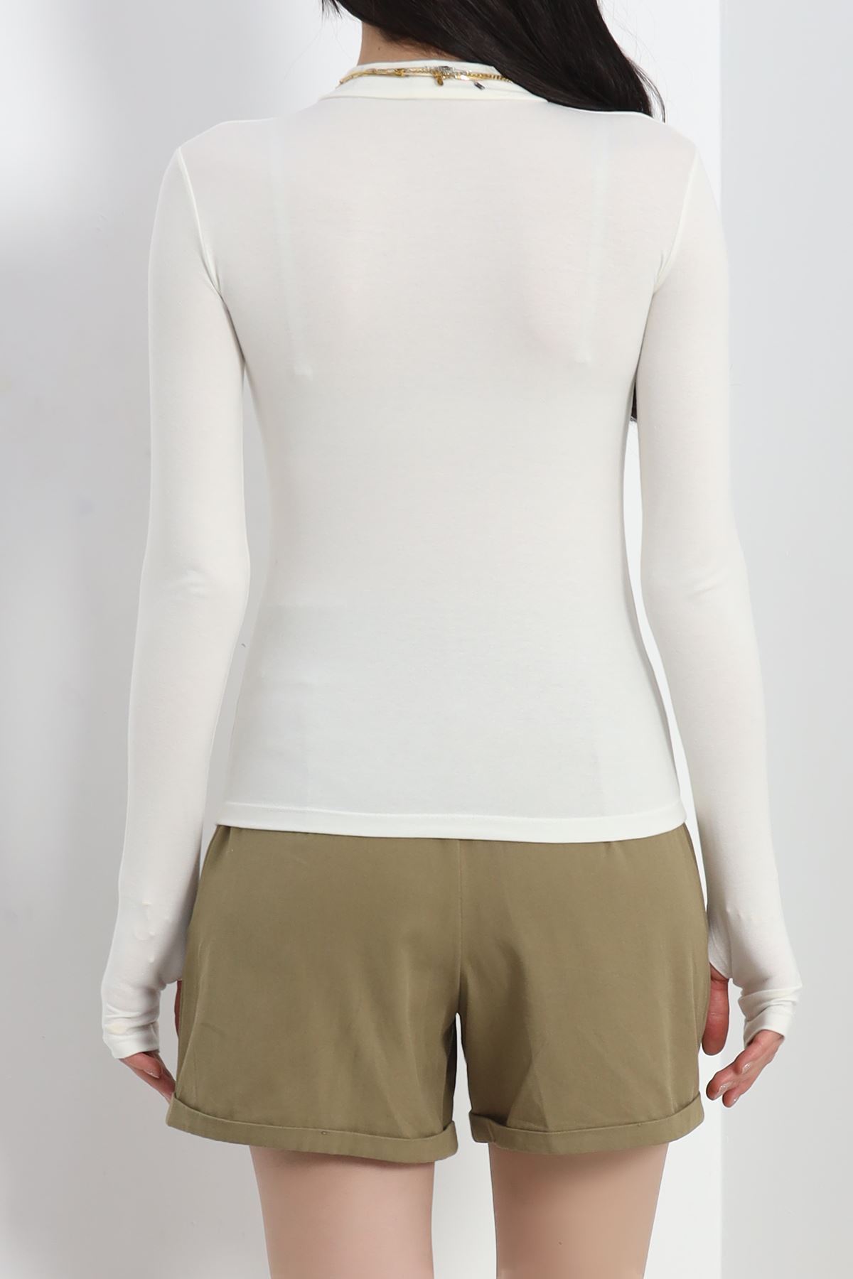 Dik Yaka Parmak Geçmeli Viskon Body Ekru - 40076.599.