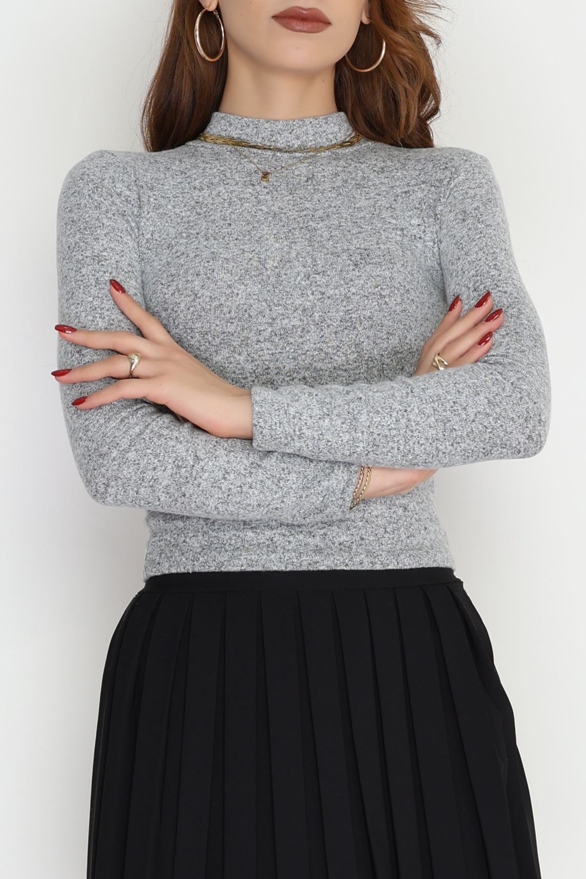 Fermuarlı Triko Açıkgri - 2252.1765.