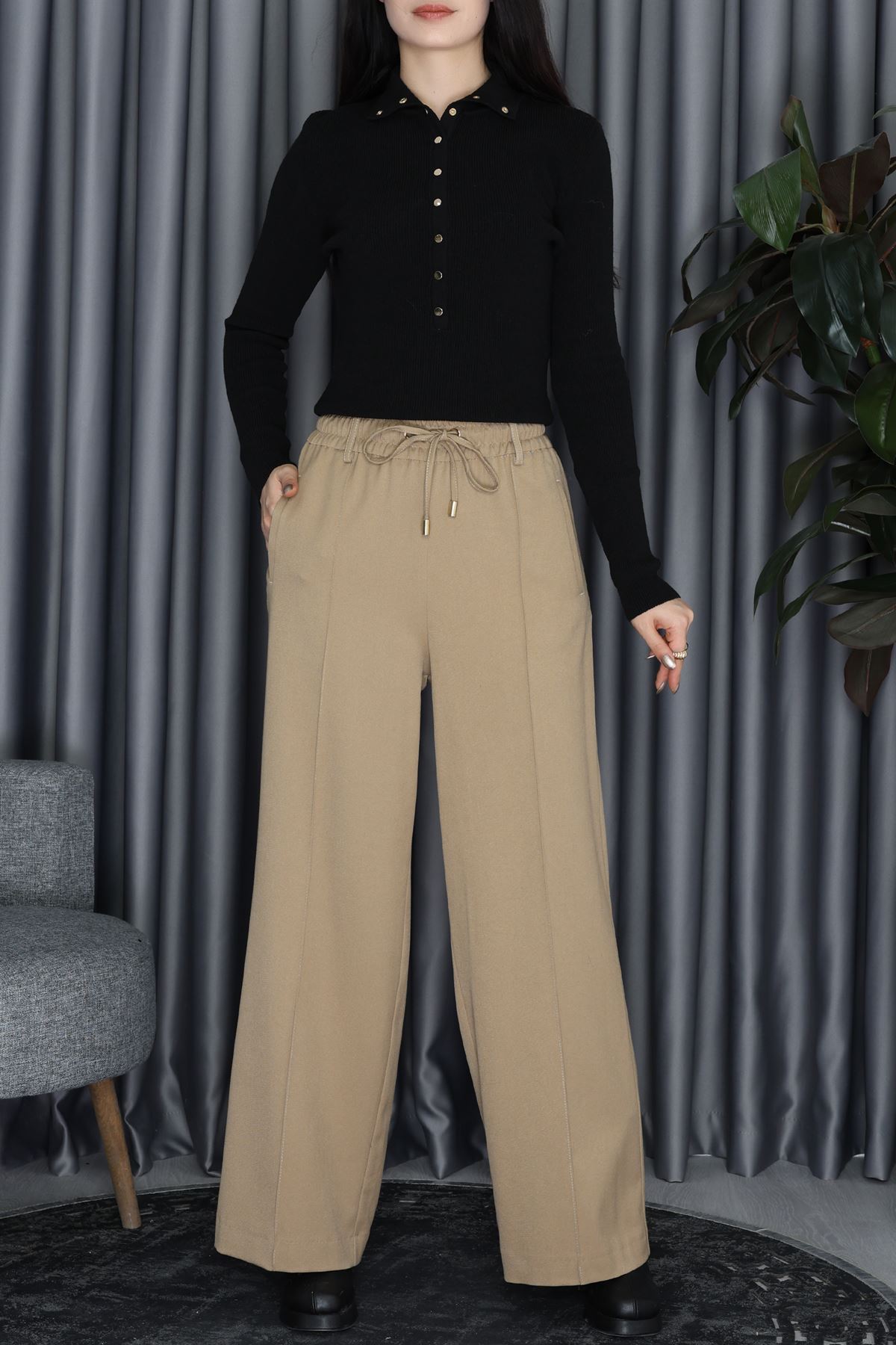 Dilvin Geniş Paça Yumuşak Pantolon Camel - 72170.2100.