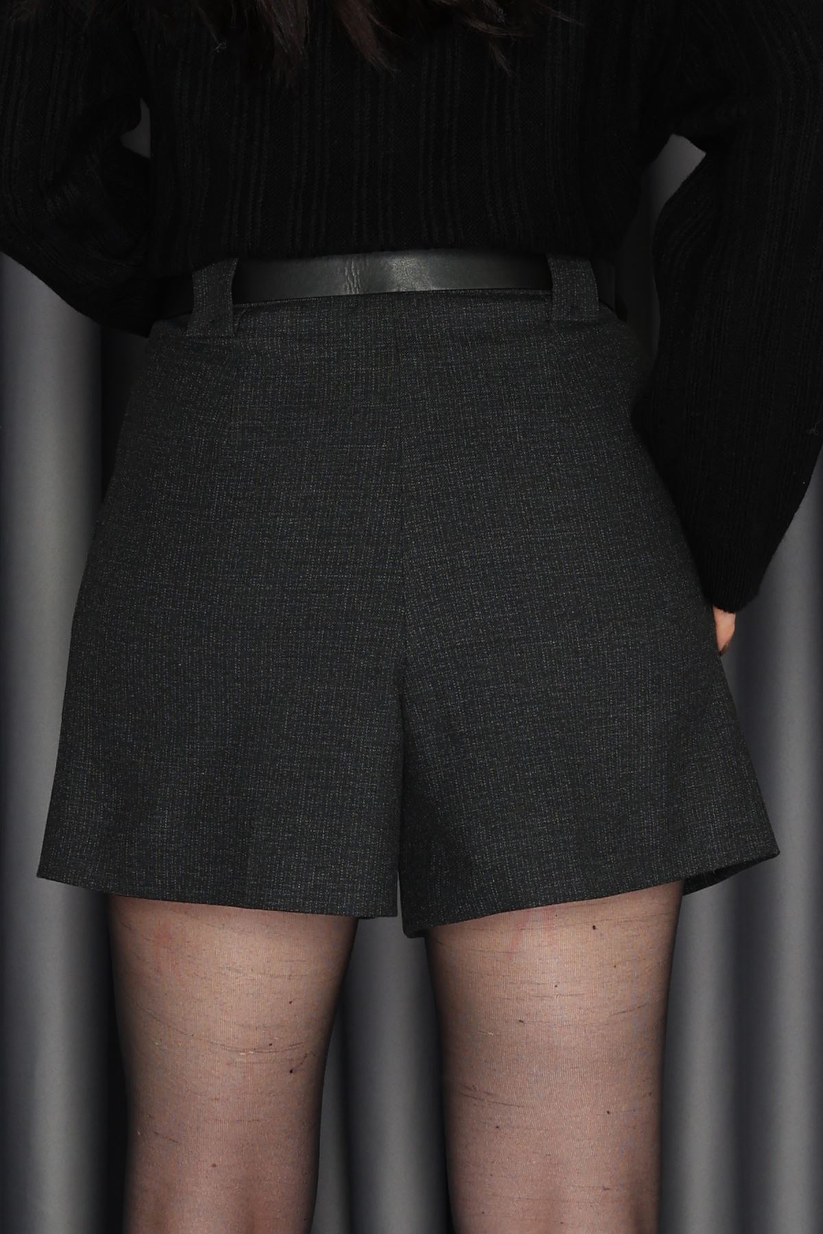 Dilvin Normal Bel Pili Detaylı Şort Antrasit - 72194.2100.