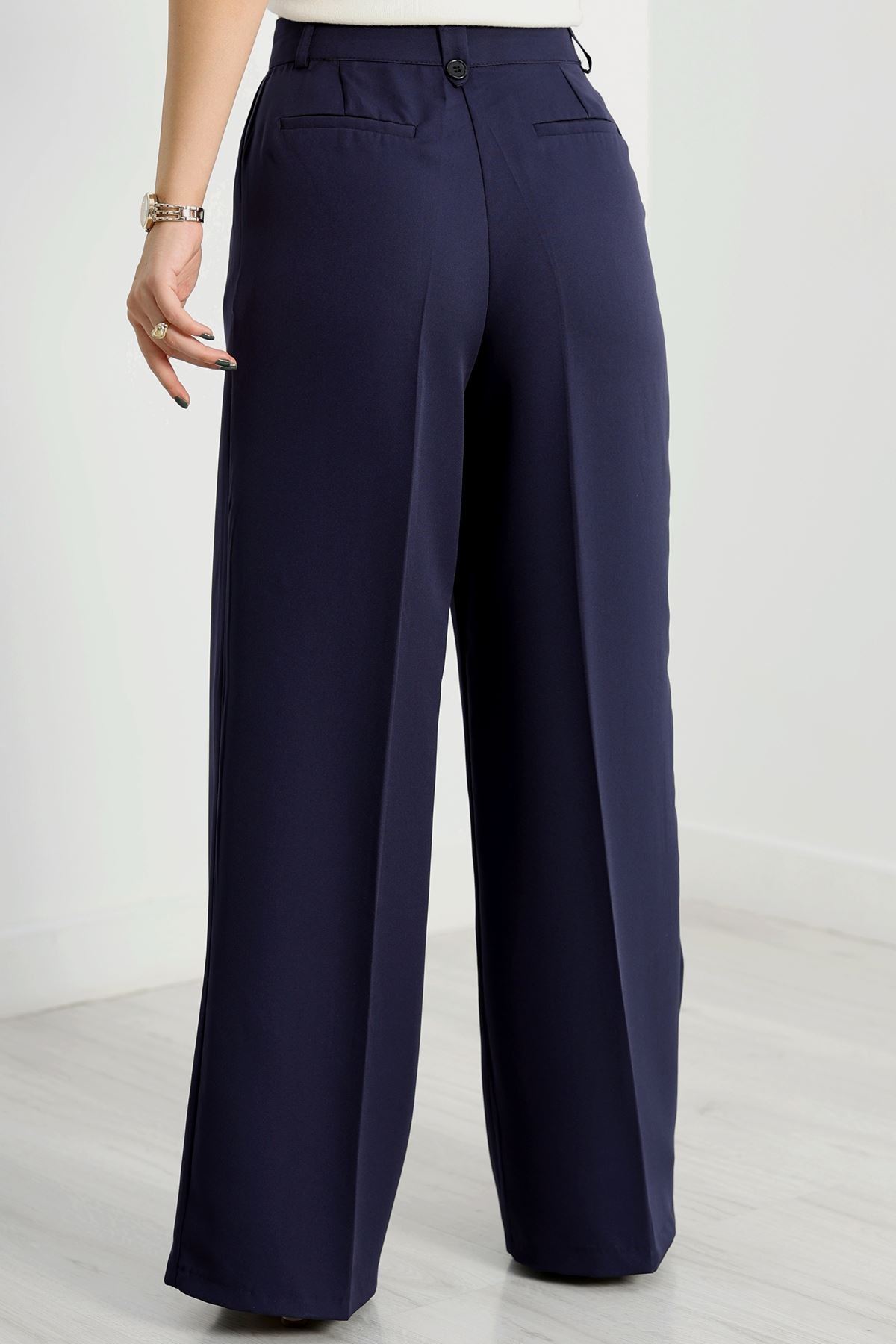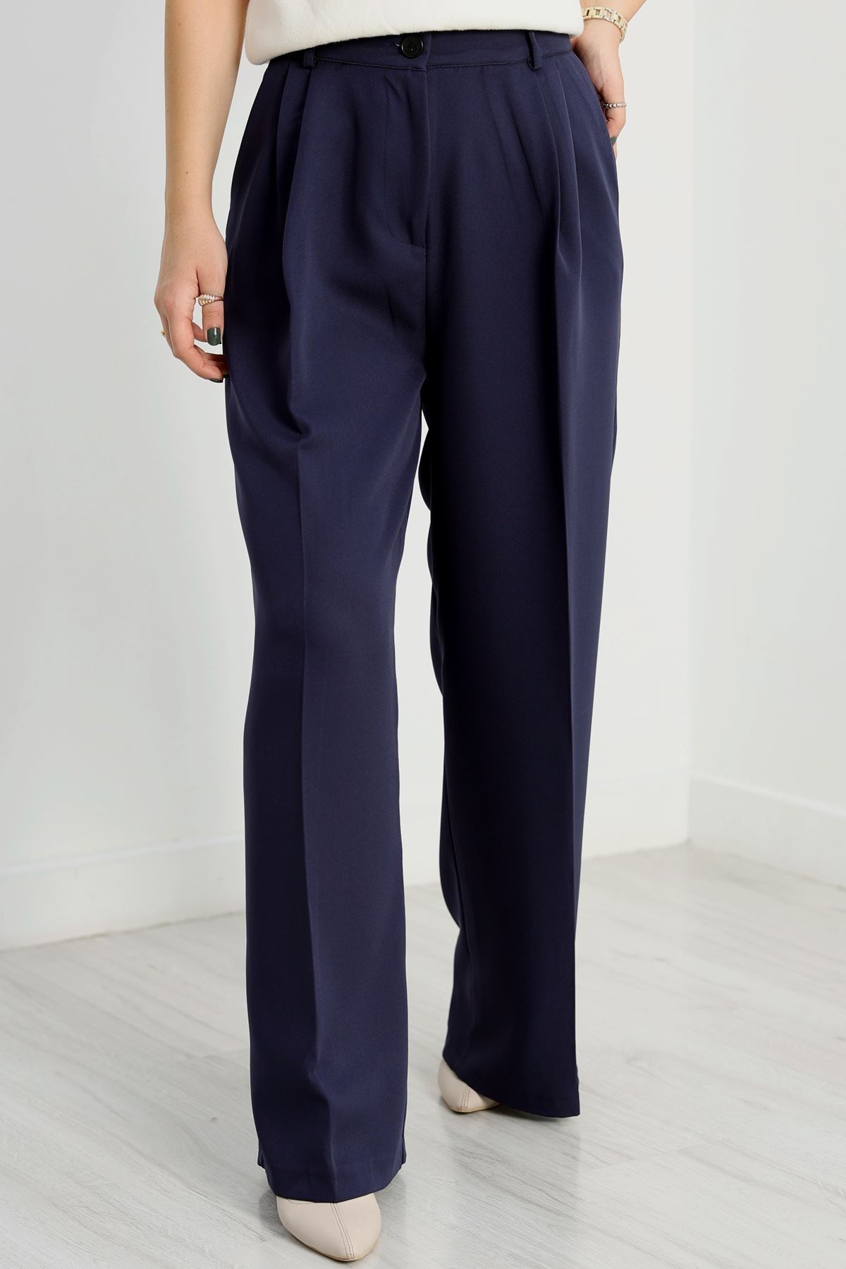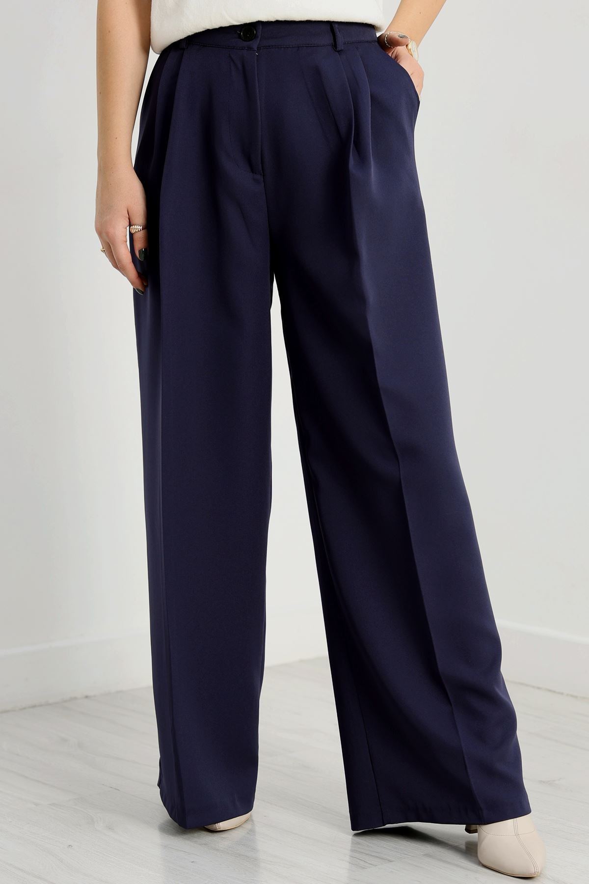 Double Kumaş Palazzo Pantolon Lacivert - 90158.1920.