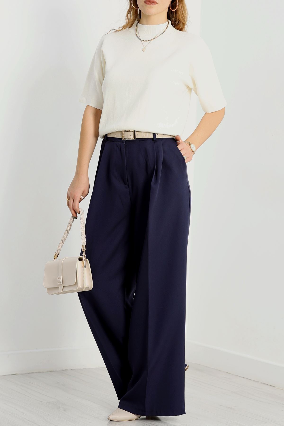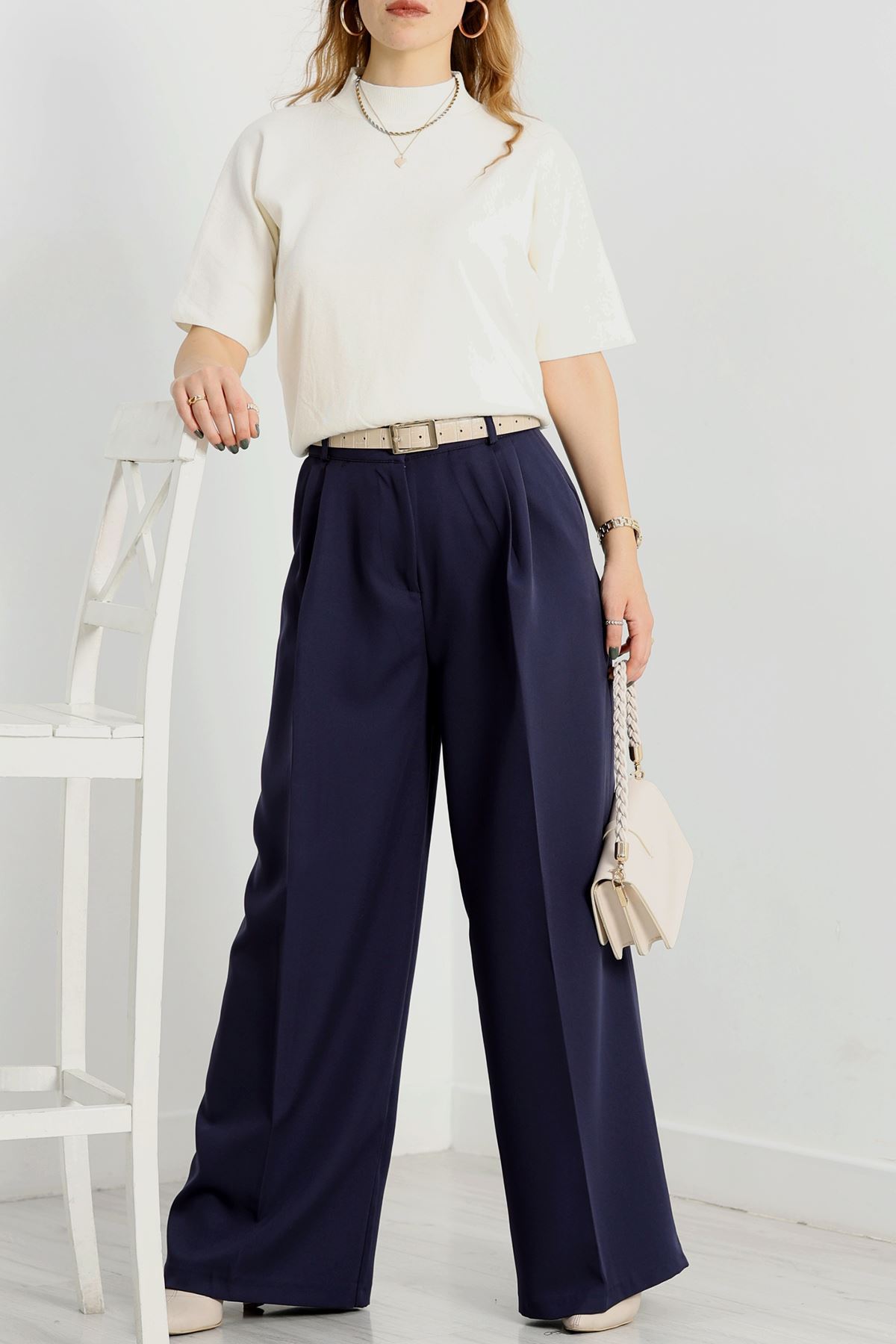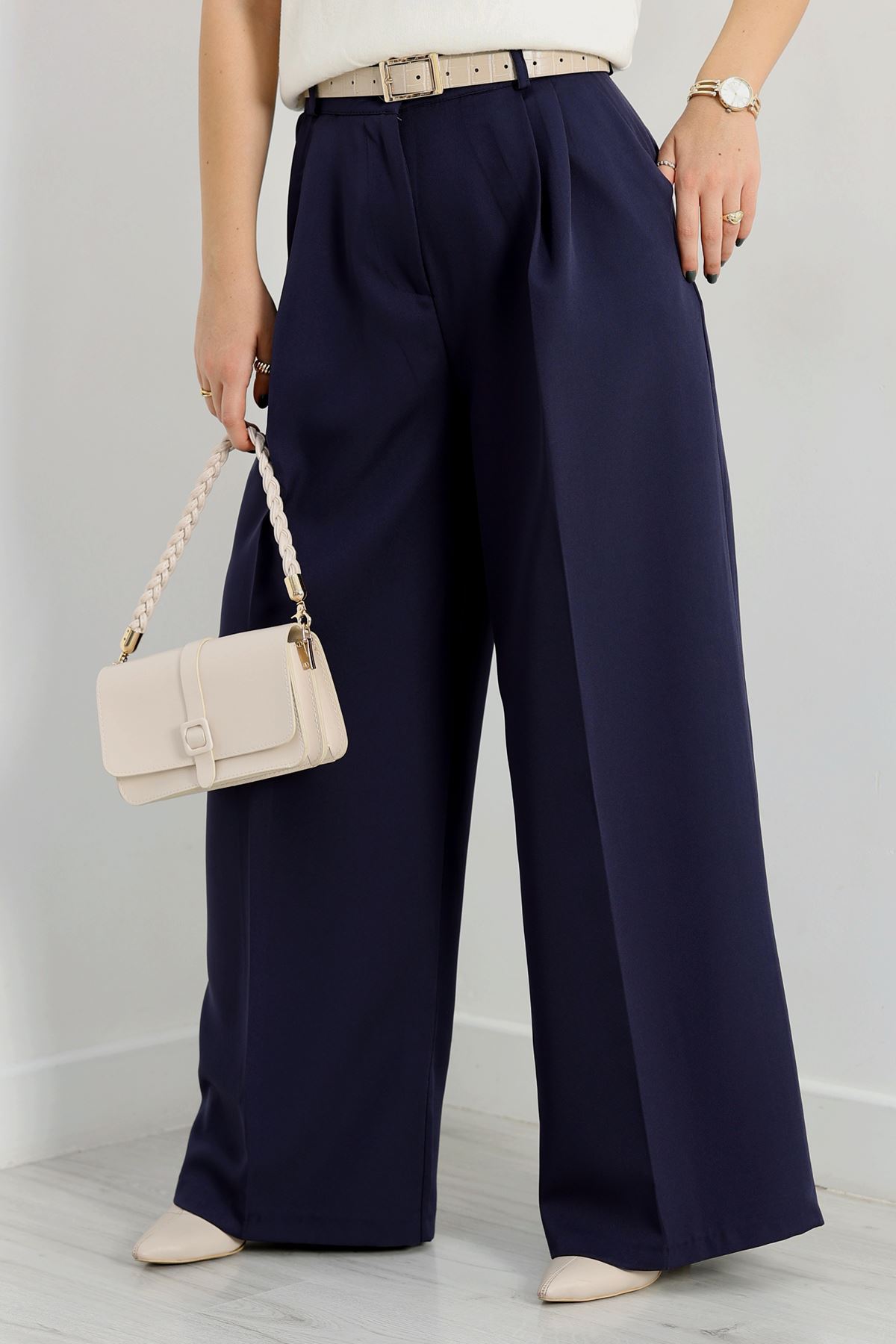 Double Kumaş Palazzo Pantolon Lacivert - 90158.1920.