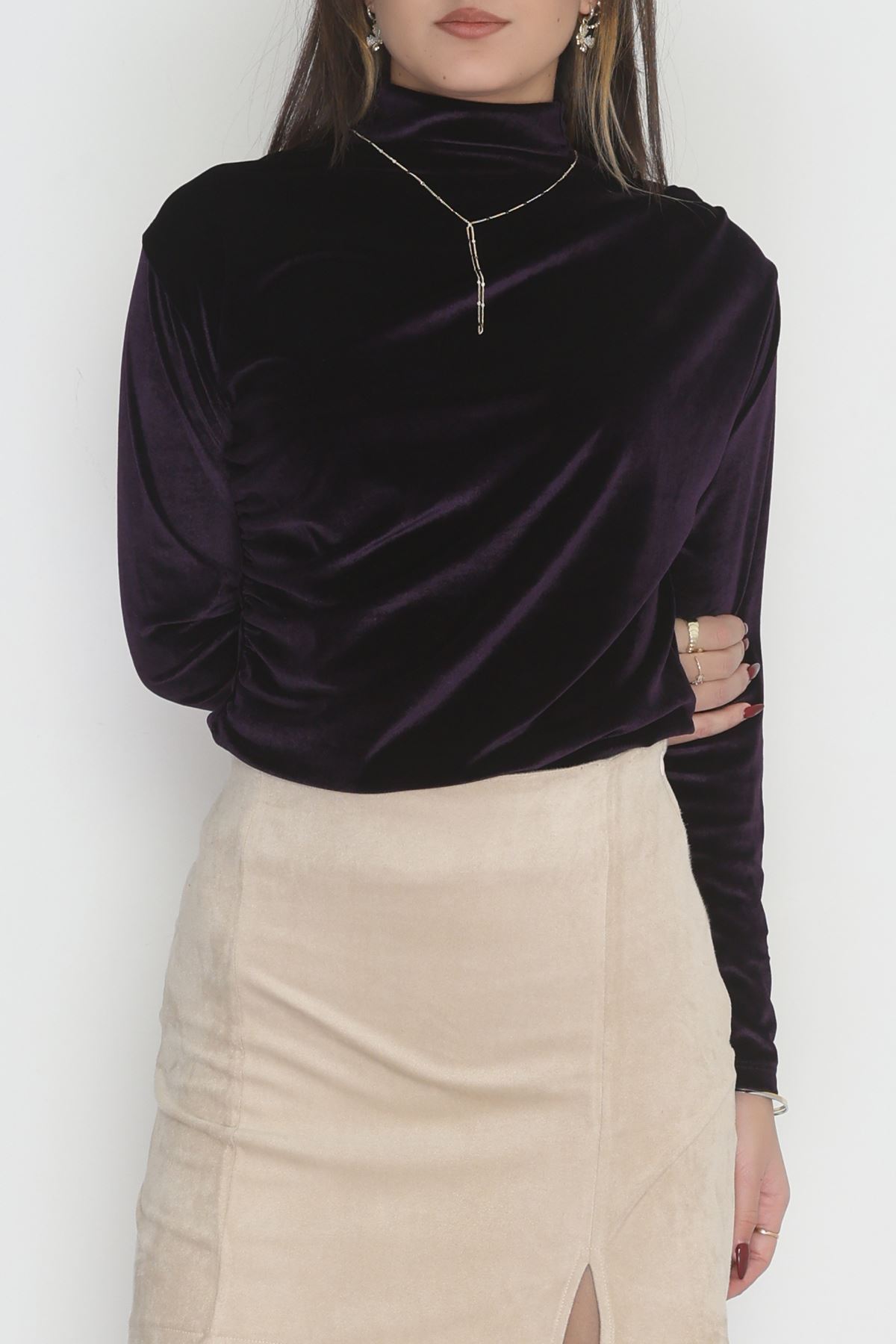 Drape Detaylı Kadife Bluz Mürdüm - 42664.1949.