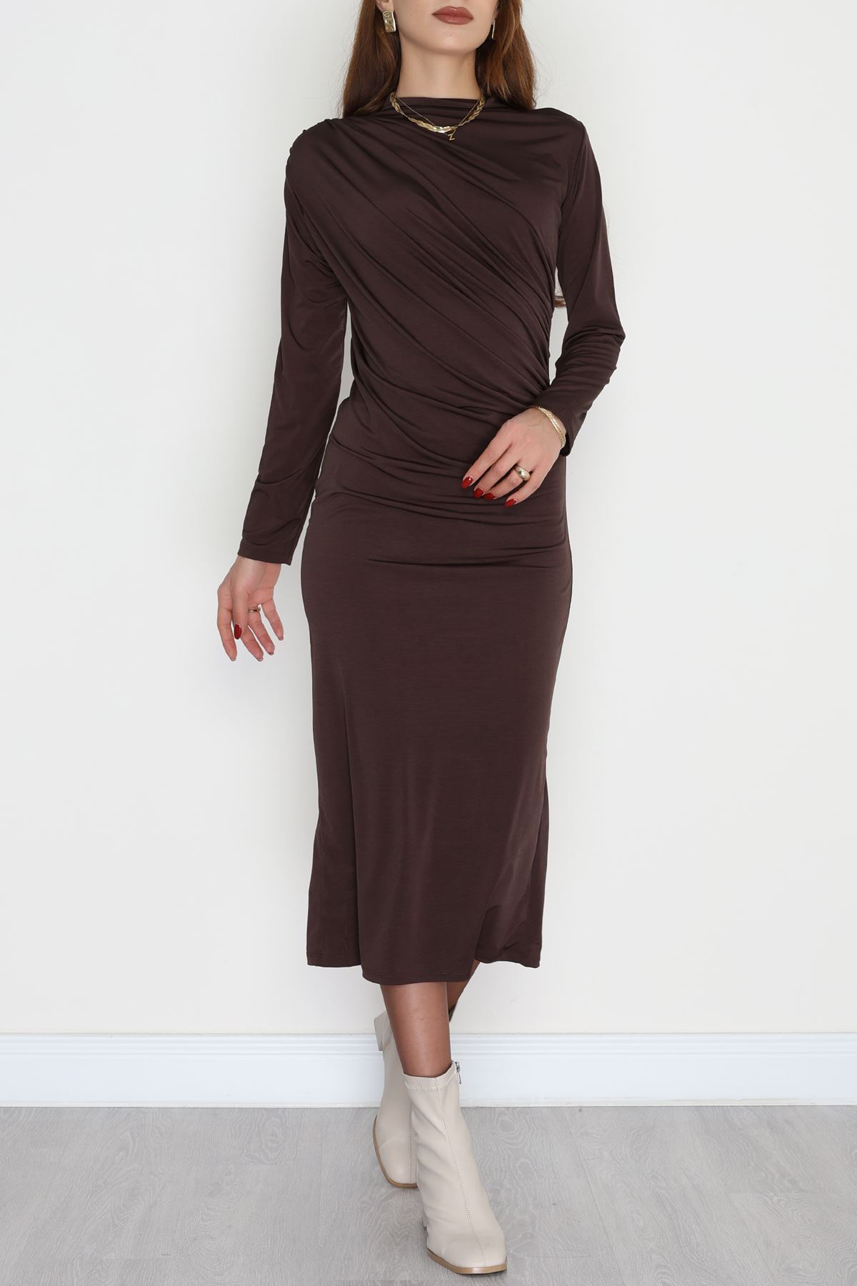 Drapeli Sandy Elbise Kahve - 42541.1949.