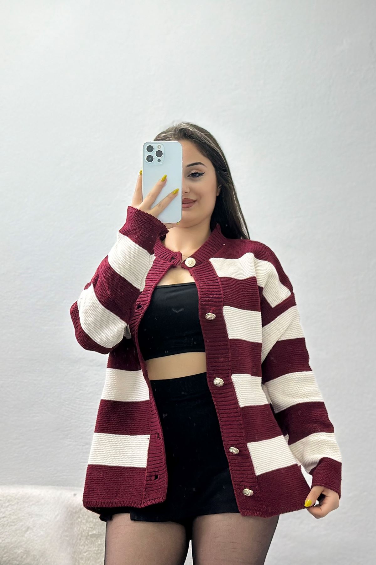 Düğmeli Bisiklet Yaka Hırka Bordolatte - 415.1577.