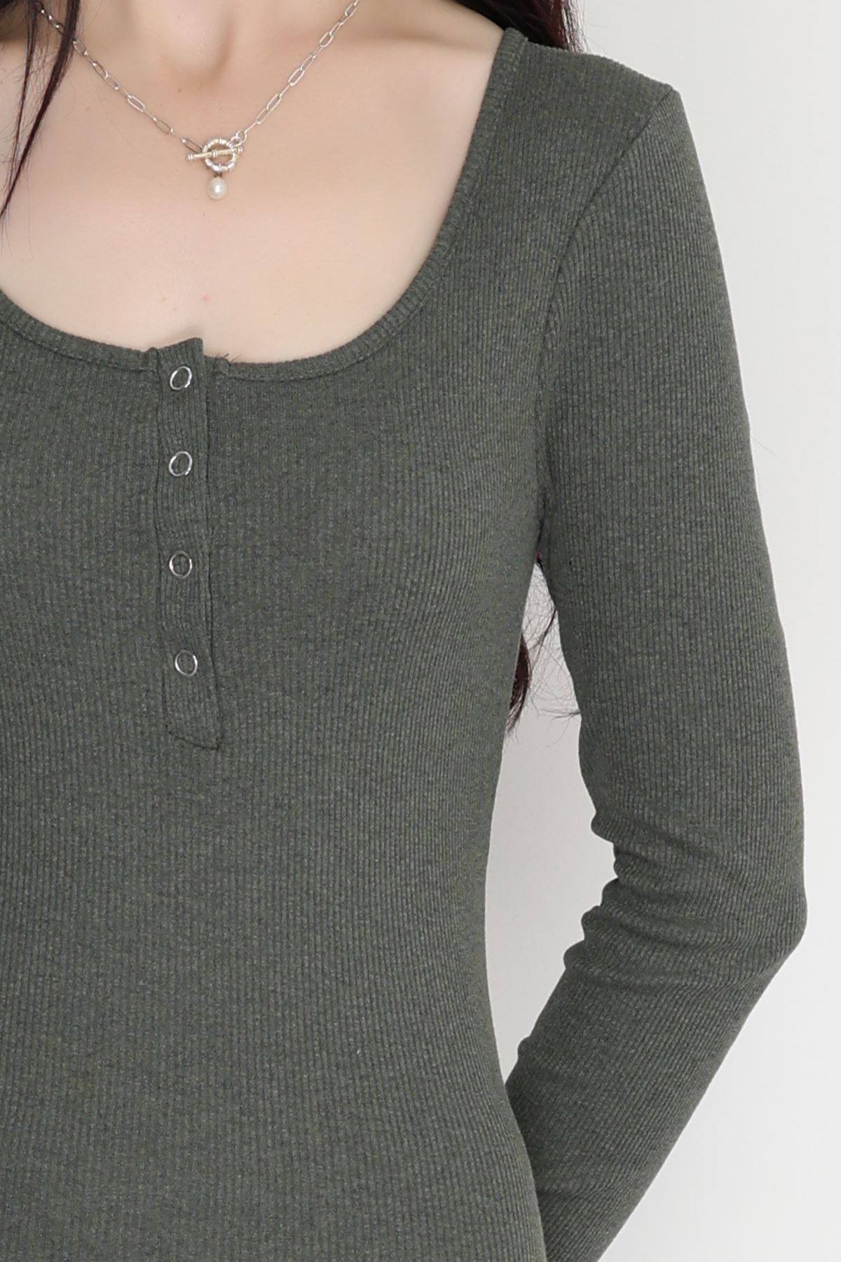Düğmeli Kaşkorse Elbise Haki - 70710.1748.