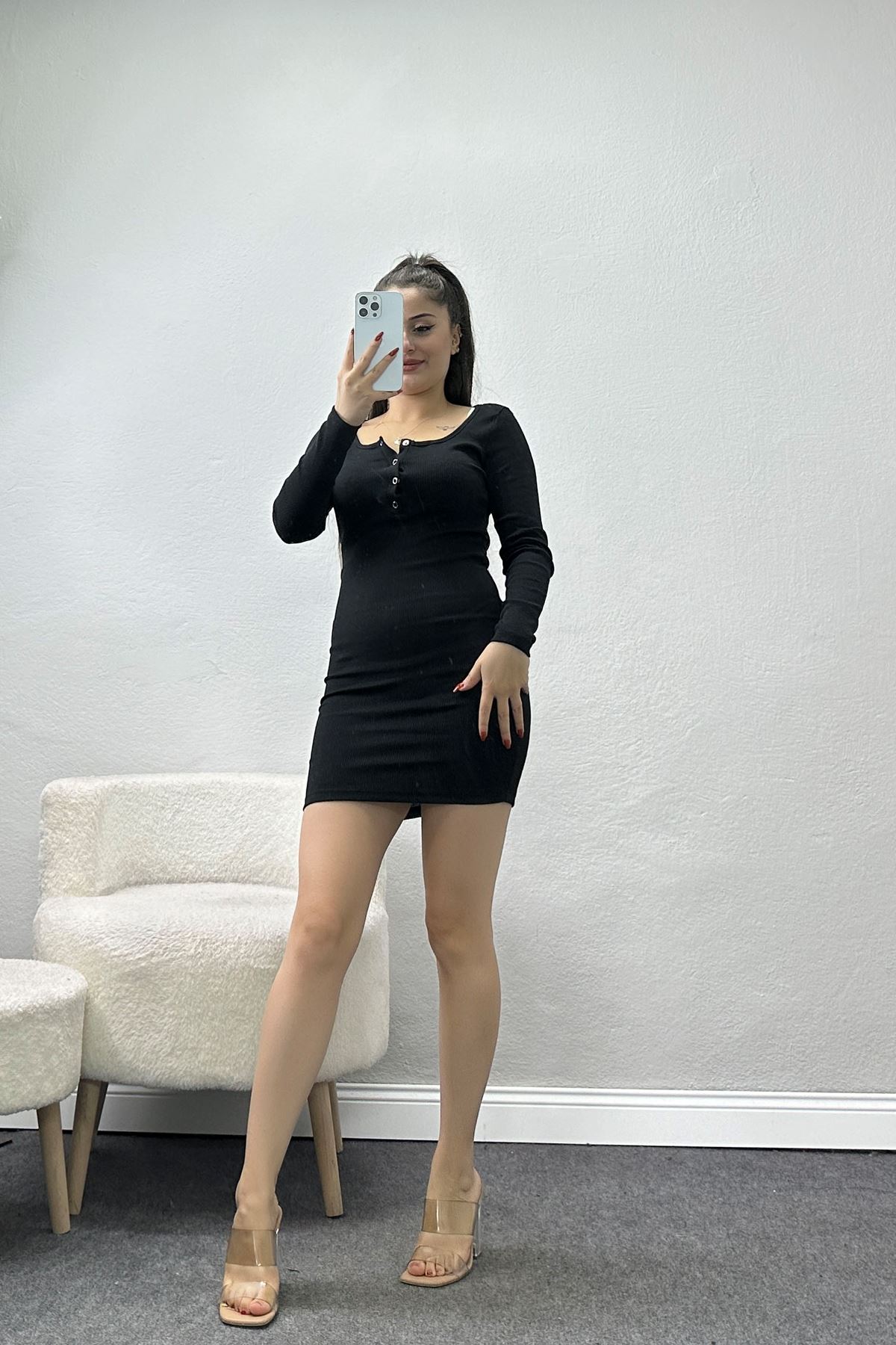Düğmeli Kaşkorse Elbise Siyah - 70710.1748.