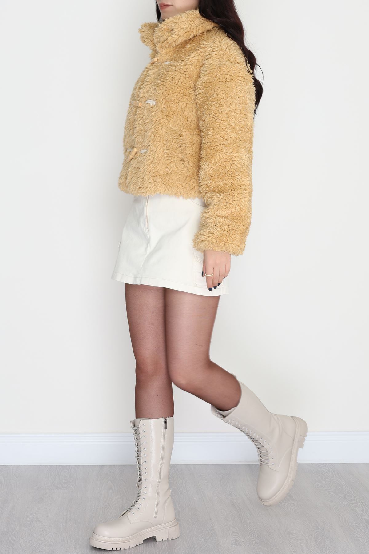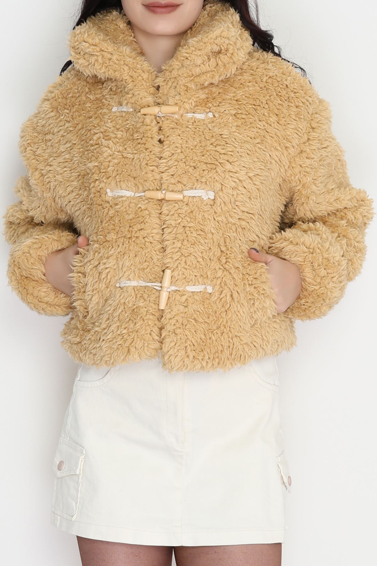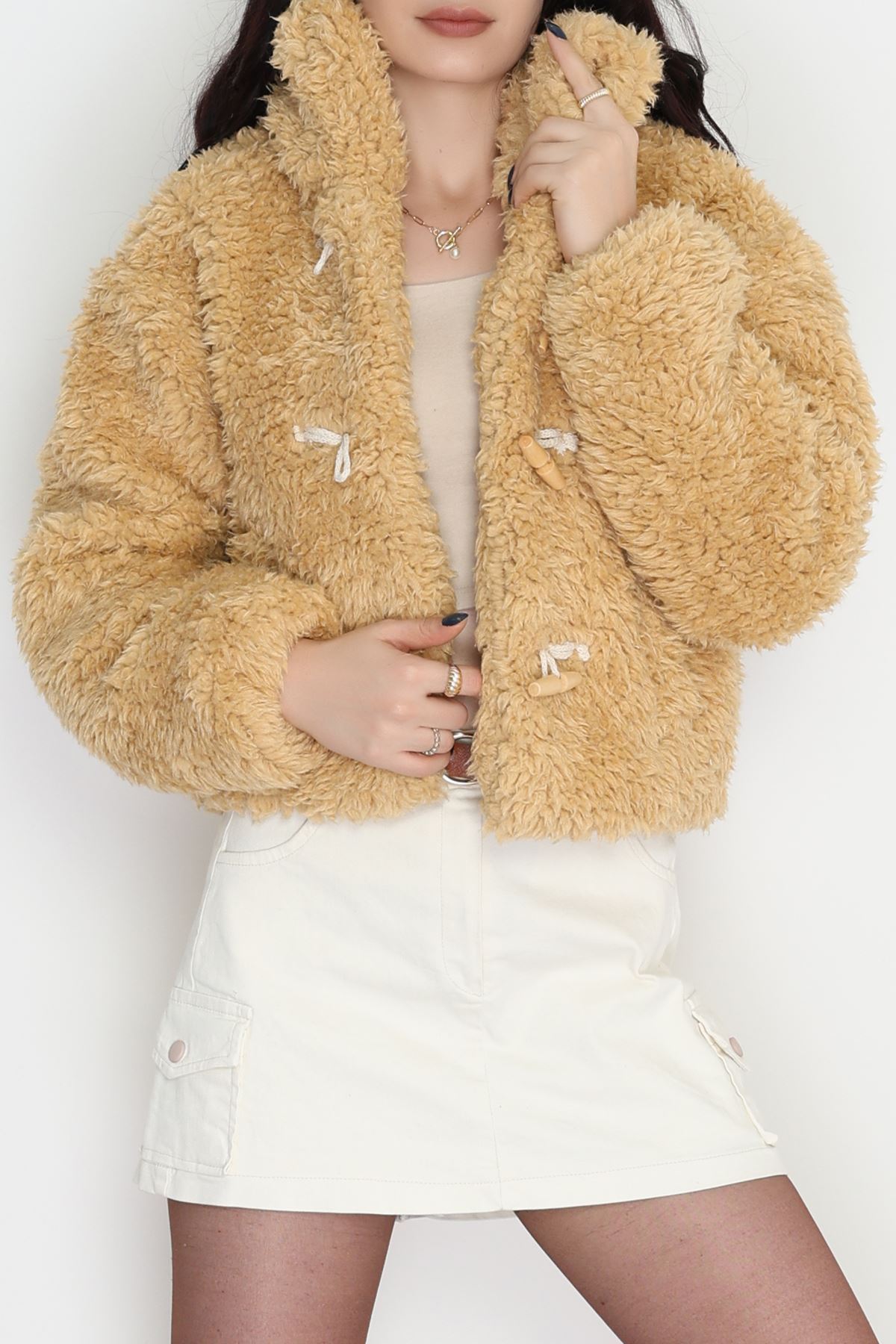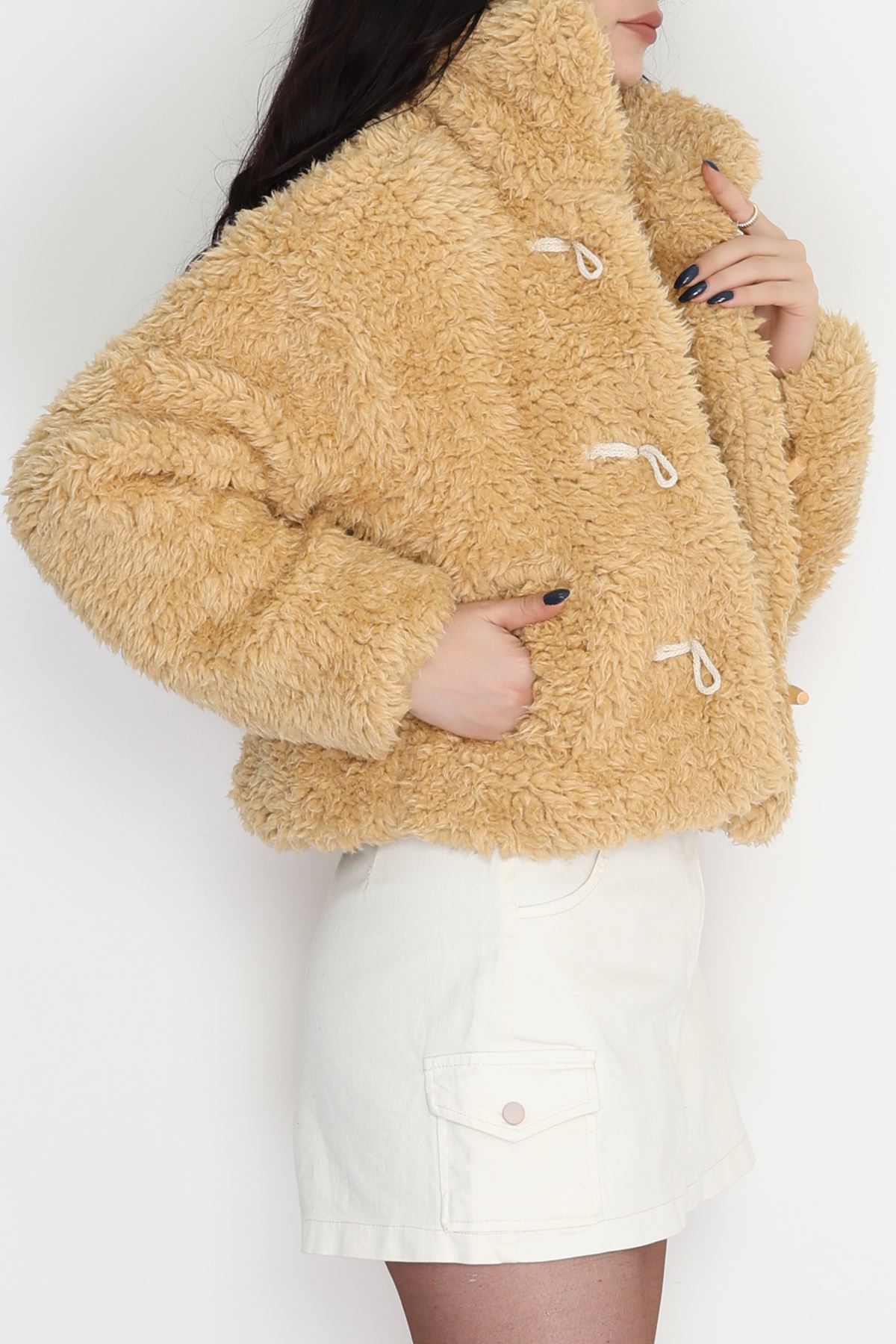 Düğmeli Peluş Mont Caramel - 8749.179.