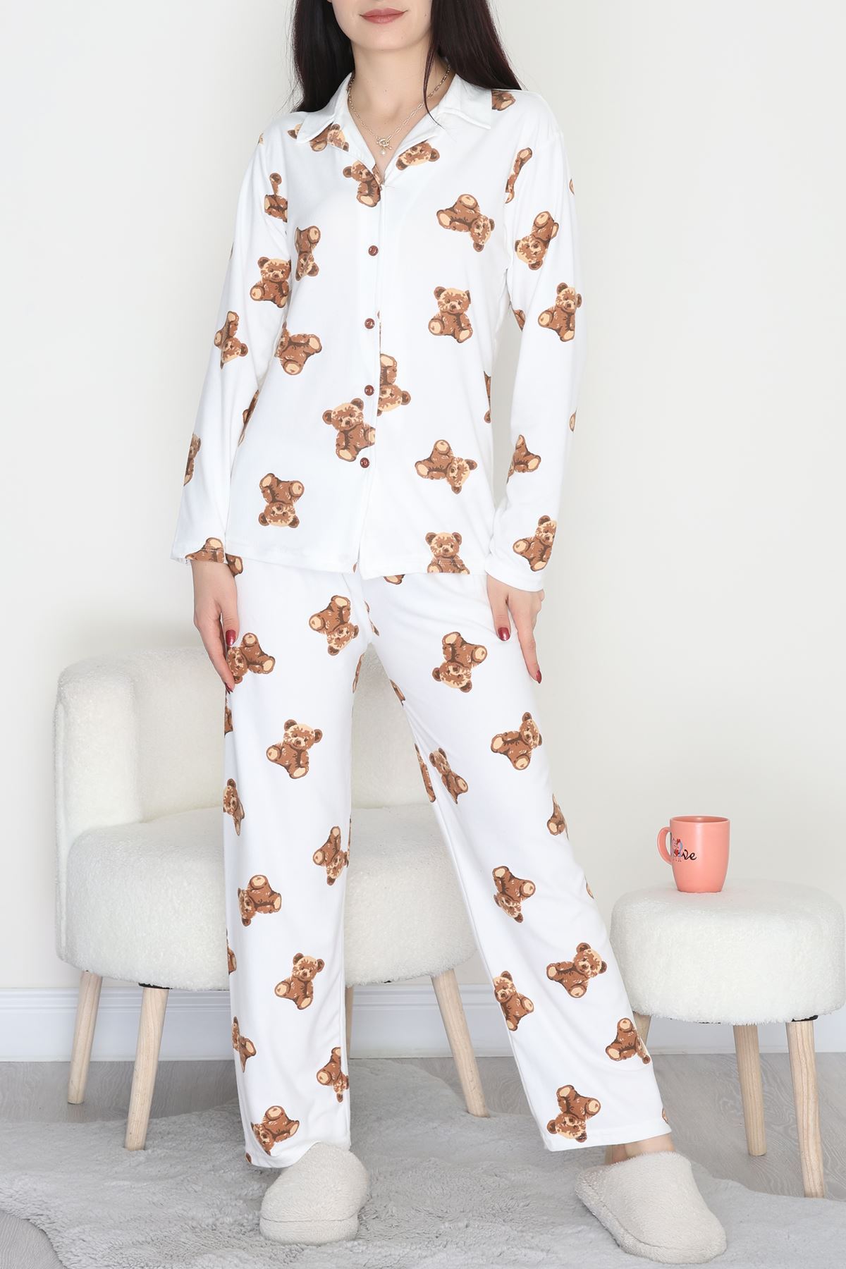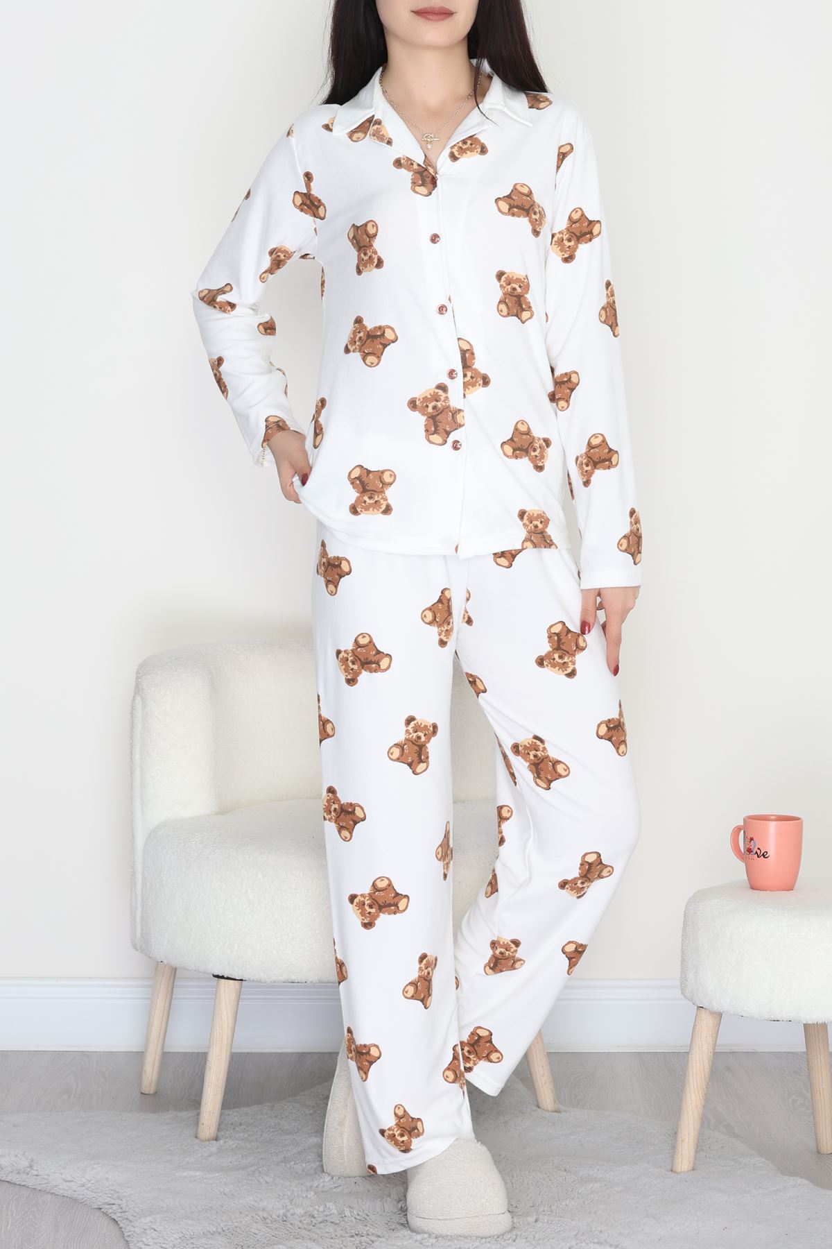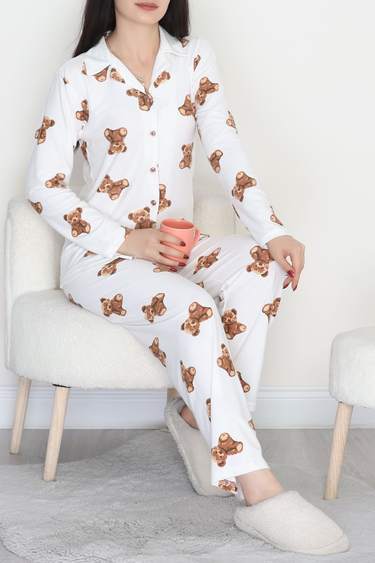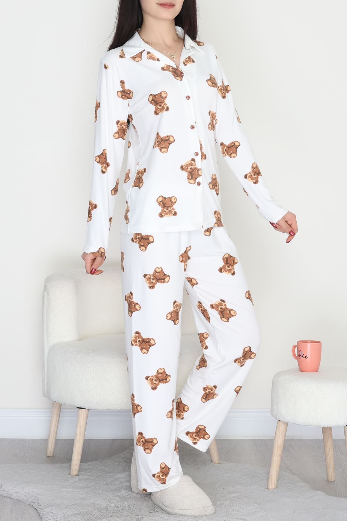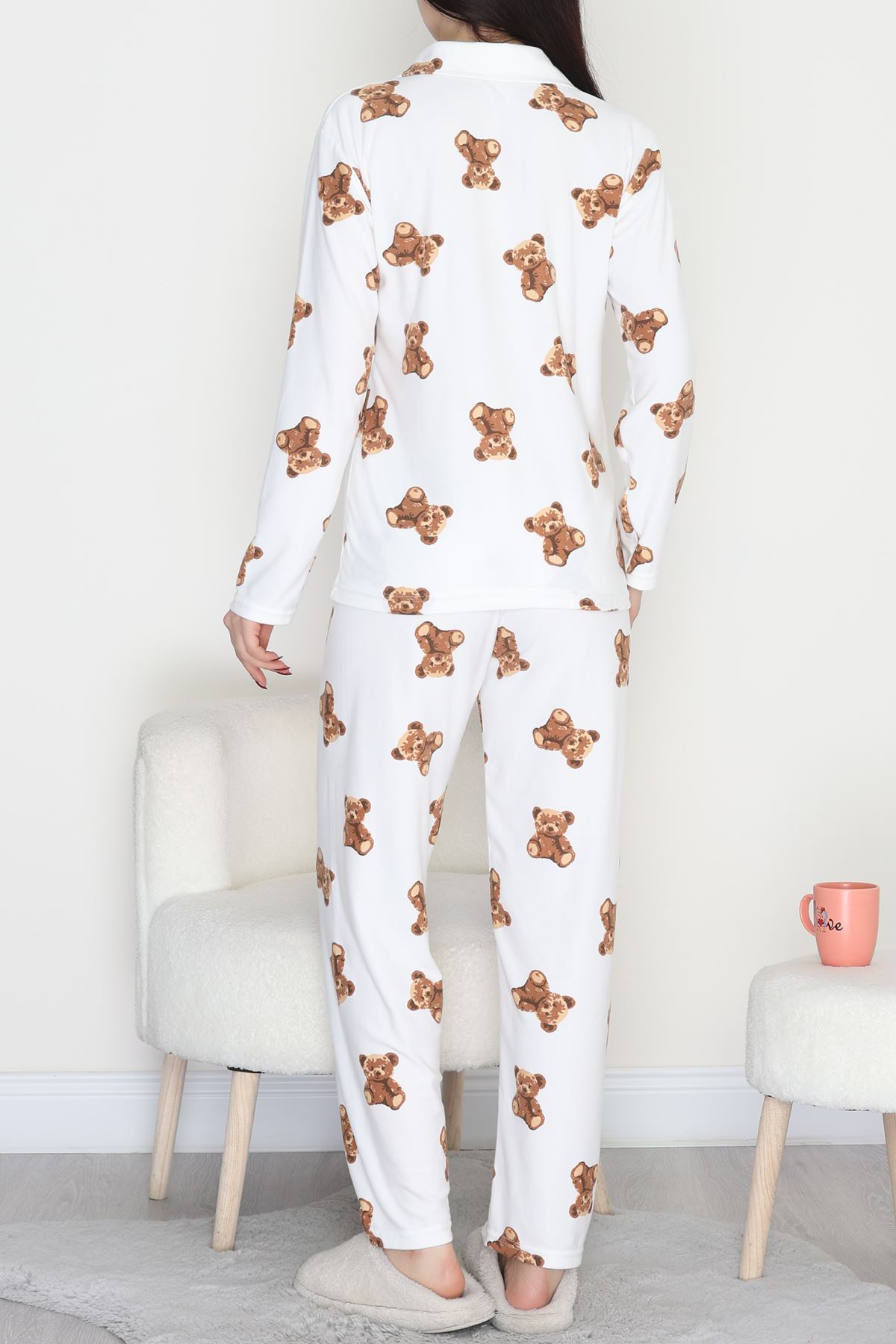Düğmeli Süet Pijama Takımı Bejayı - 450.1287.