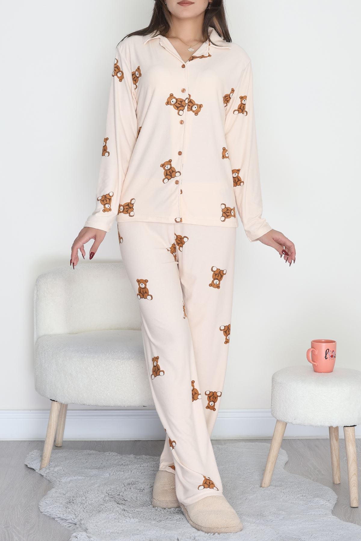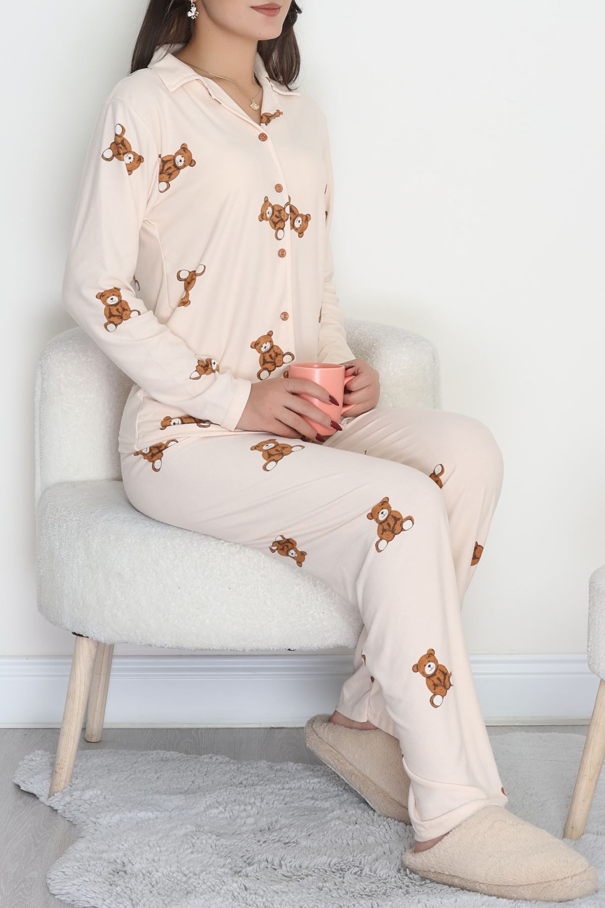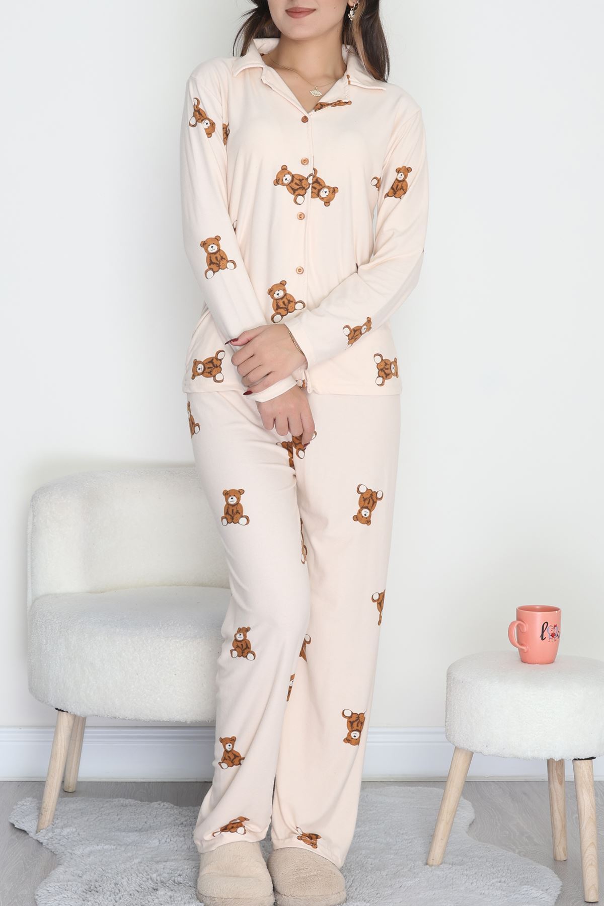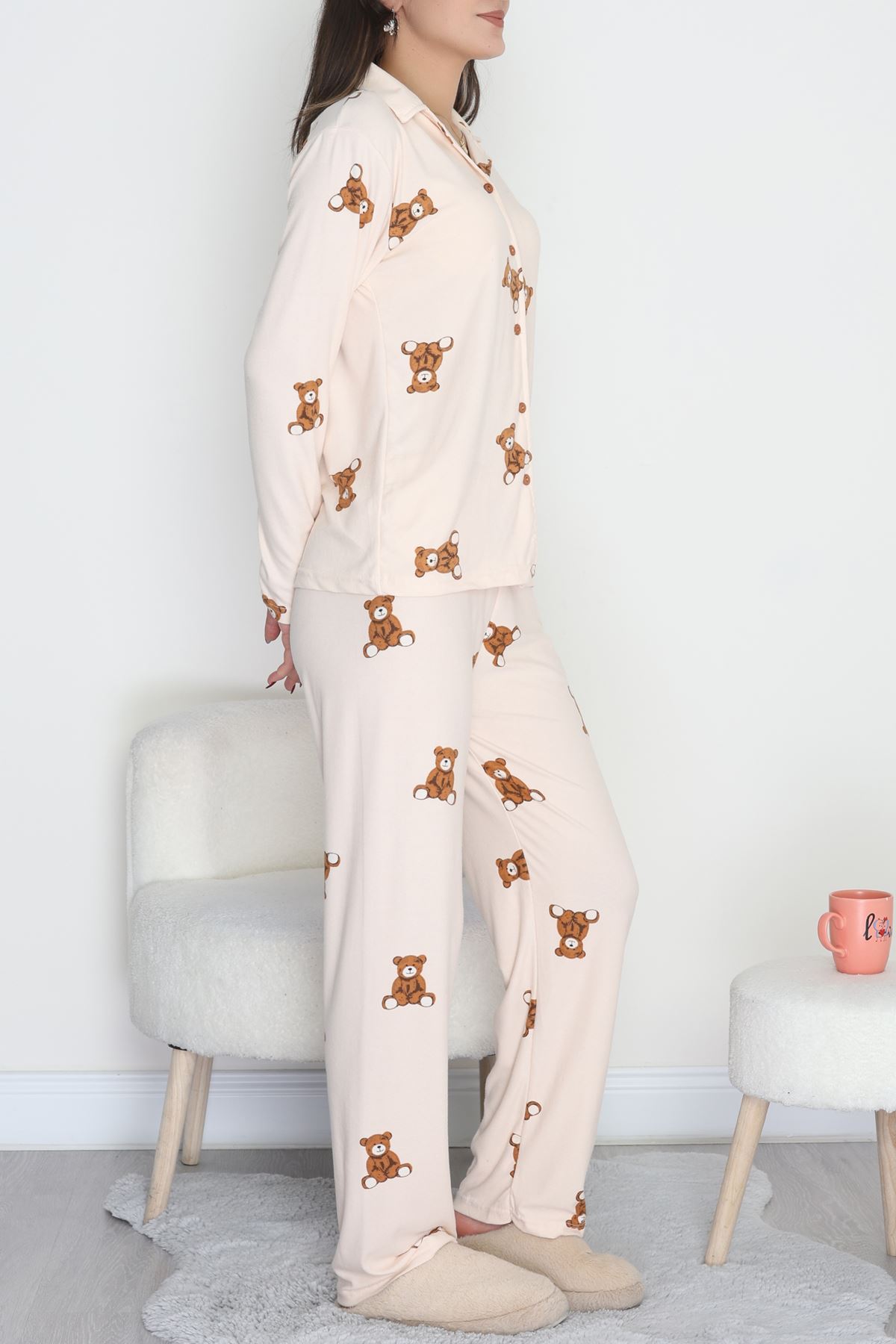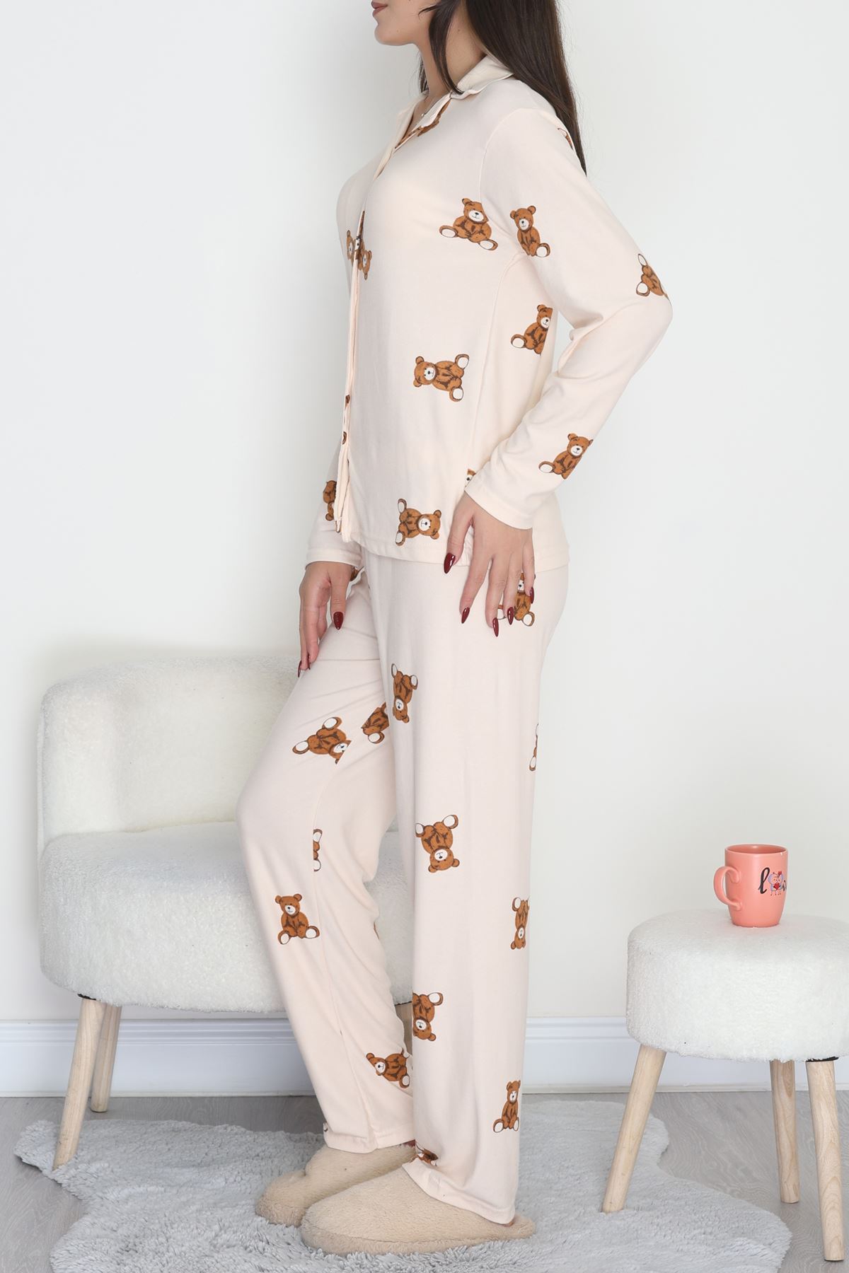 Düğmeli Süet Pijama Takımı Bejkahve1 - 450.1287.