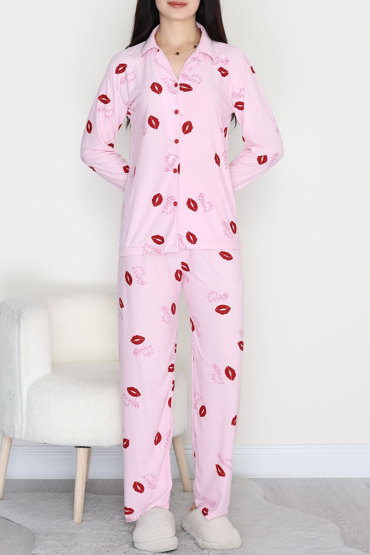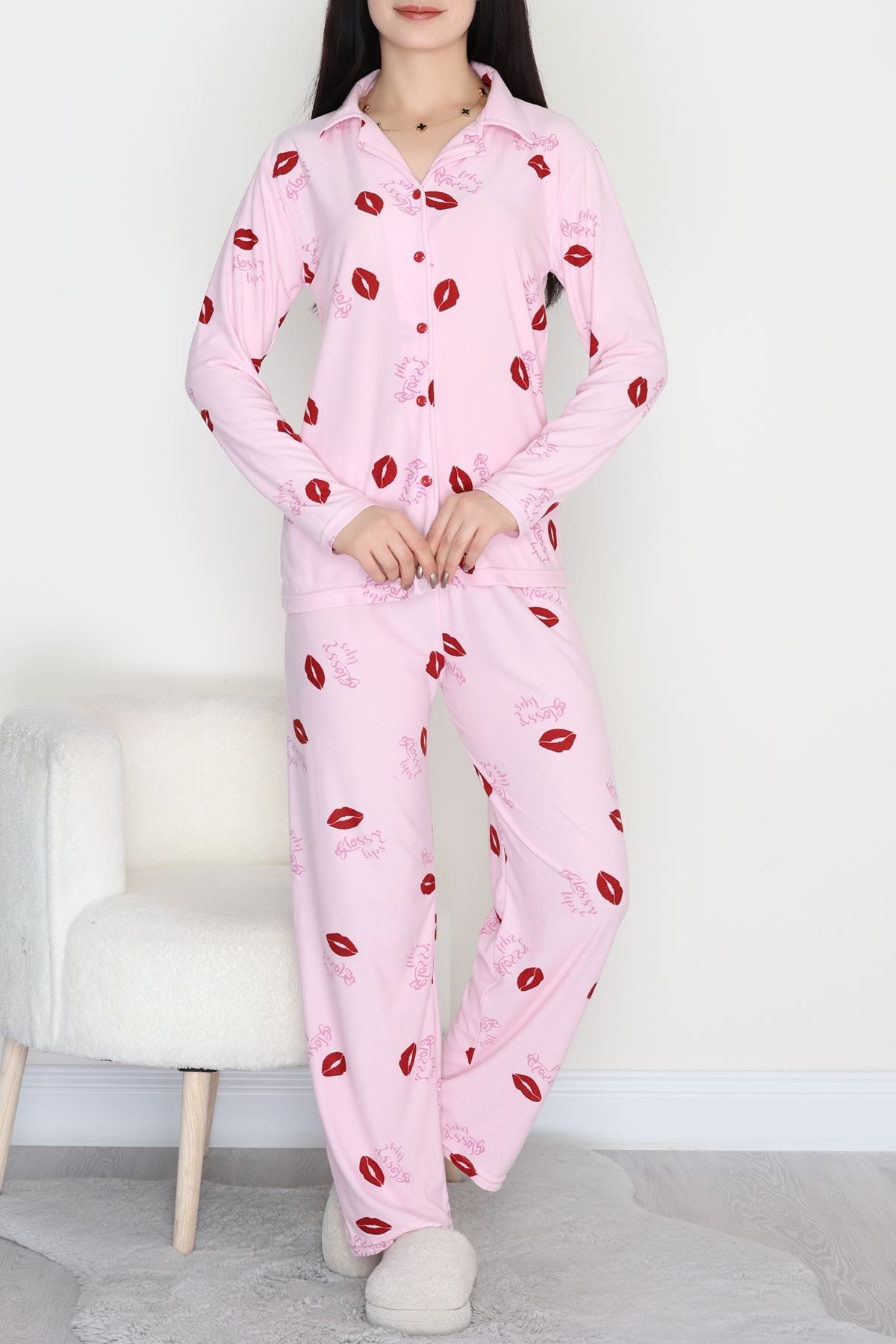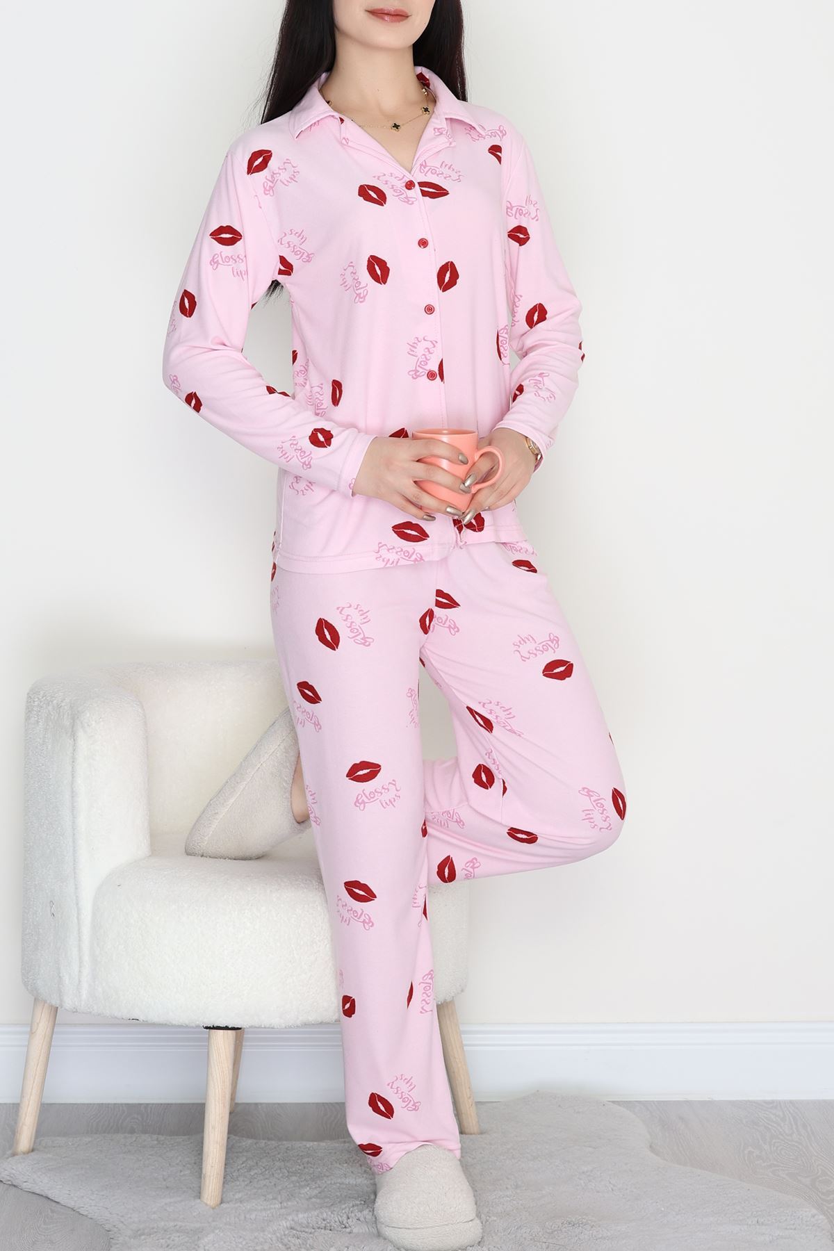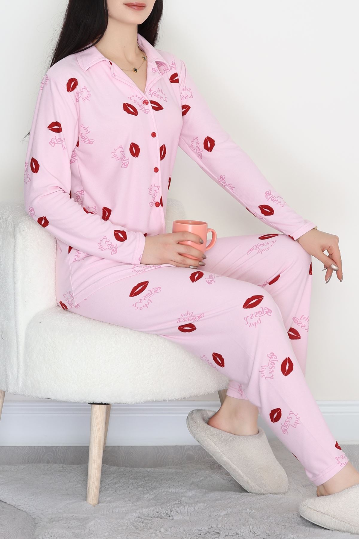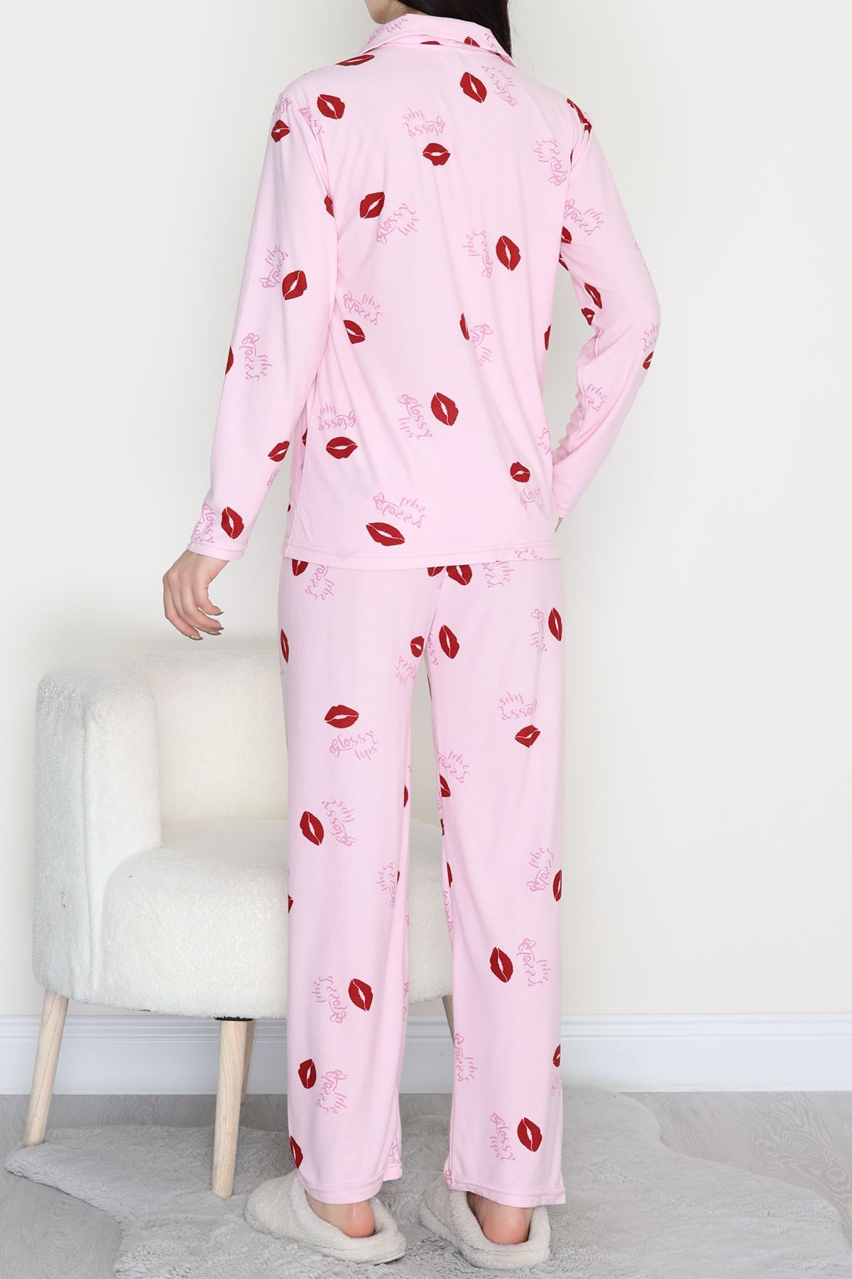 Düğmeli Süet Pijama Takımı Pembedudak - 450.1287.