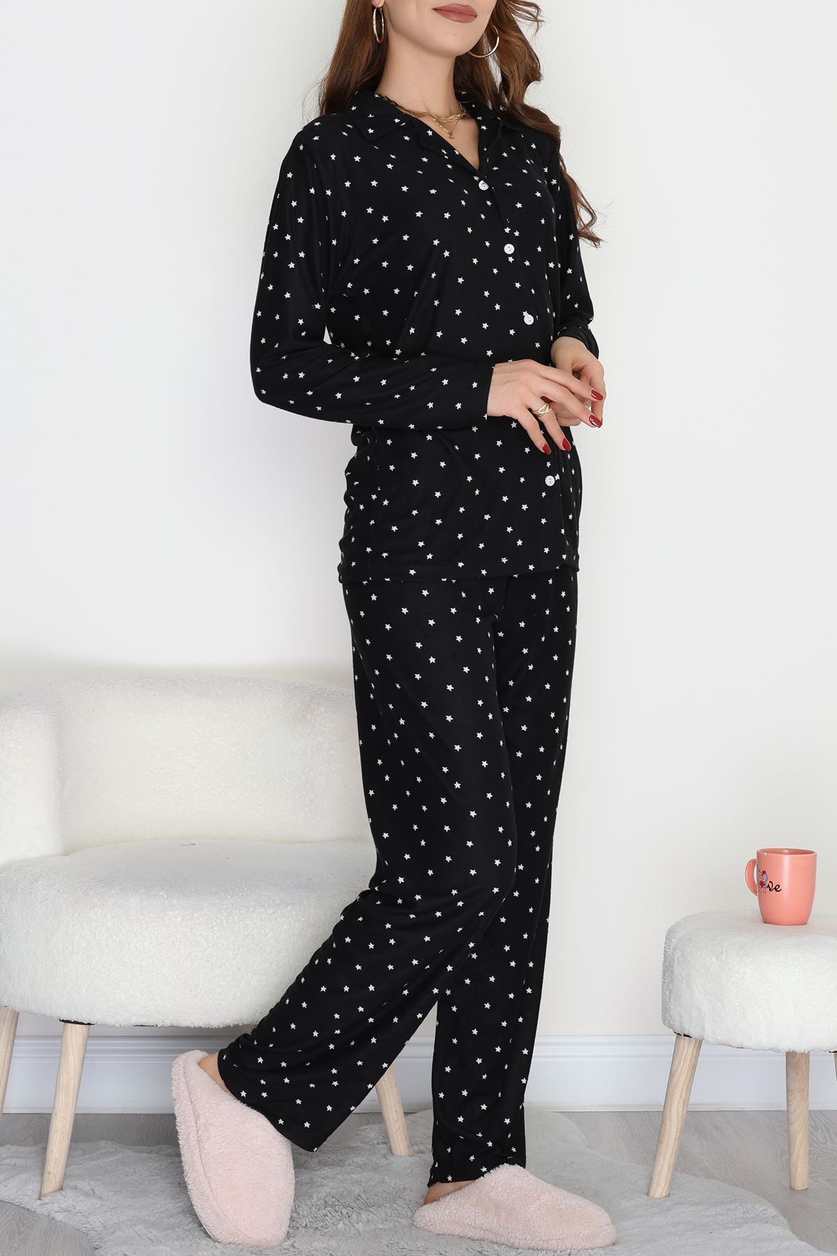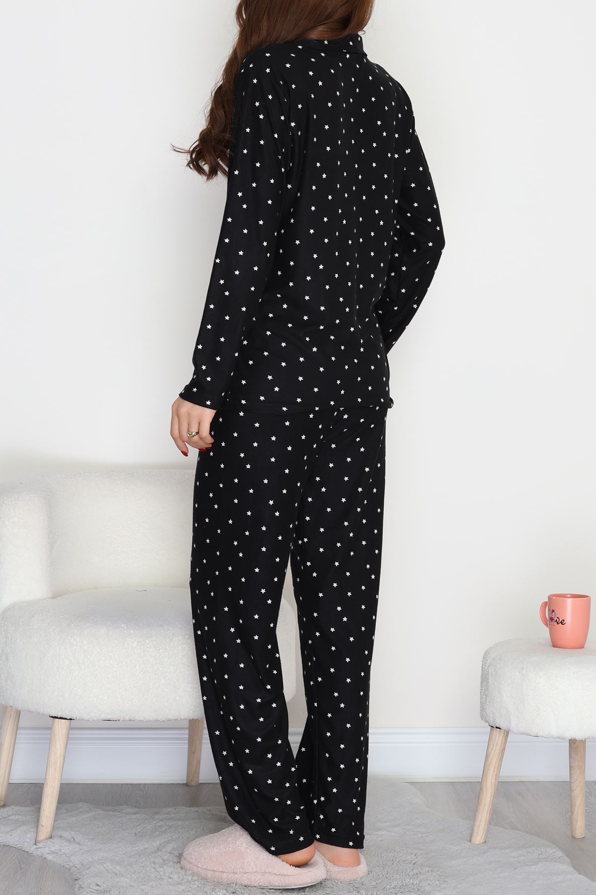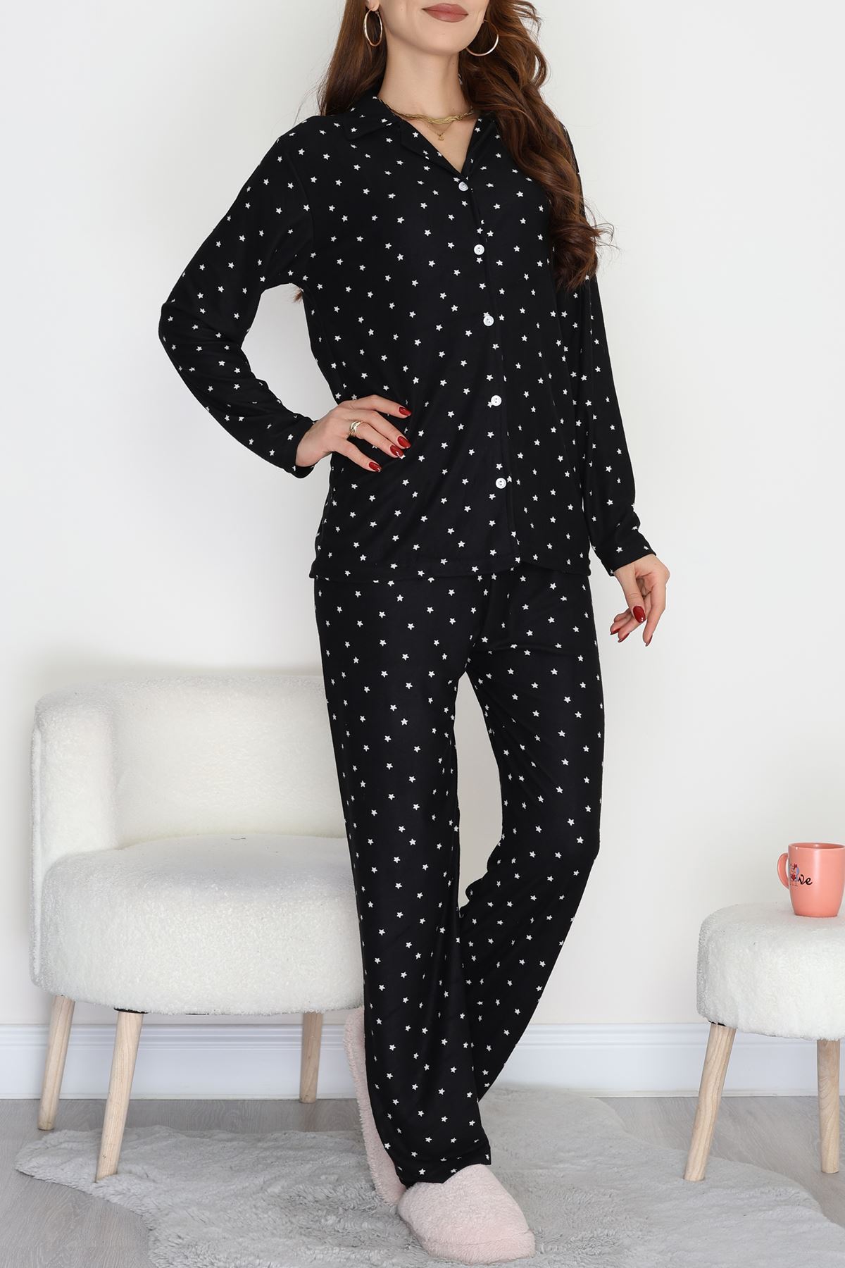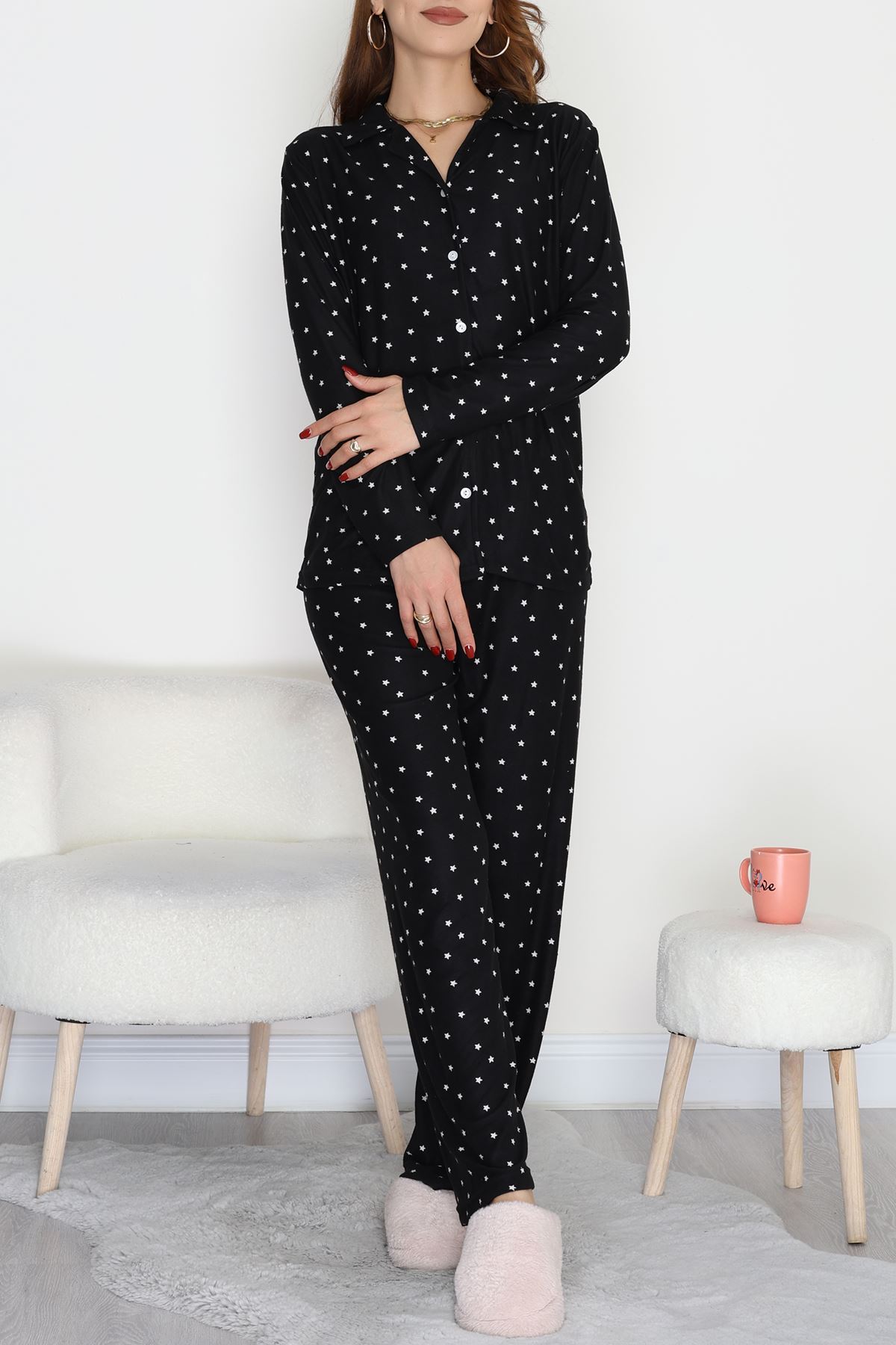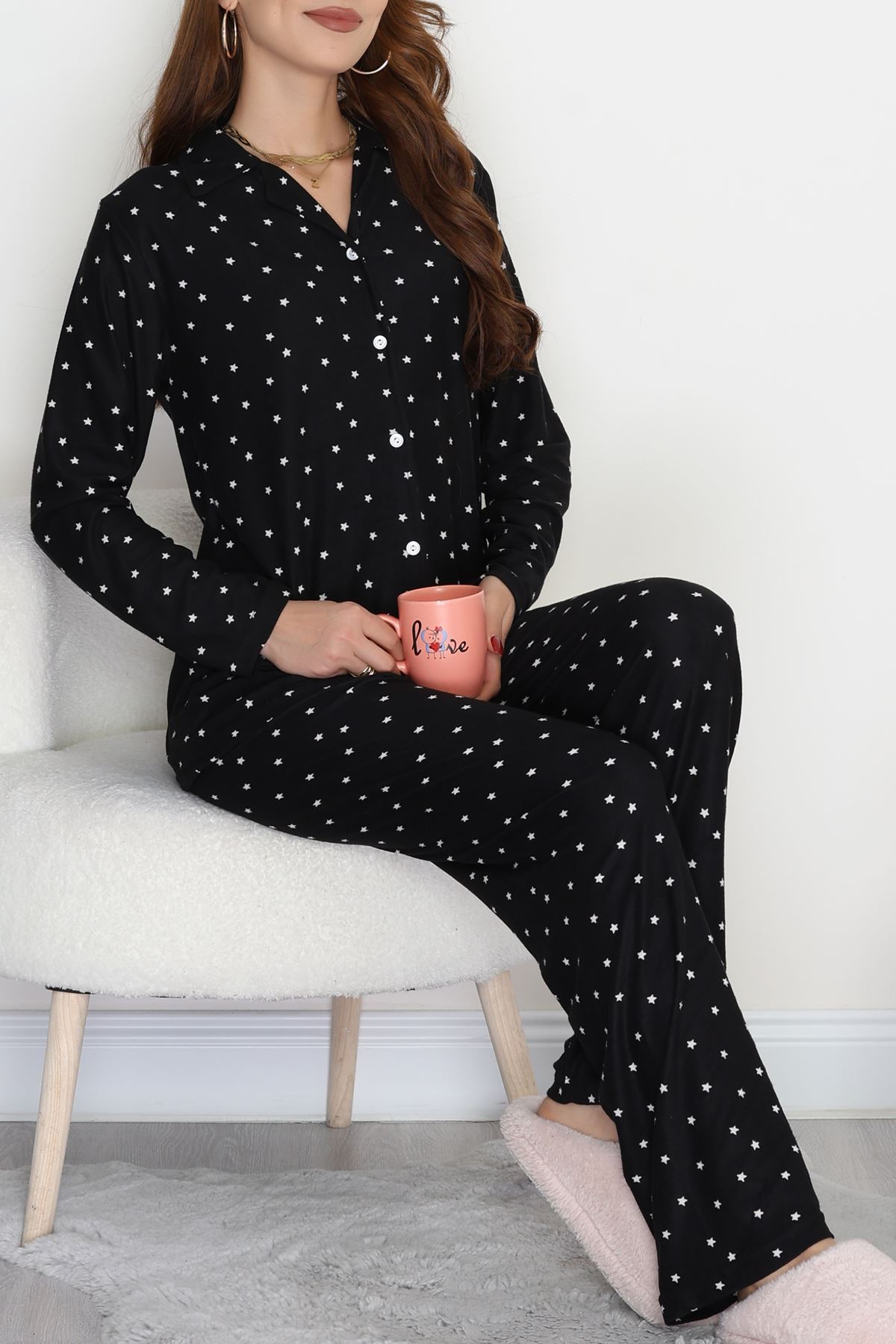 Düğmeli Süet Pijama Takımı Siyahyıldız1 - 450.1287.