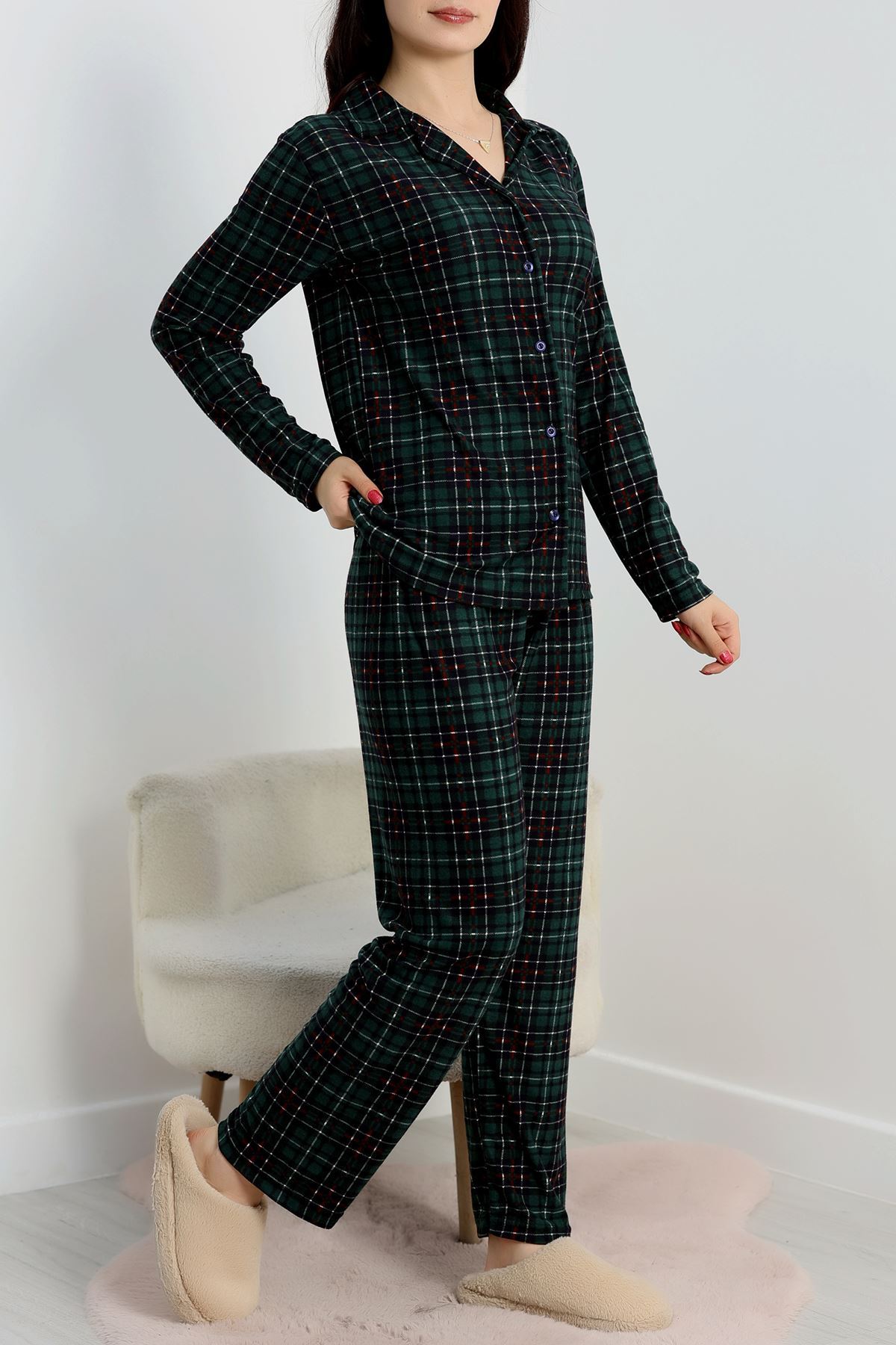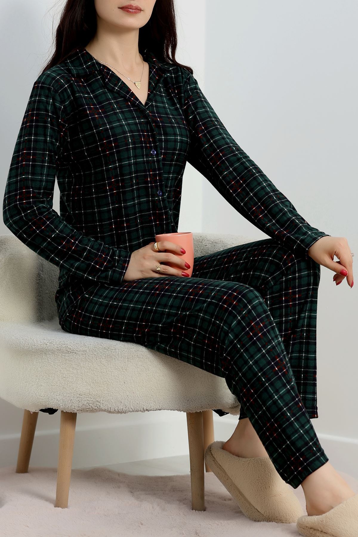 Soft Milan Düğmeli Pijama Takımı Yeşil - 7511.1287.