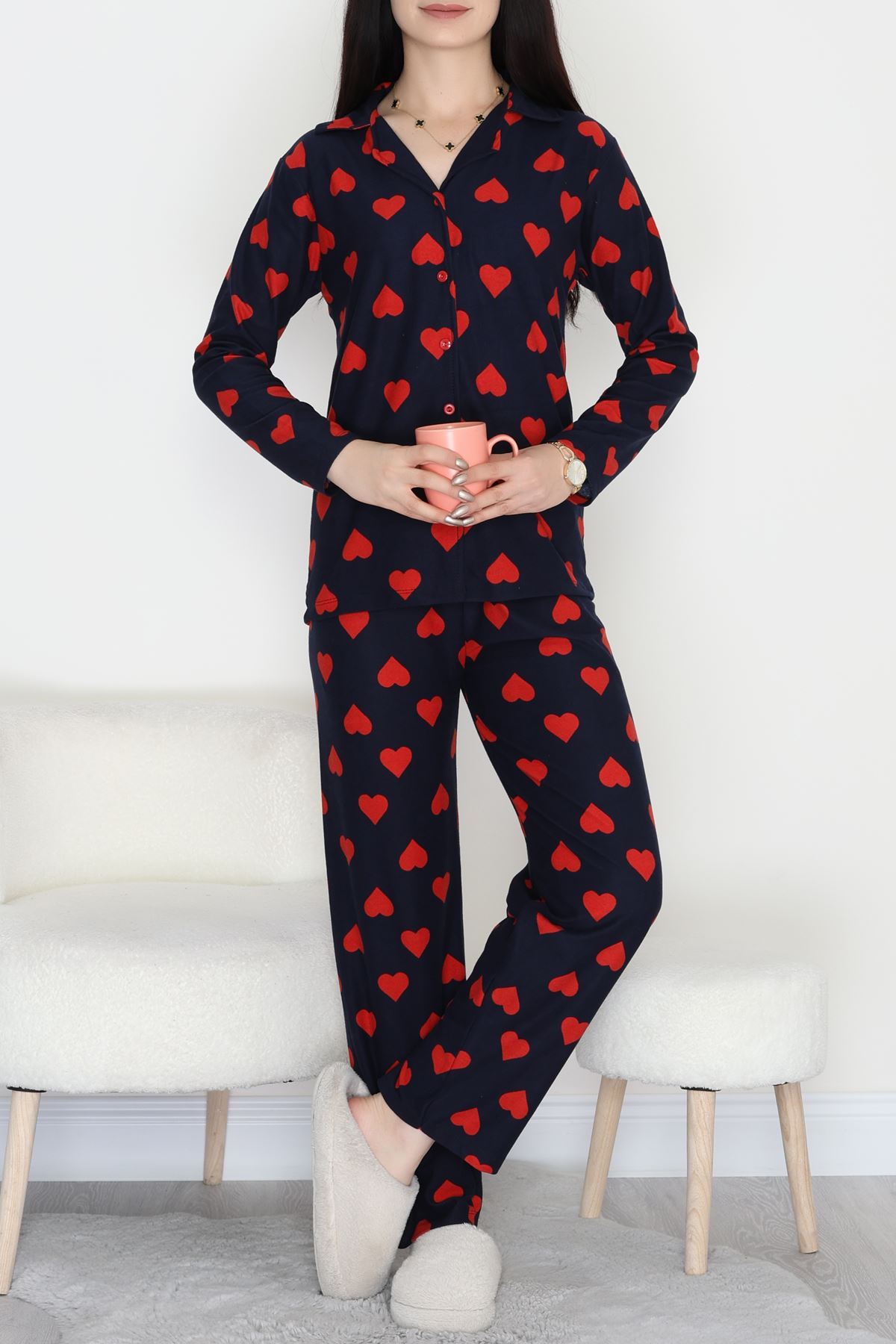Süet Düğmeli Pijama Takımı Pembeçilek - 450.1287.