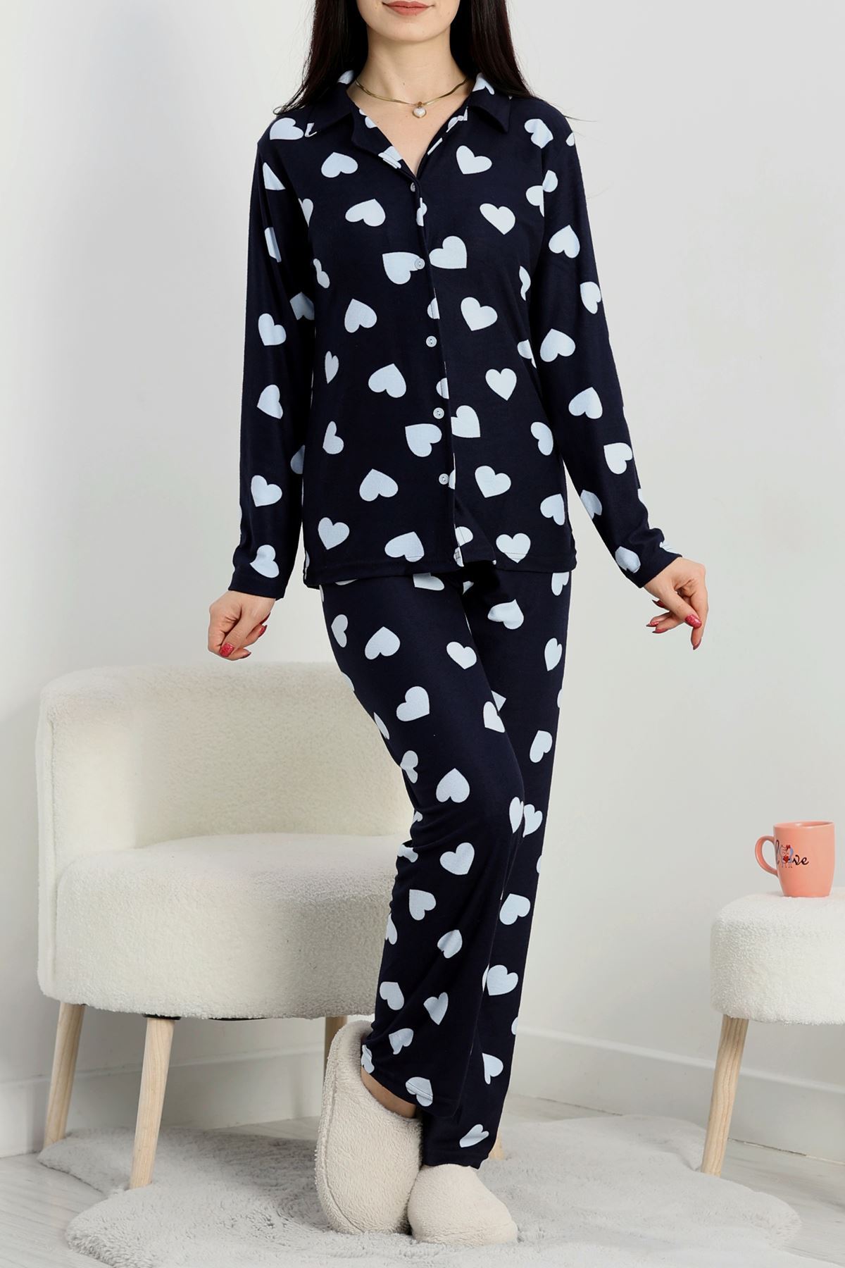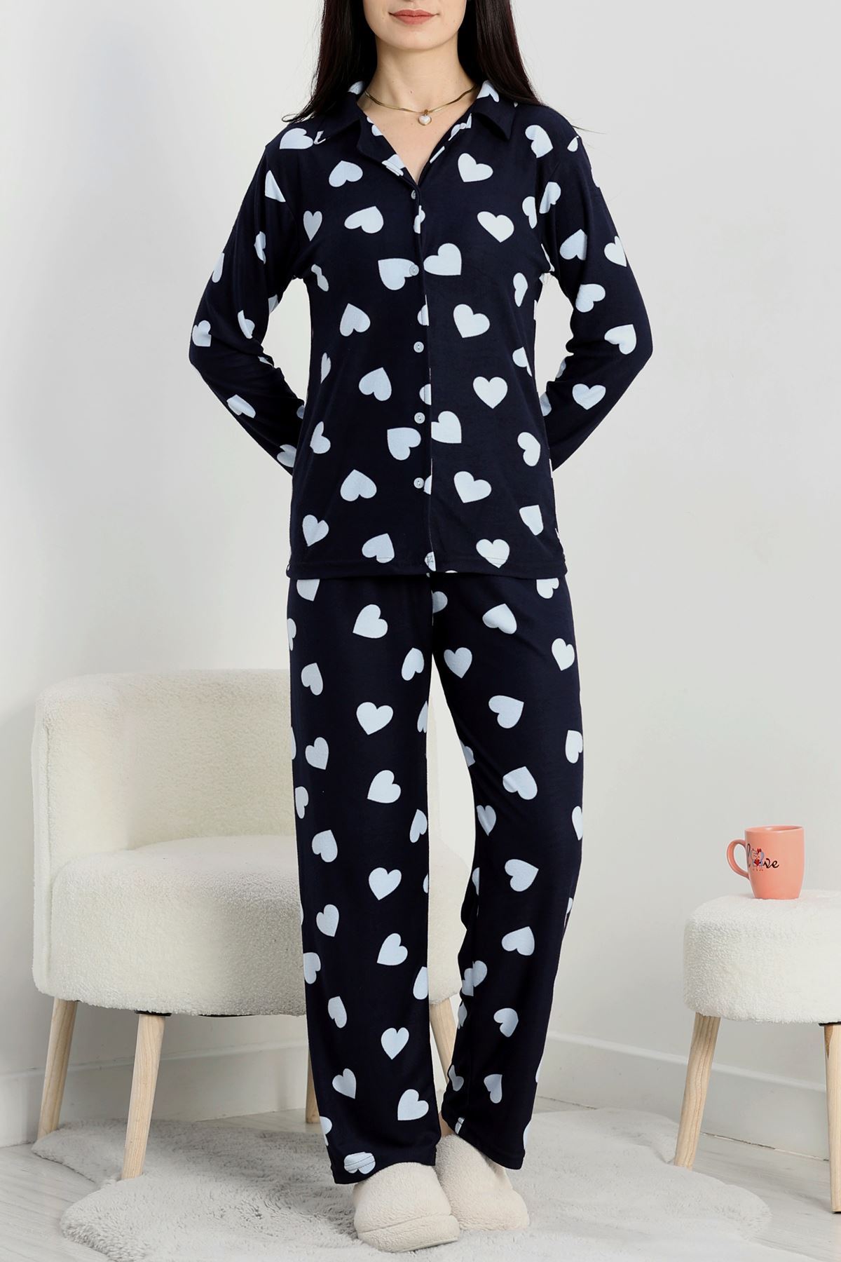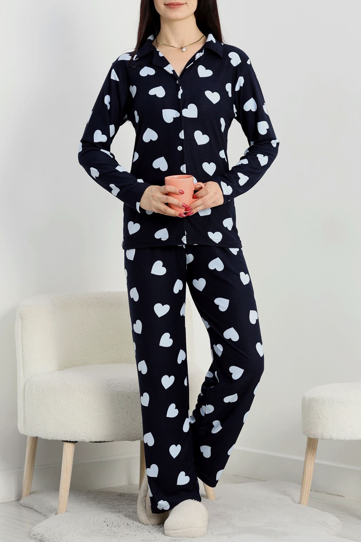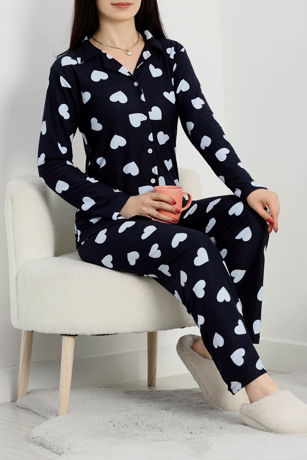 Süet Büyük Beden Düğmeli Pijama Takımı Siyah - 51125.1950.