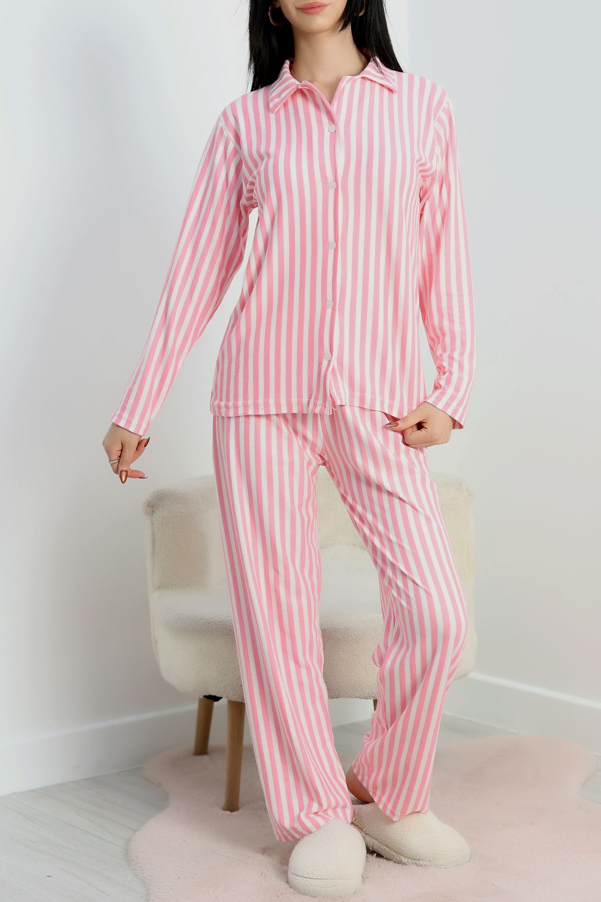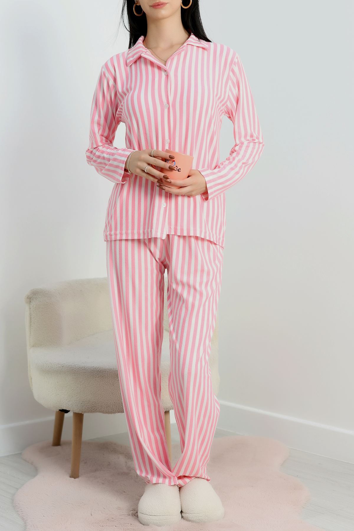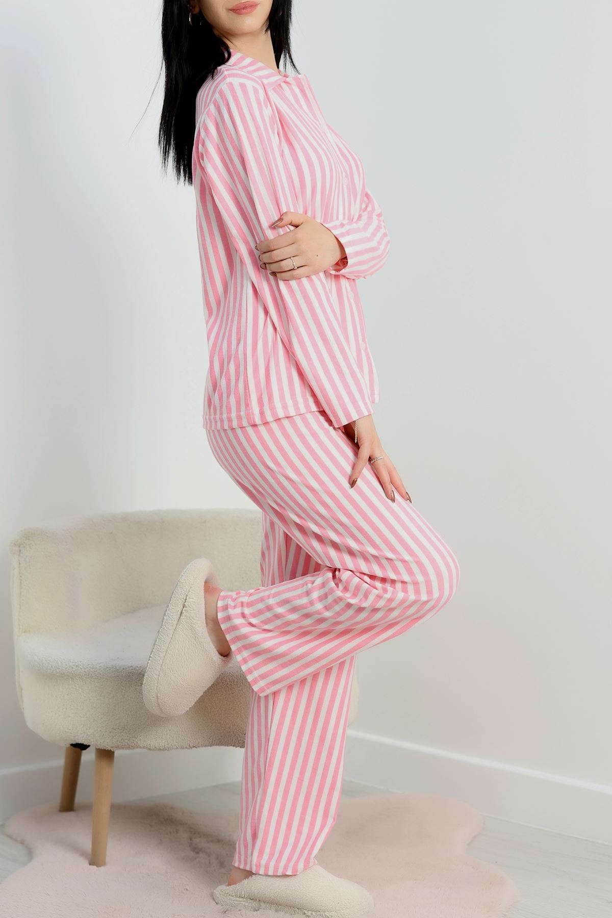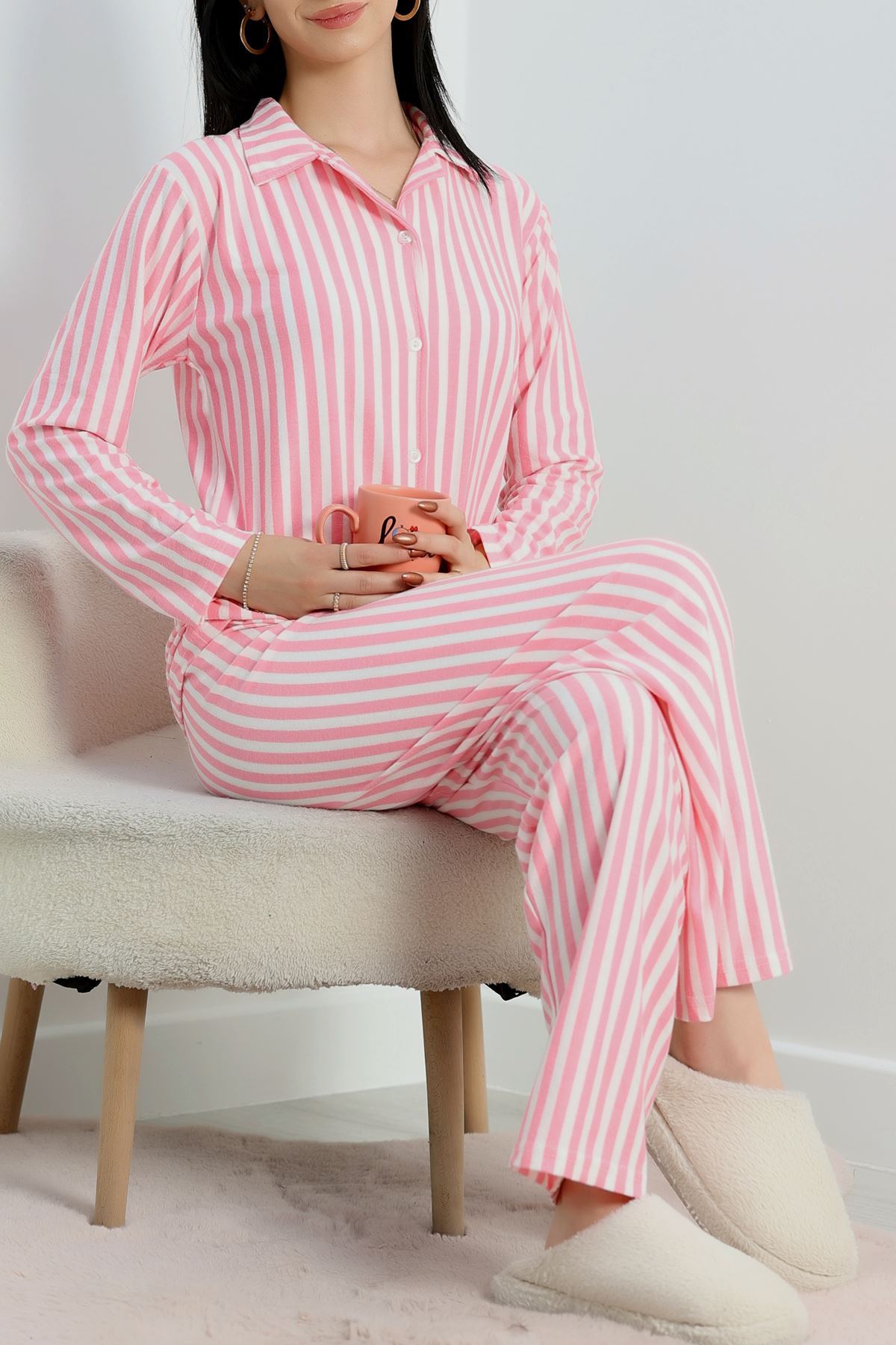 Düğmeli Süet Takım Pembeçizgili - 450.1287.