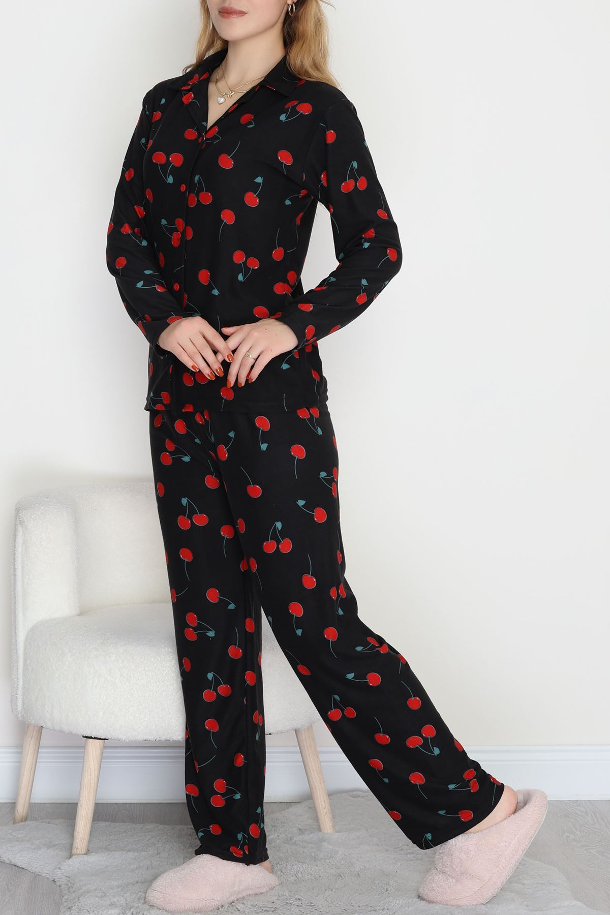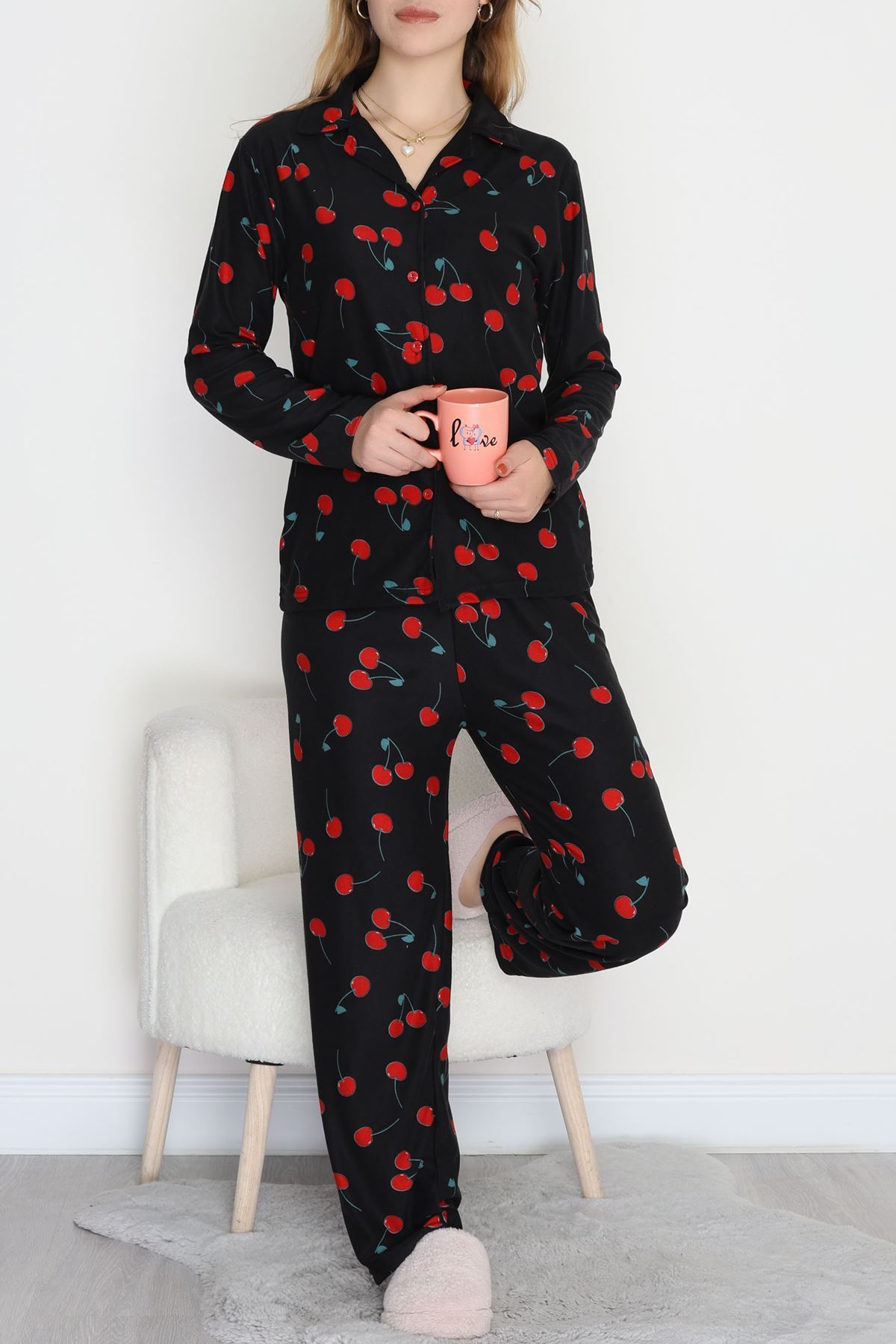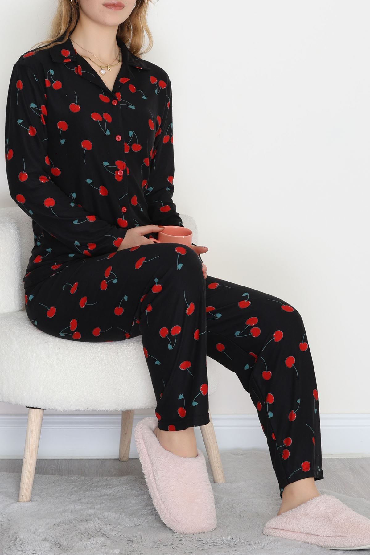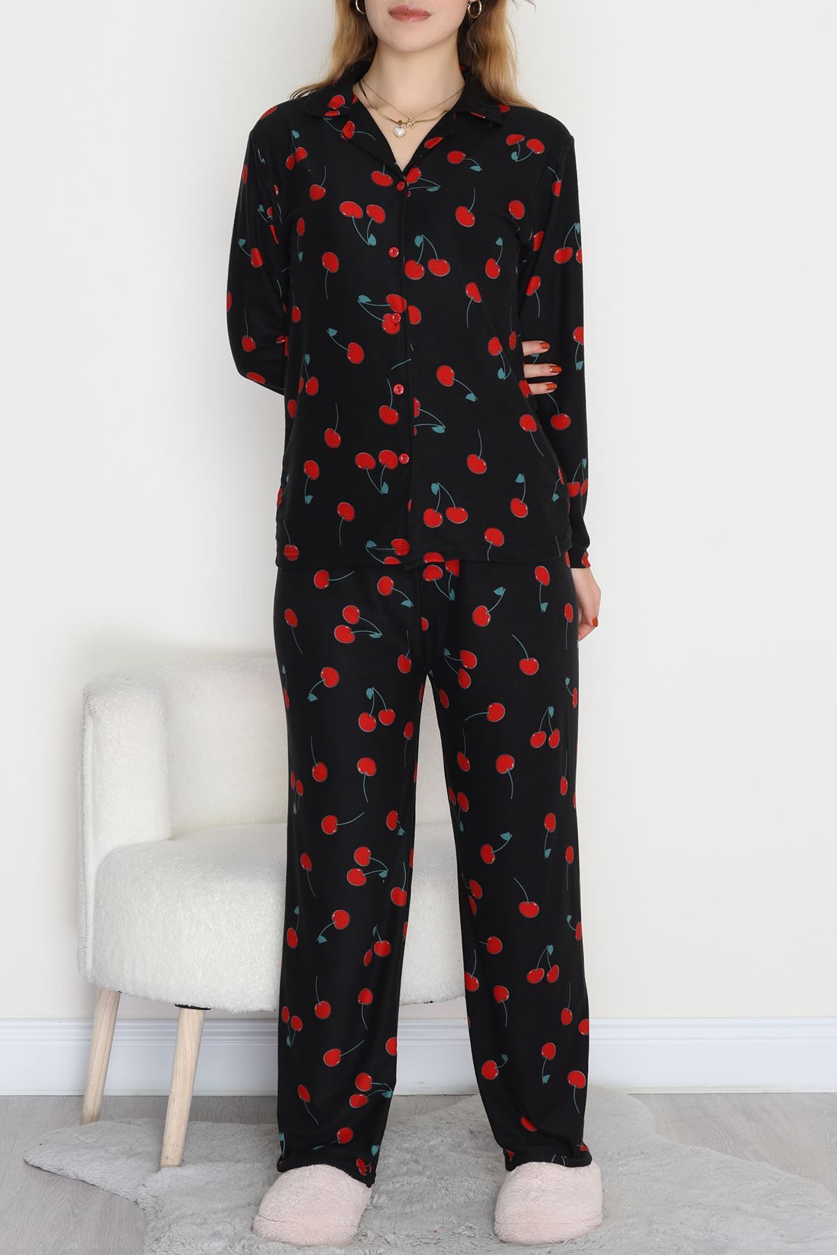Soft Milan Düğmeli Pijama Takımı Siyahkiraz - 7511.1287.