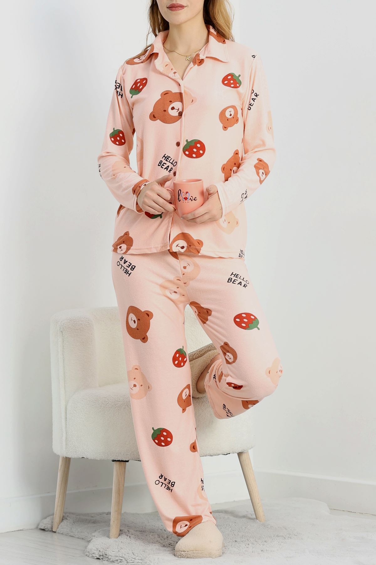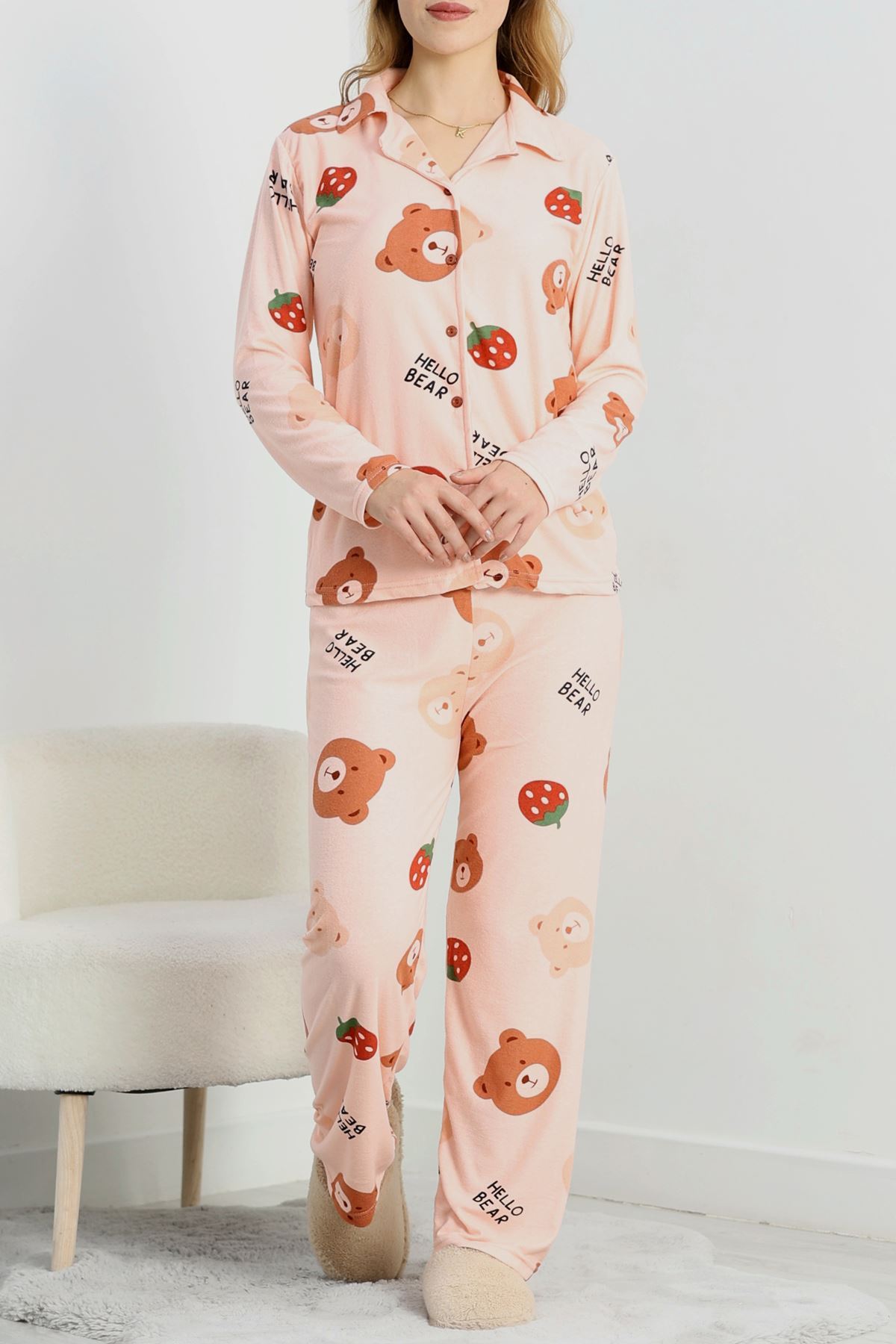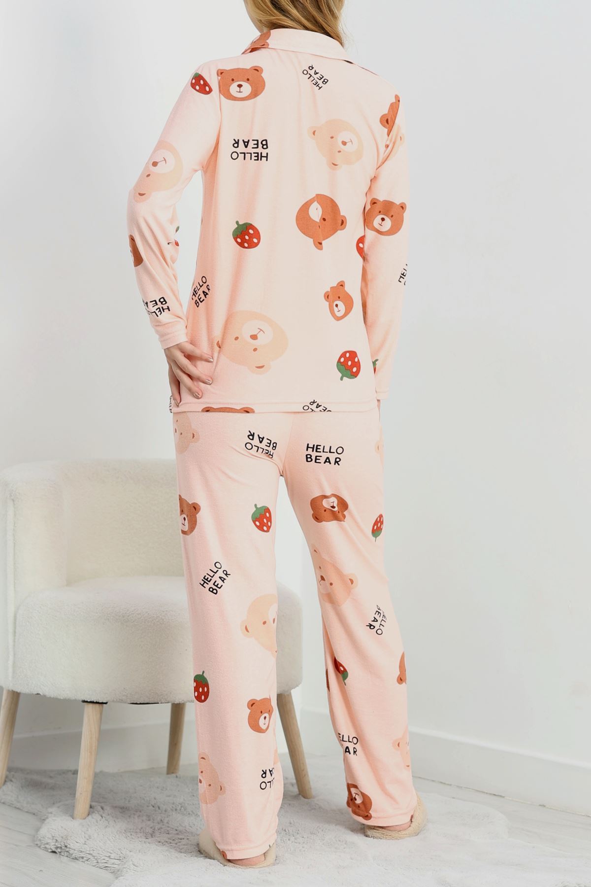 Düğmeli Süet Pijama Takımı Sarıördek - 450.1287.